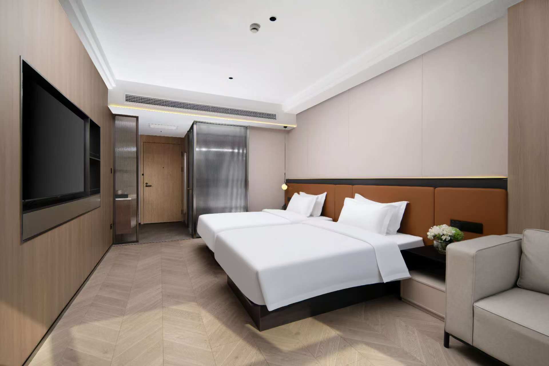 沐光雅致双床房(全屋声控+65寸投屏电视+小冰箱)