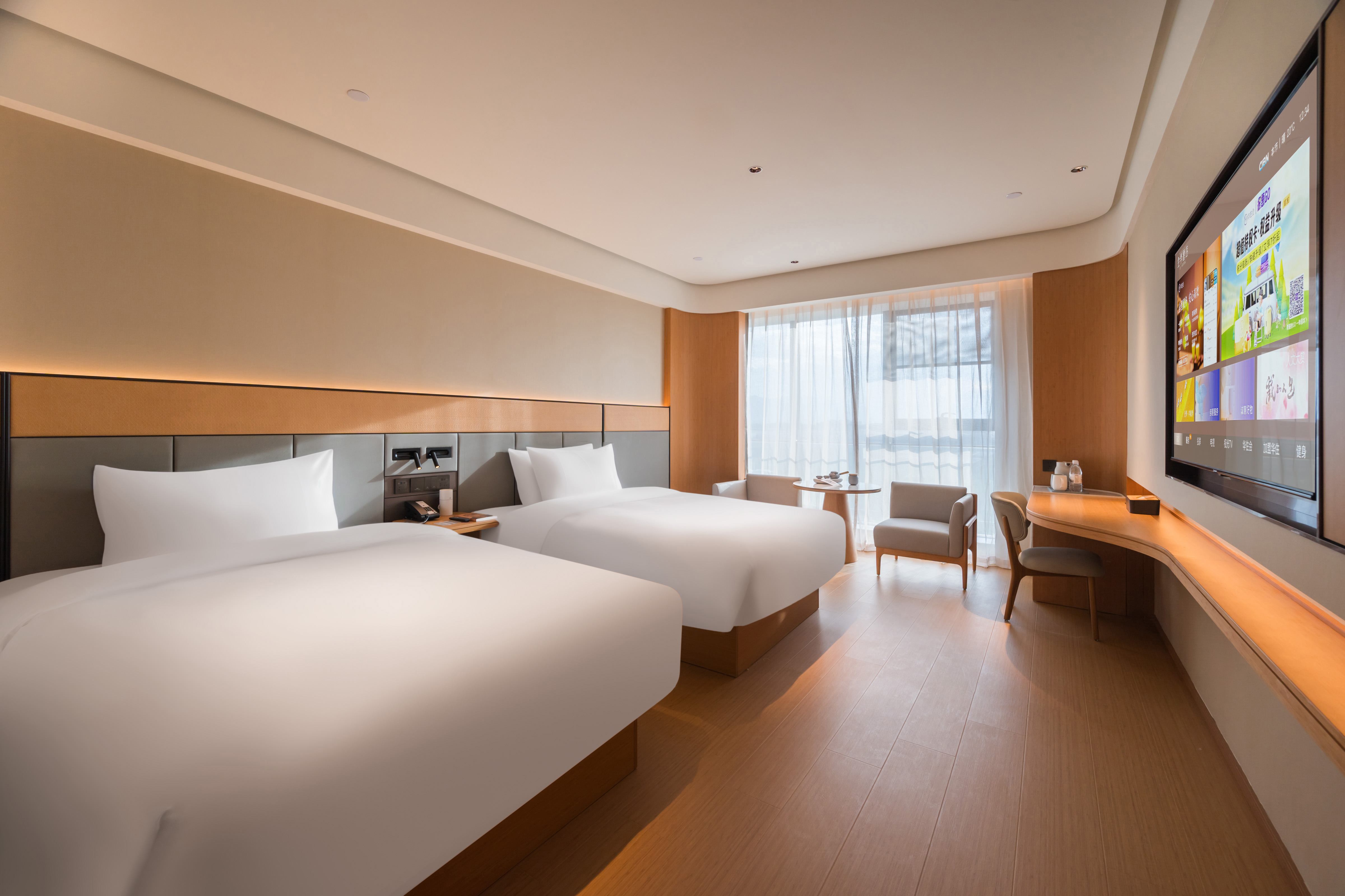 高级双床房【65寸投屏电视+全景落地窗】
