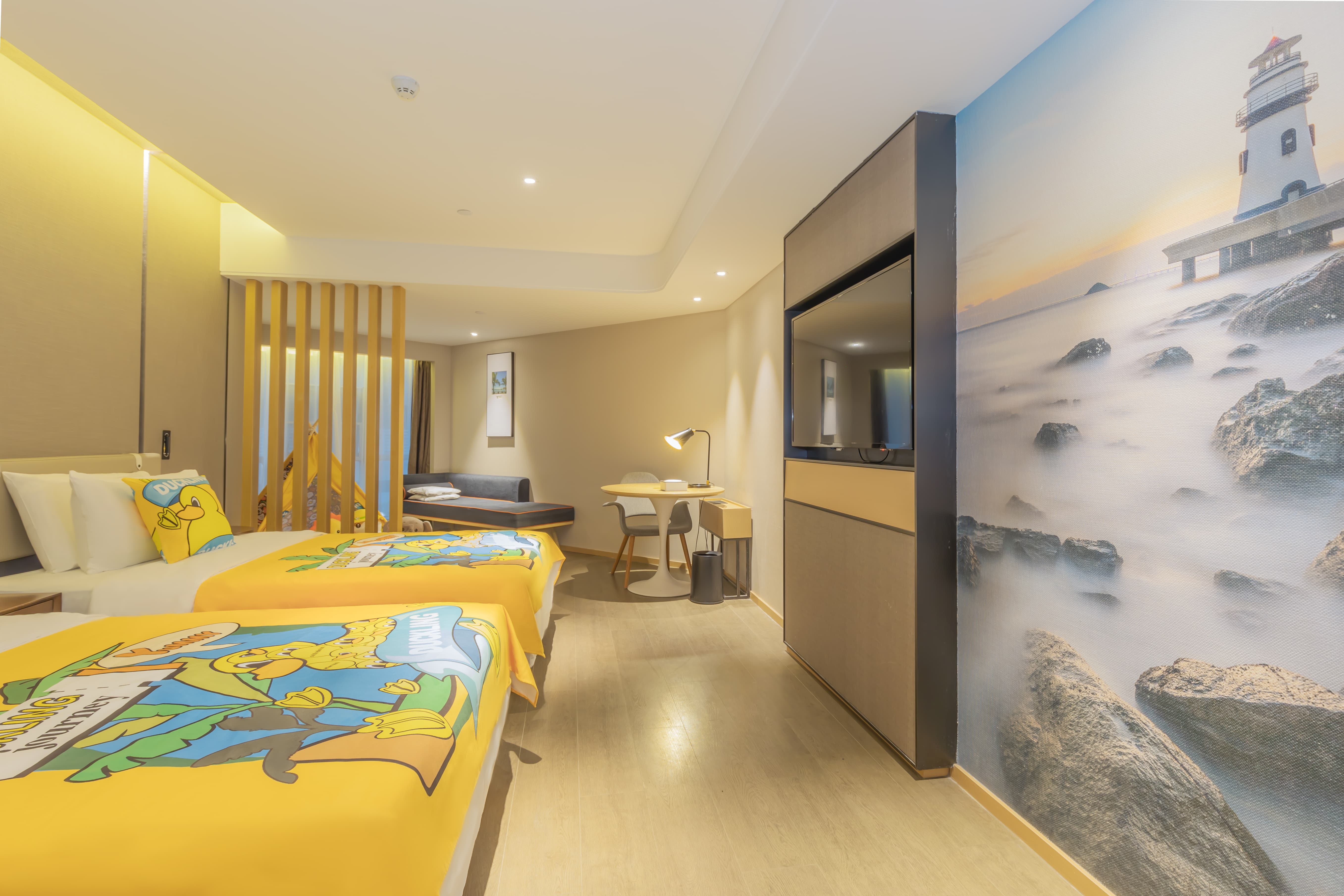 豪华亲子双床房(小童帐篷+摇摇马+床围)