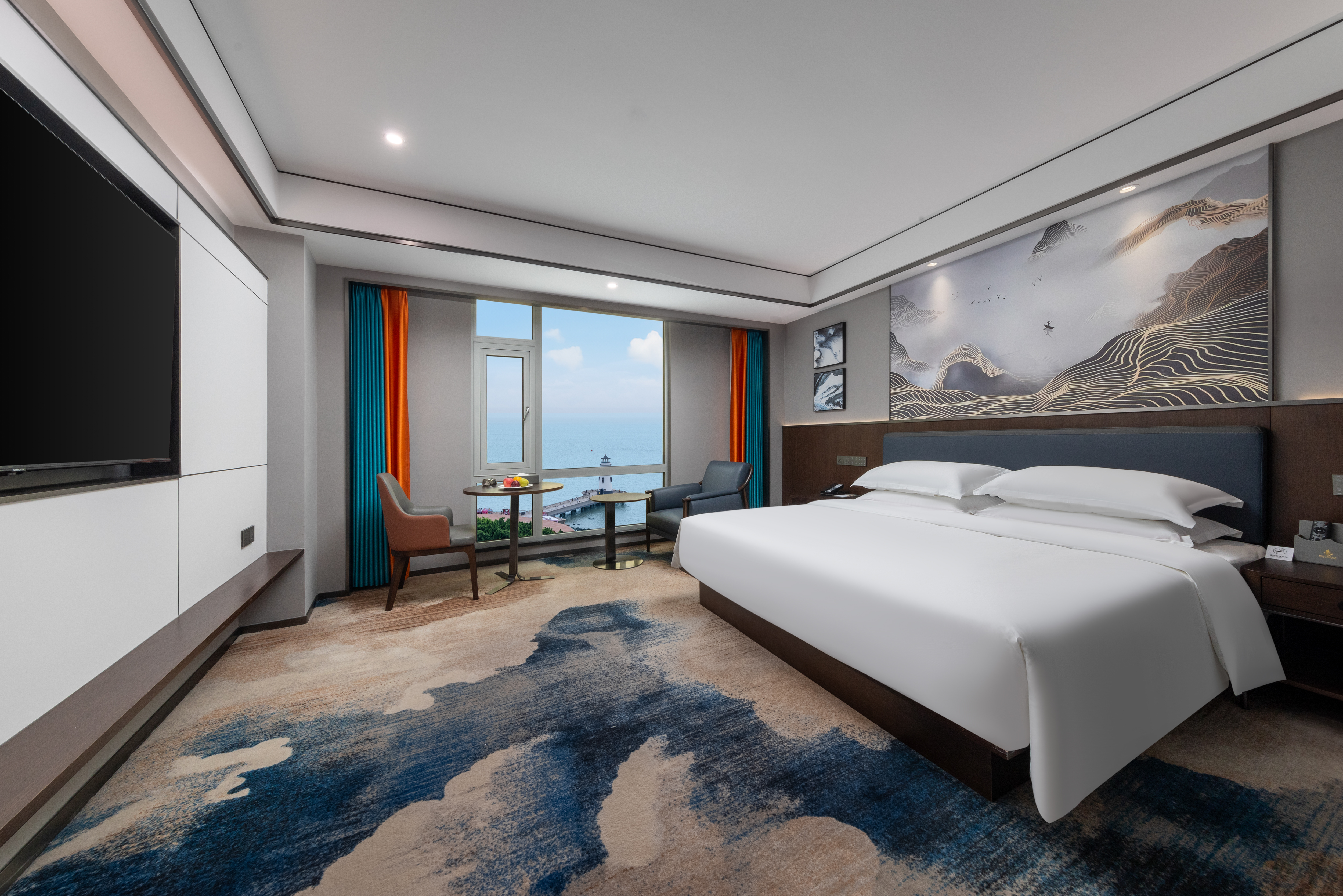 爱情邮局观海大床房(小冰箱+电动窗帘+65寸液晶电视)