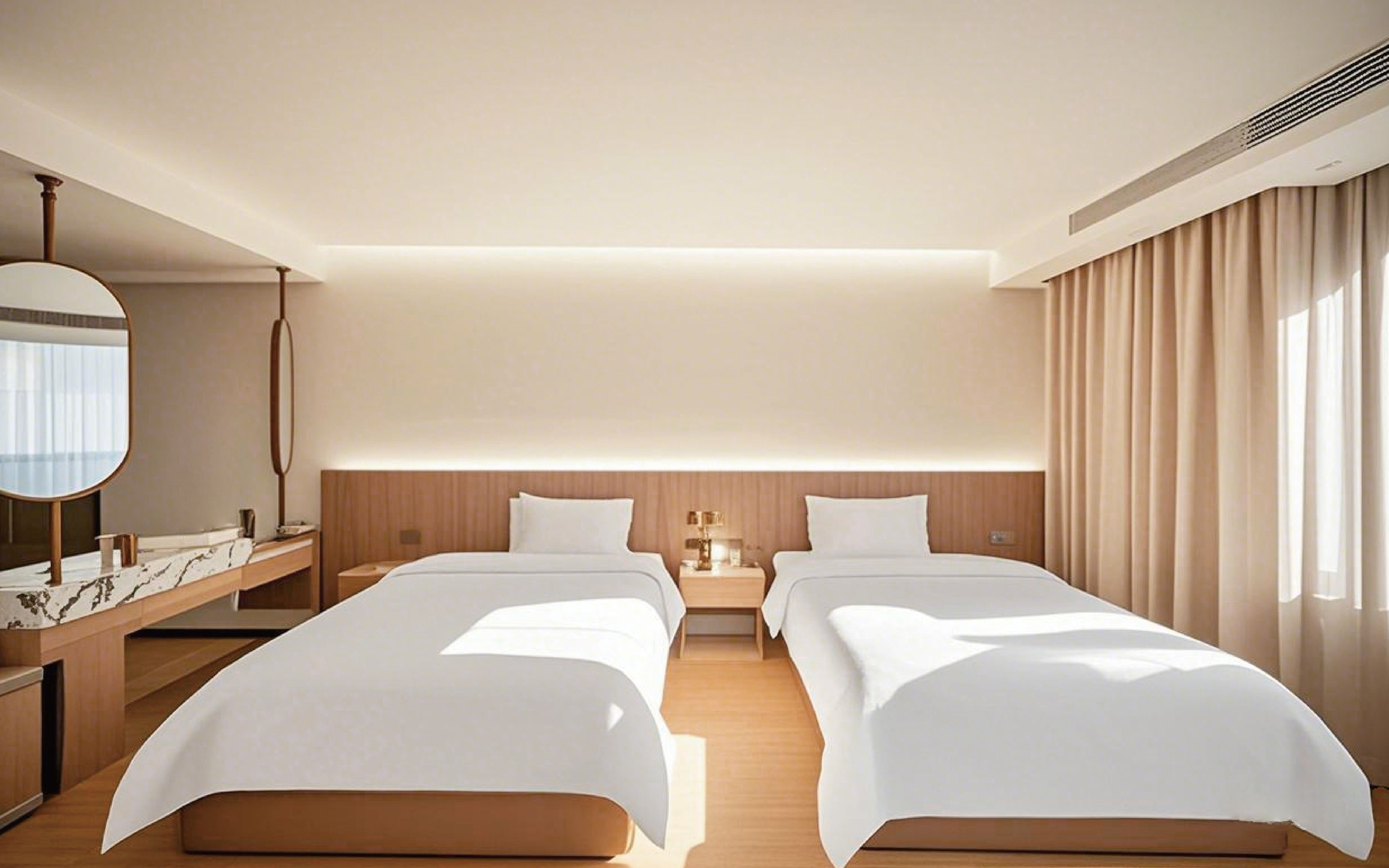 城景阳光豪华双床房(大空间+零压床+落地窗+巨幕电视)