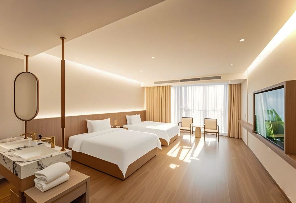 城景阳光豪华双床房(大空间+零压床+落地窗+巨幕电视)