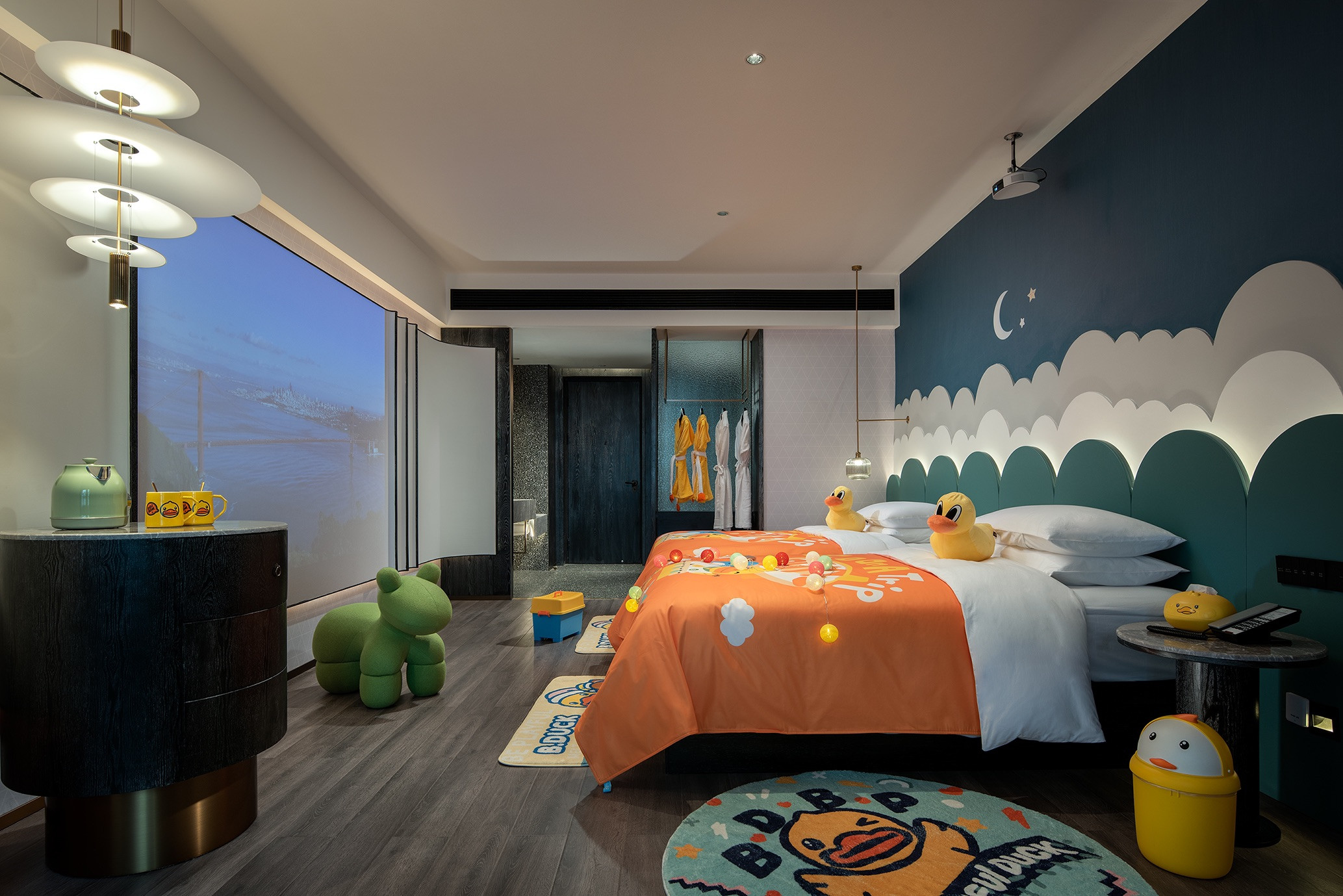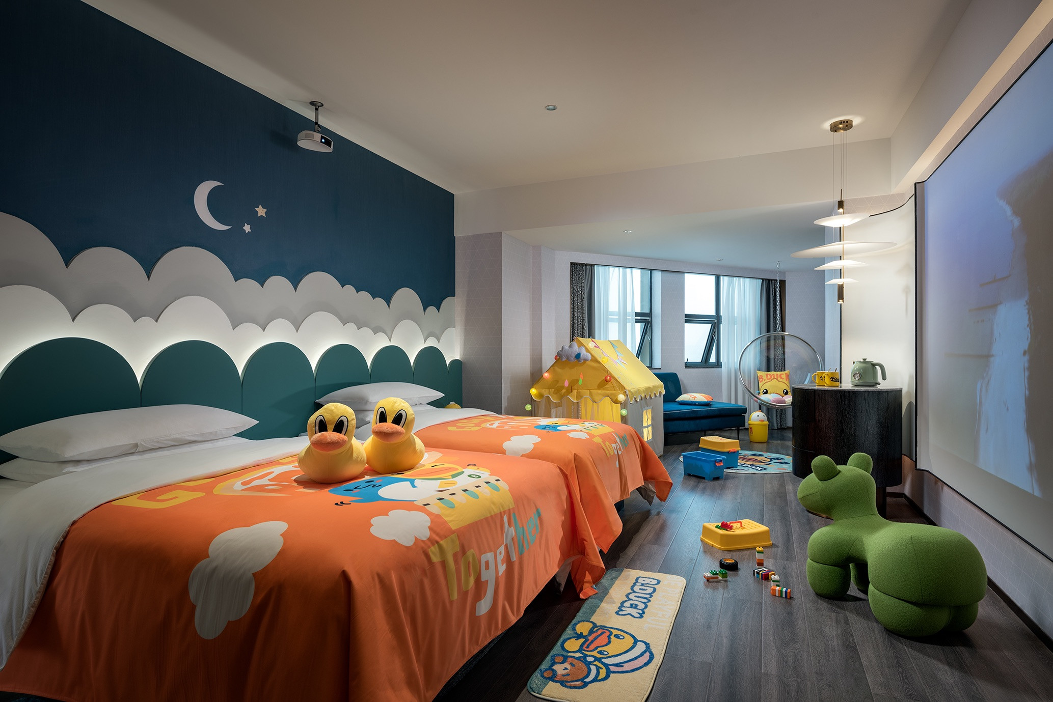 小黄鸭主题亲子房(小童影院+积木墙滑滑梯+宝宝用品)