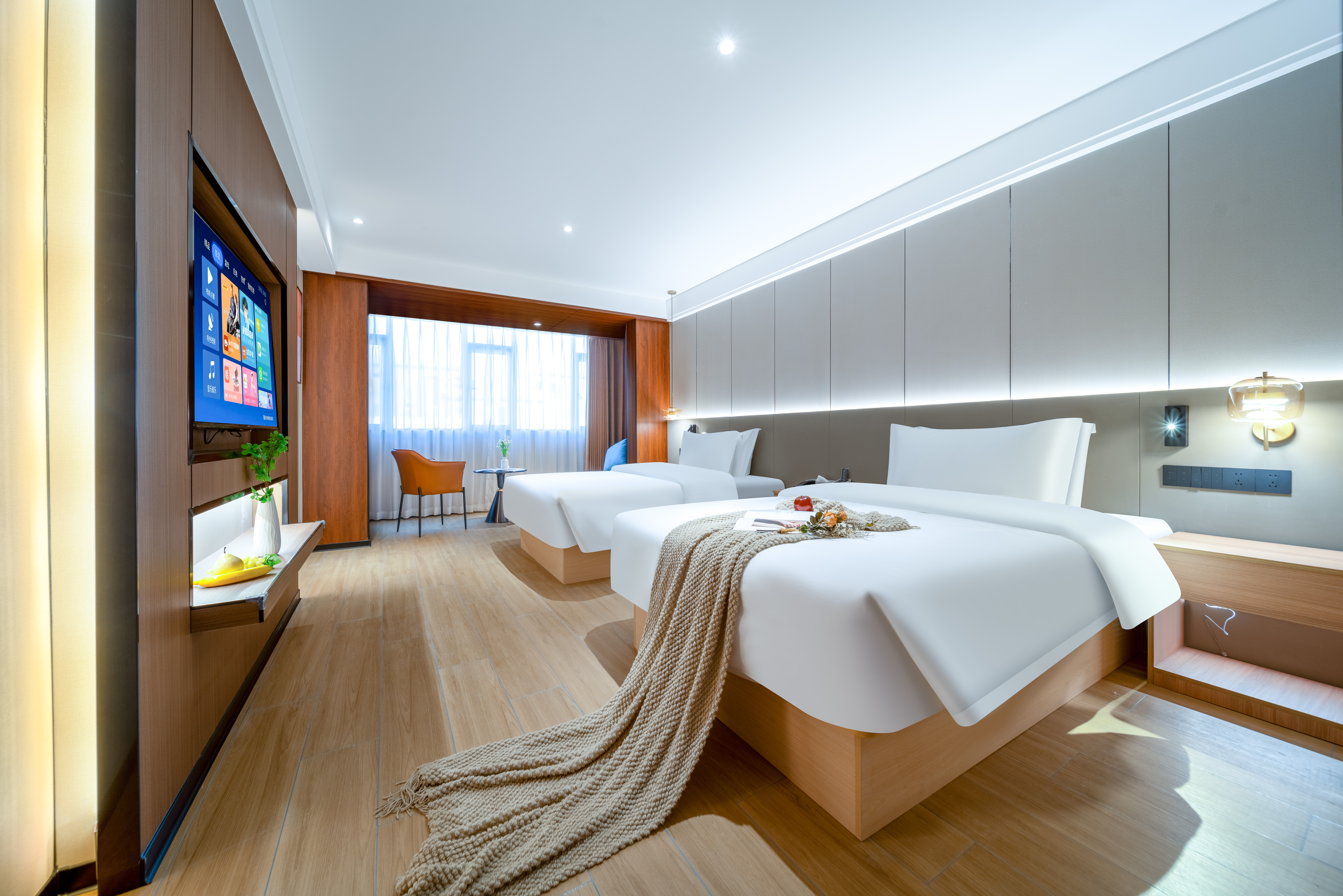 云逸双床房【阳光城景+双1.35大床+康乃馨床品】