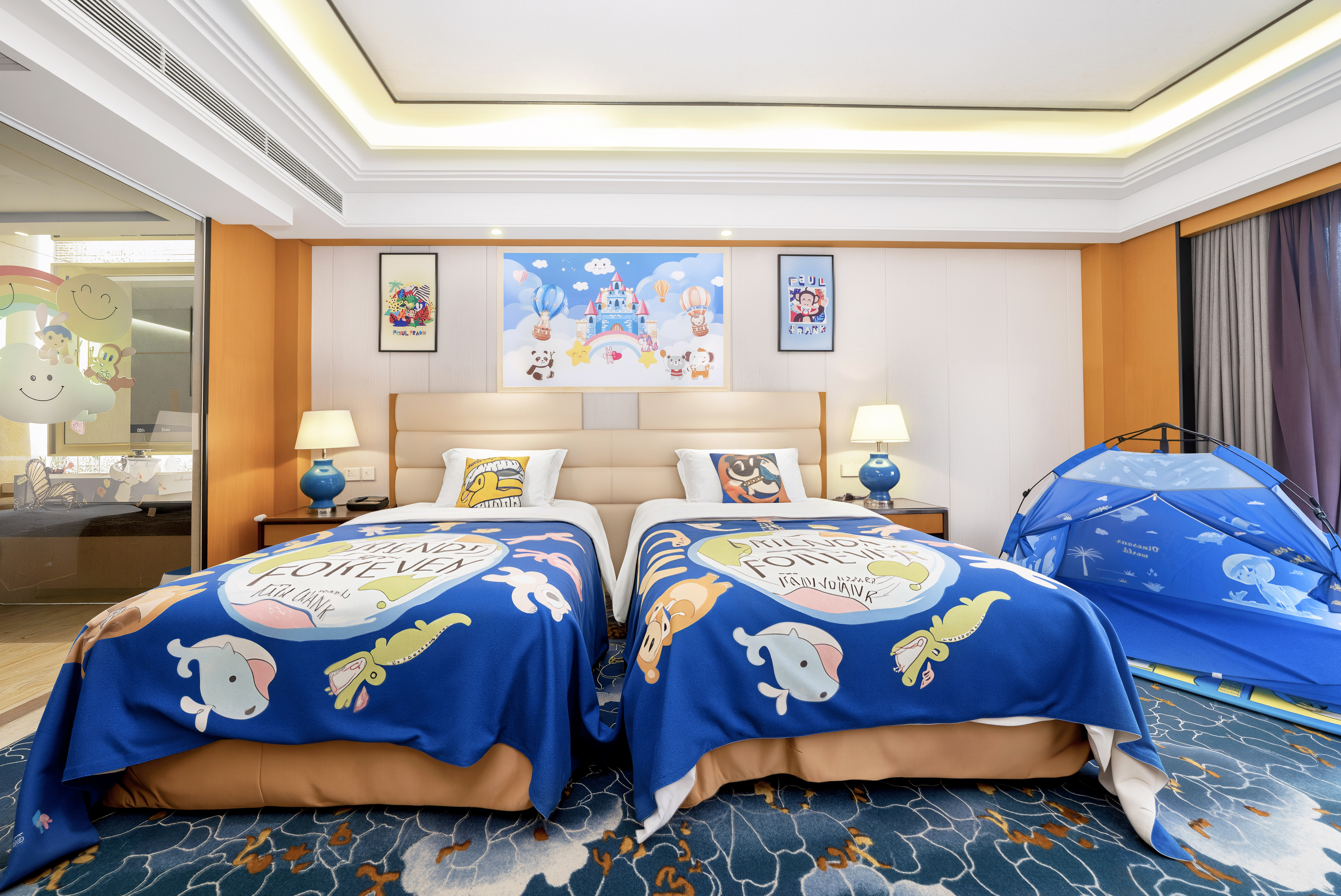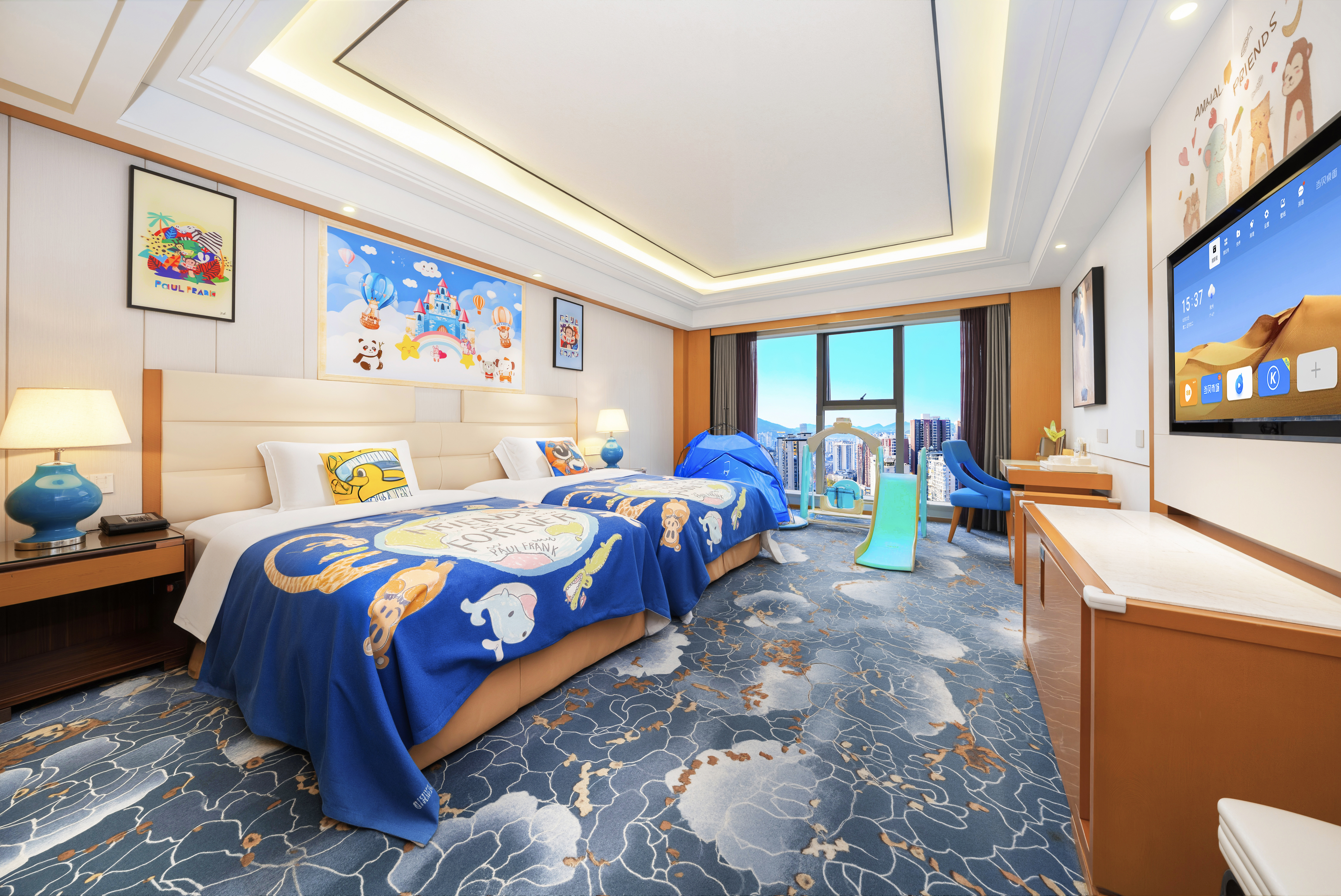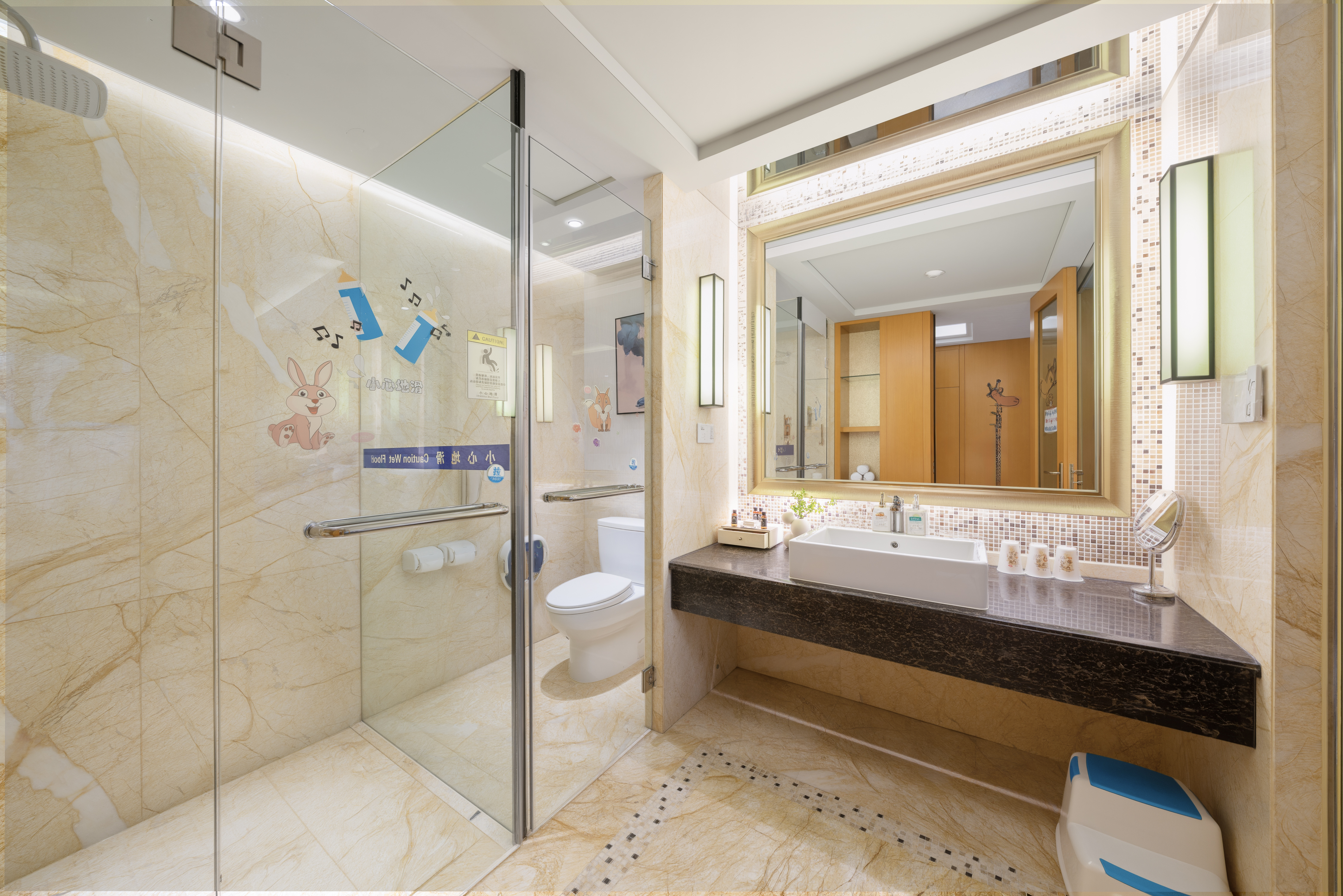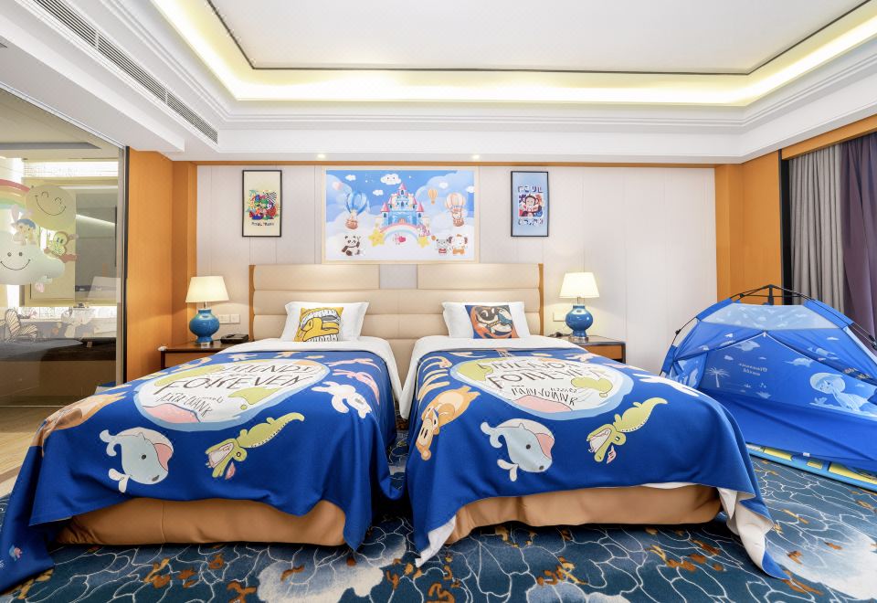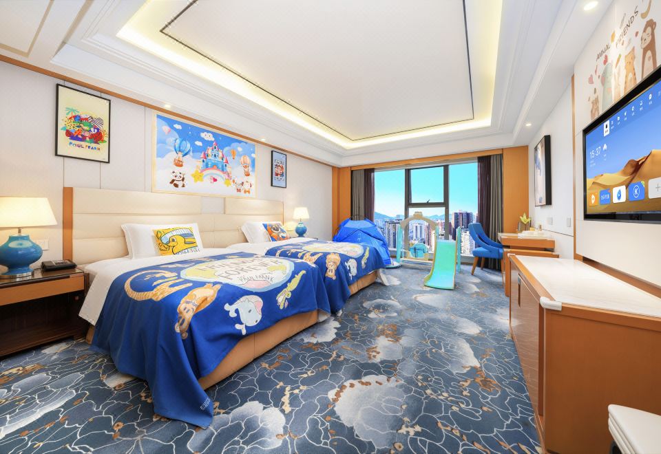 欢乐童年双床房+星梦奇趣小滑梯+萌宝洗漱护理