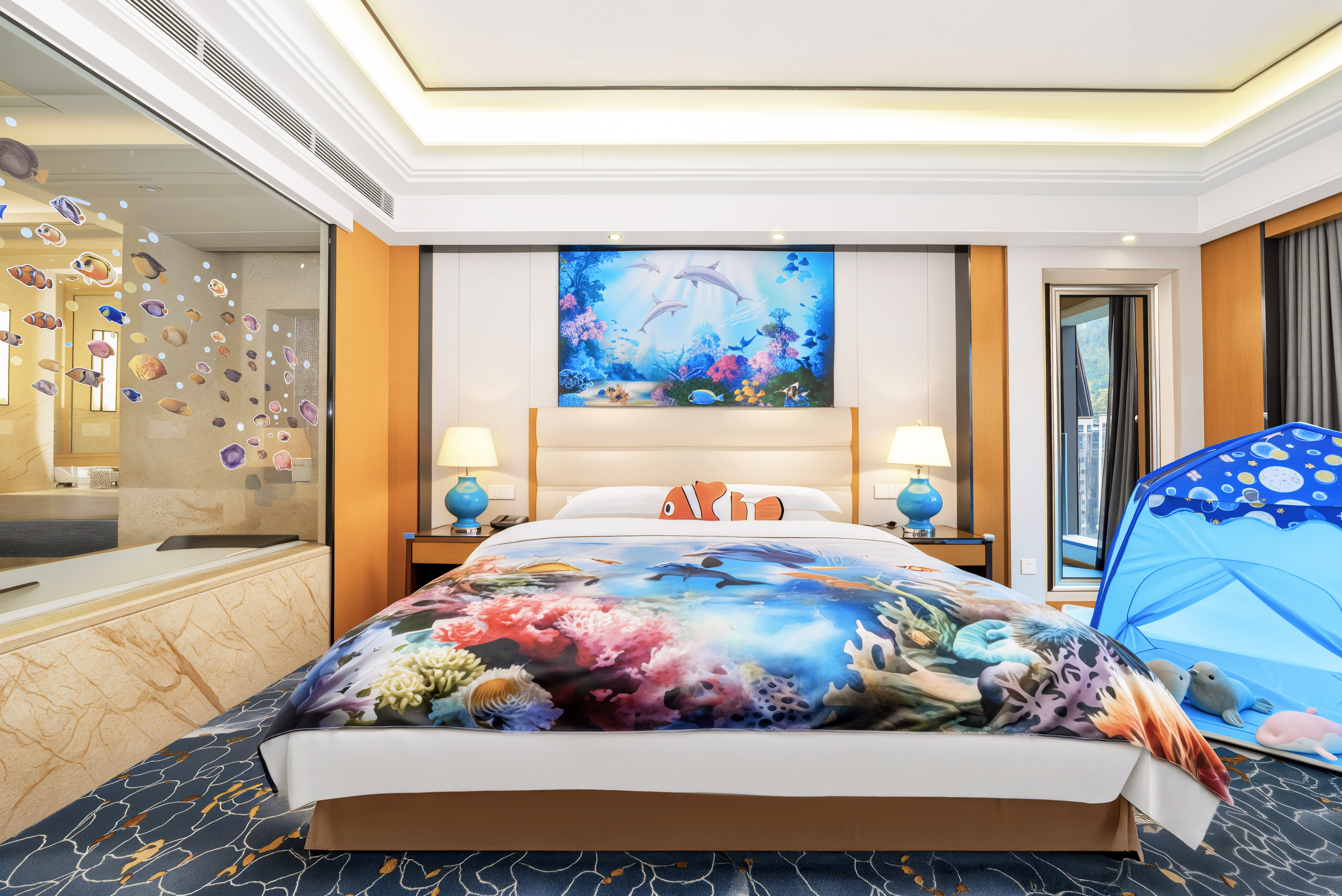 帐篷童趣大床房+萌娃秋千雅座+童乐泡泡浴