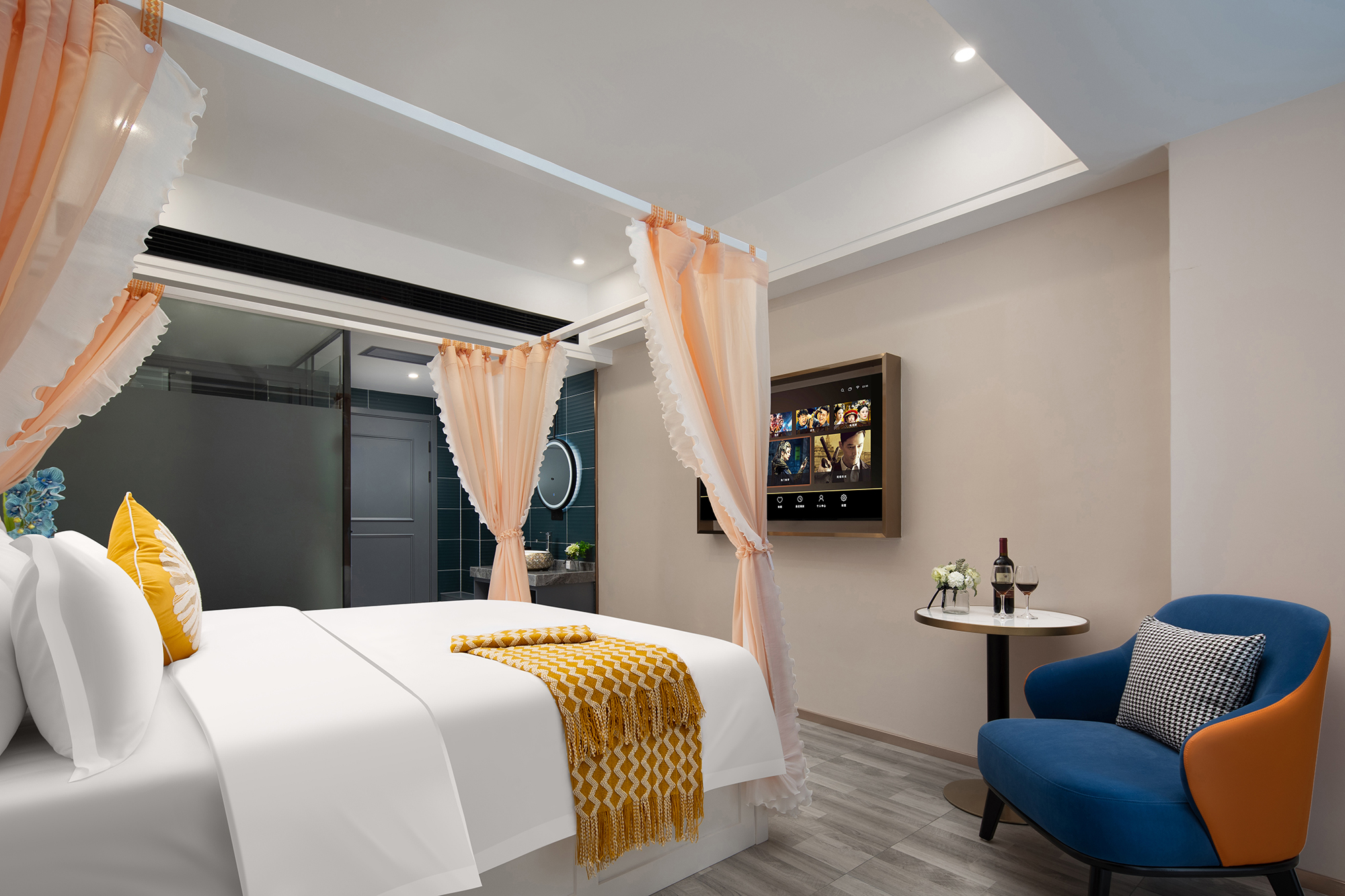 栖逸投影套房-现代中式风+浴缸