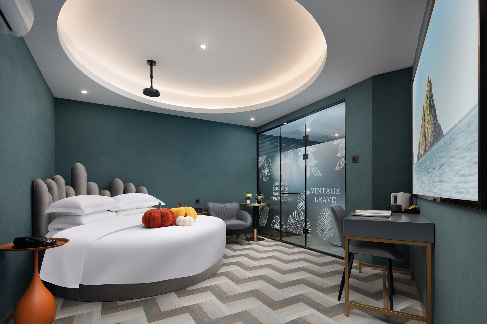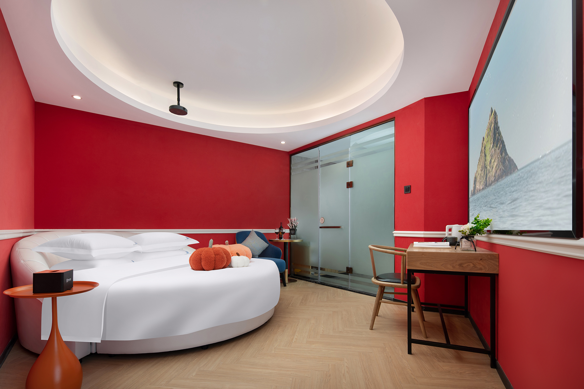 栖涧浴缸圆床房-LED化粧镜+愉梦之床