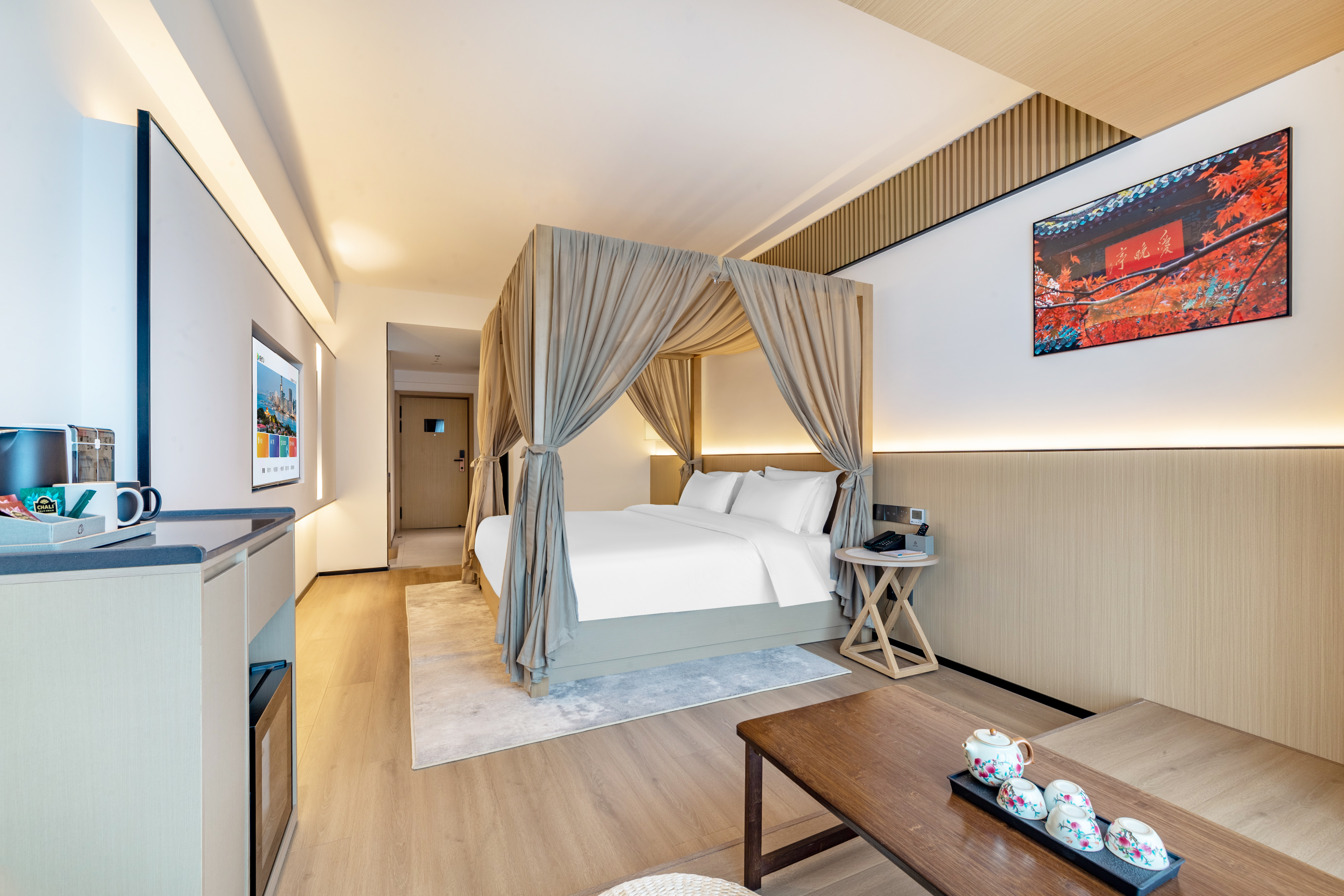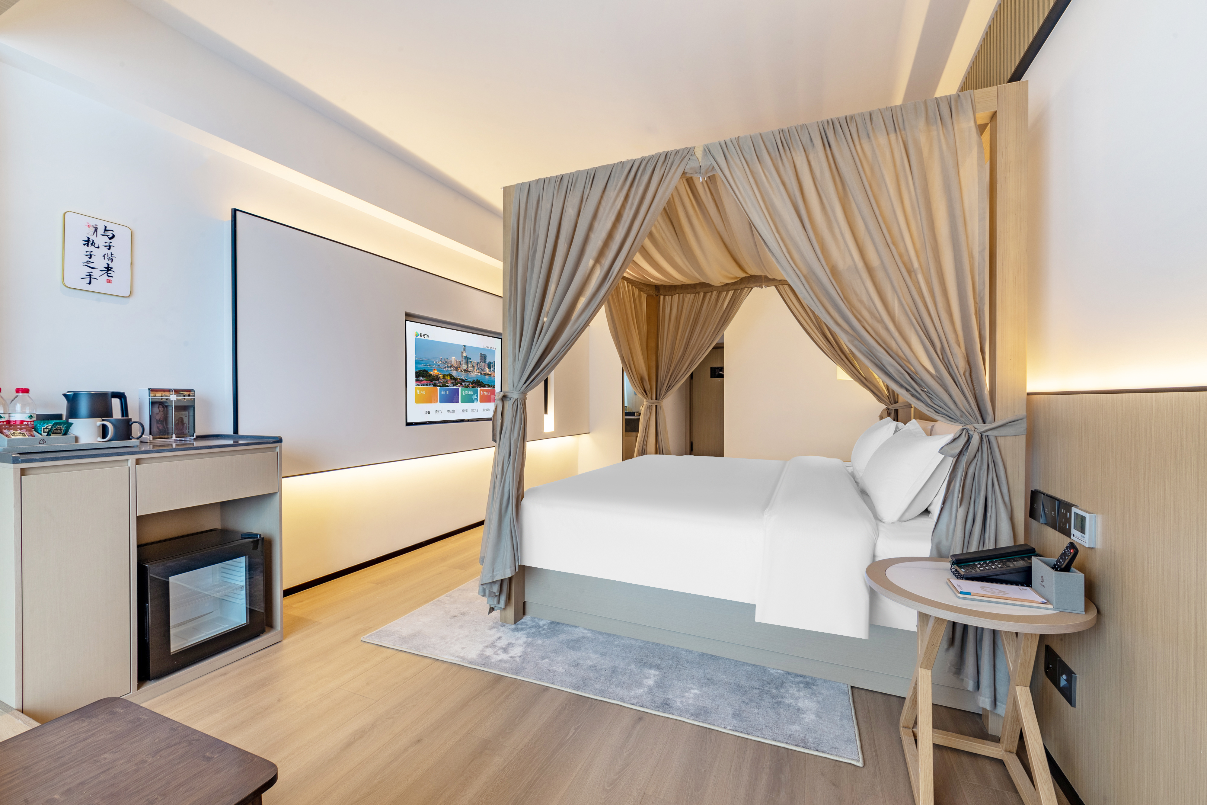 美薈GM|清雅情侶大床房【氛圍感榻榻米|小冰箱】