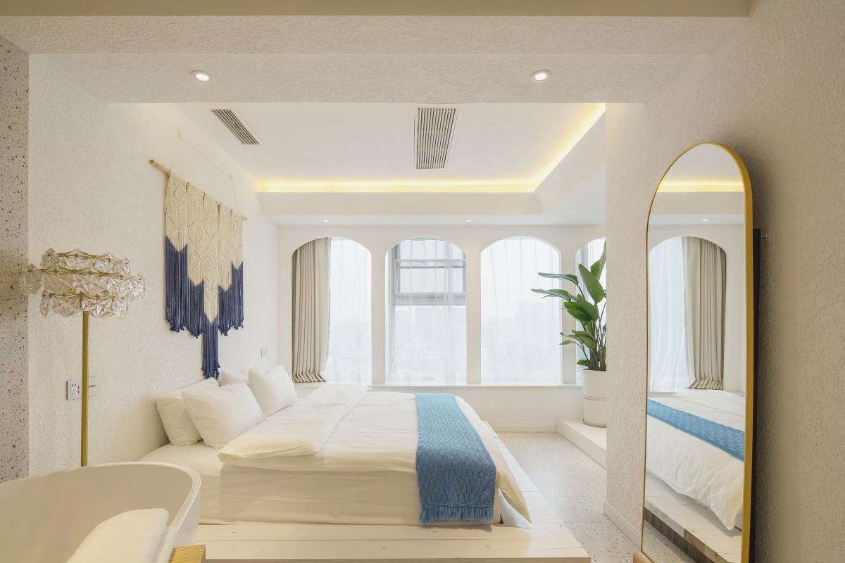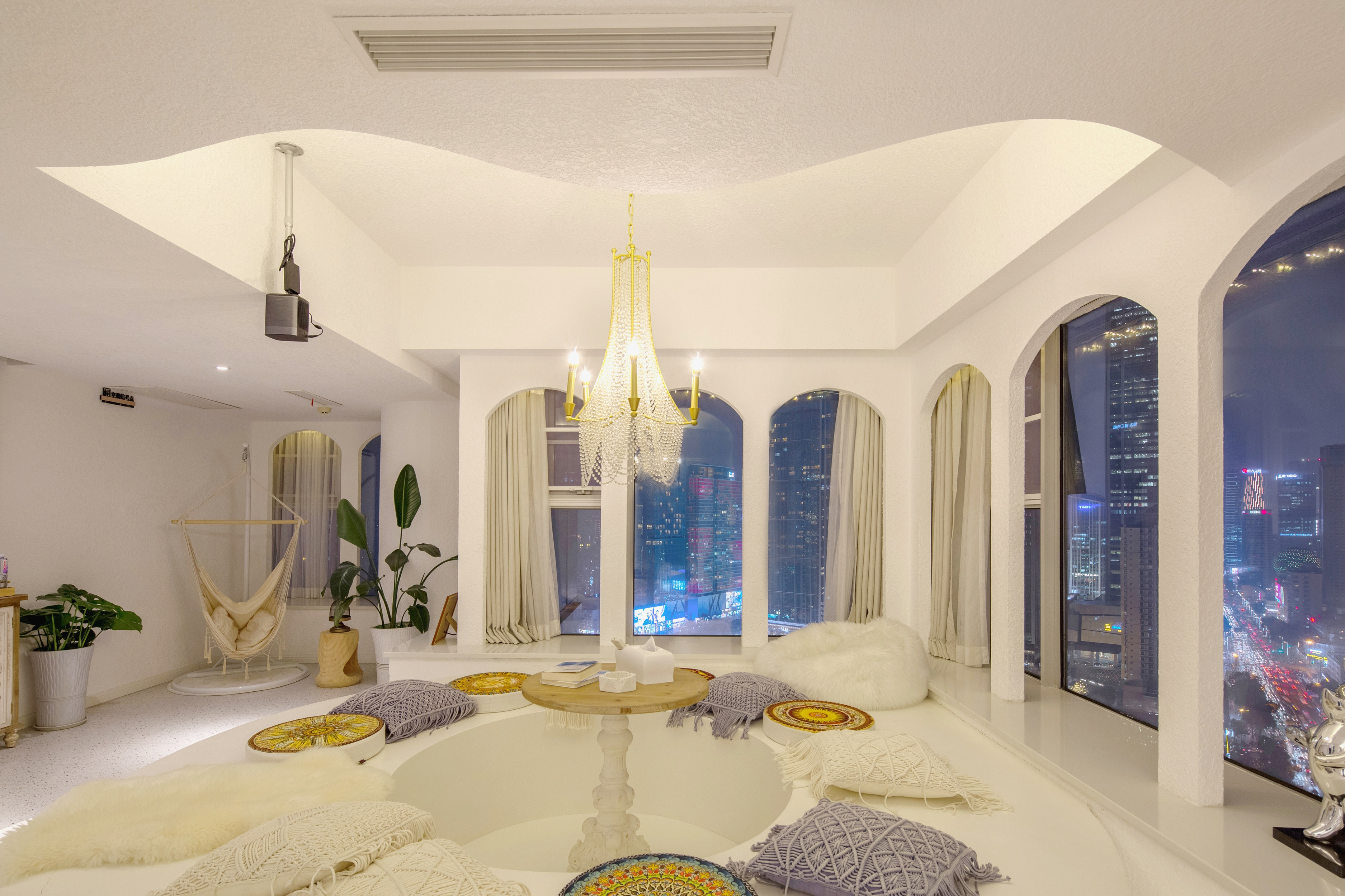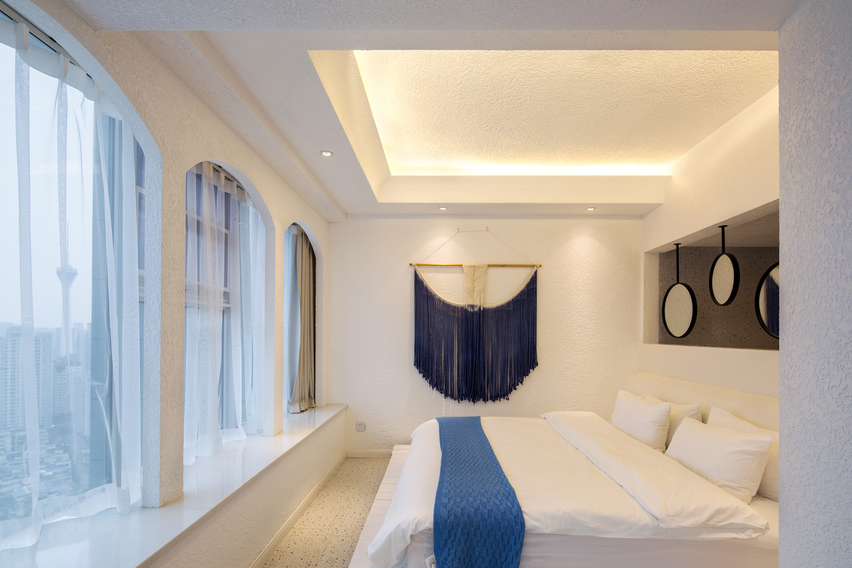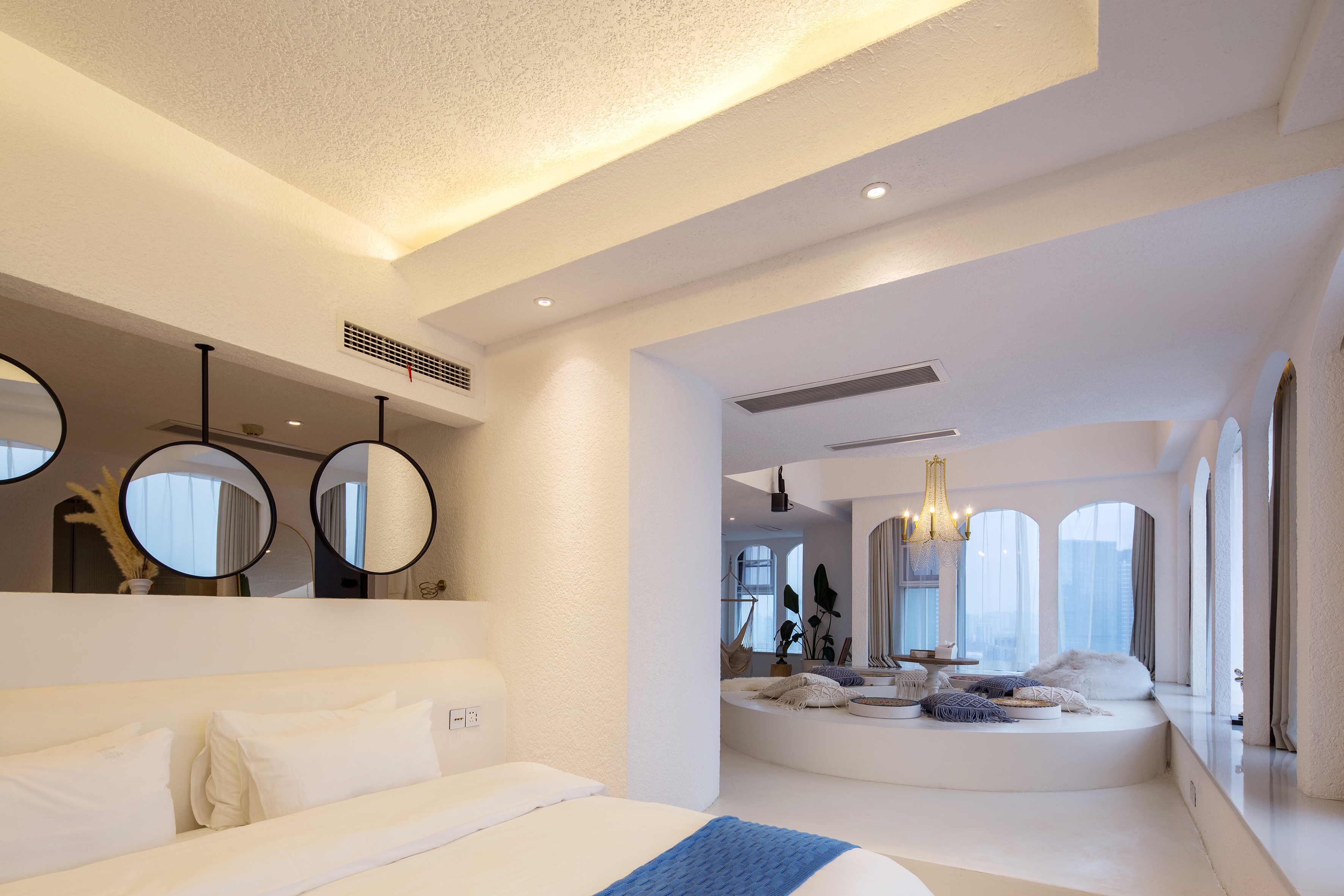 希腊圣托里尼高空城景套房B(巨幕投影+浴缸+270度观景)