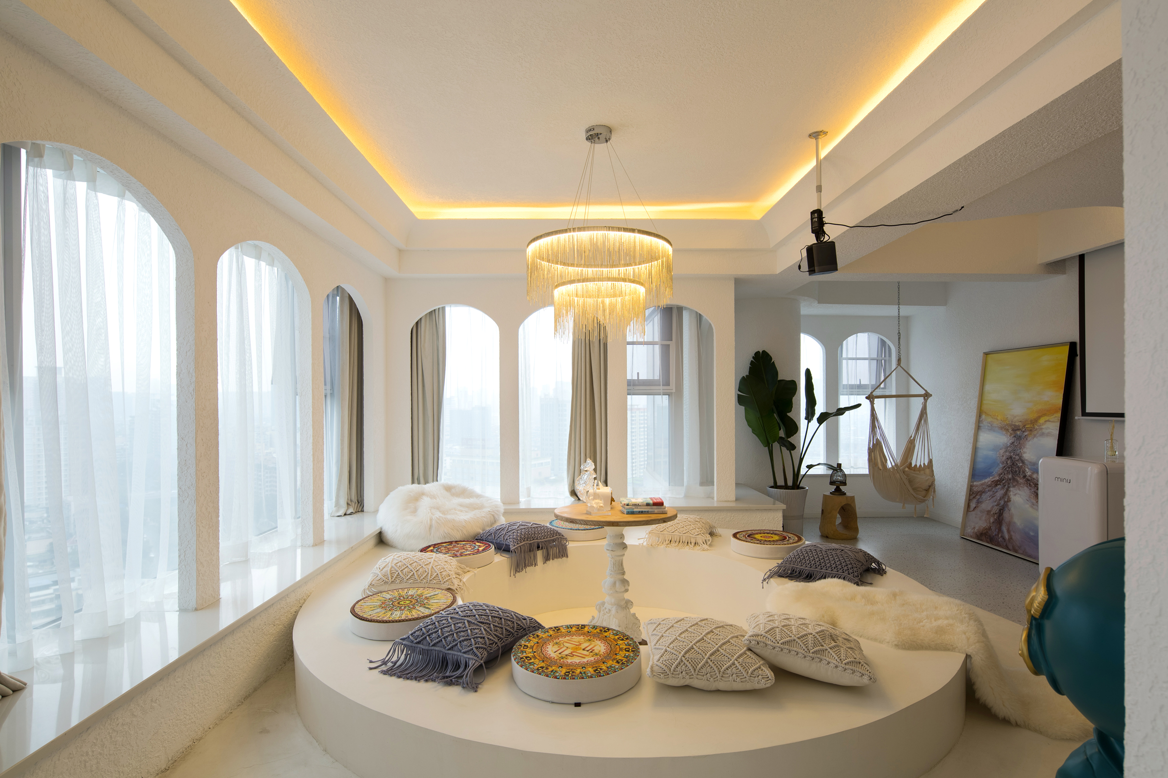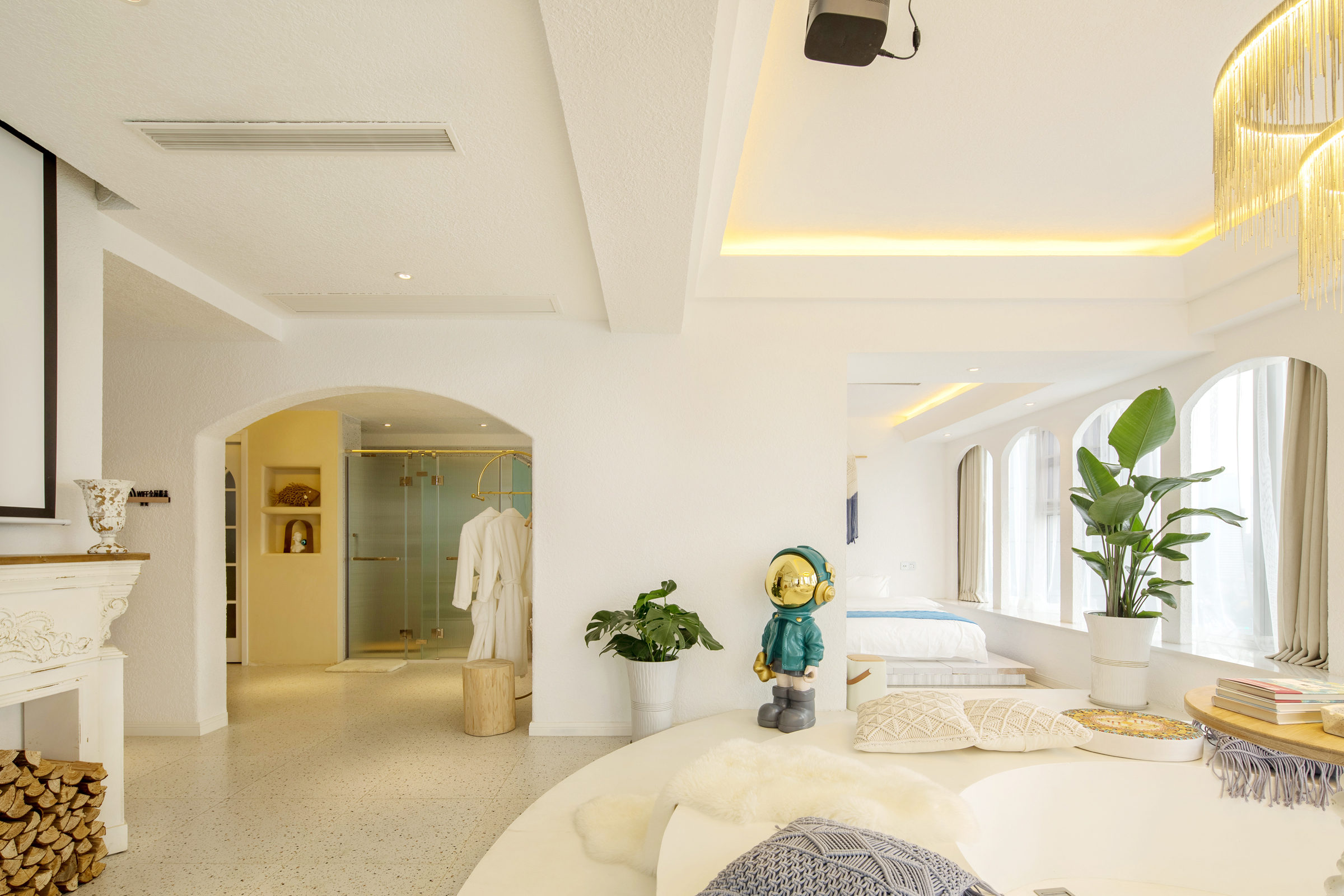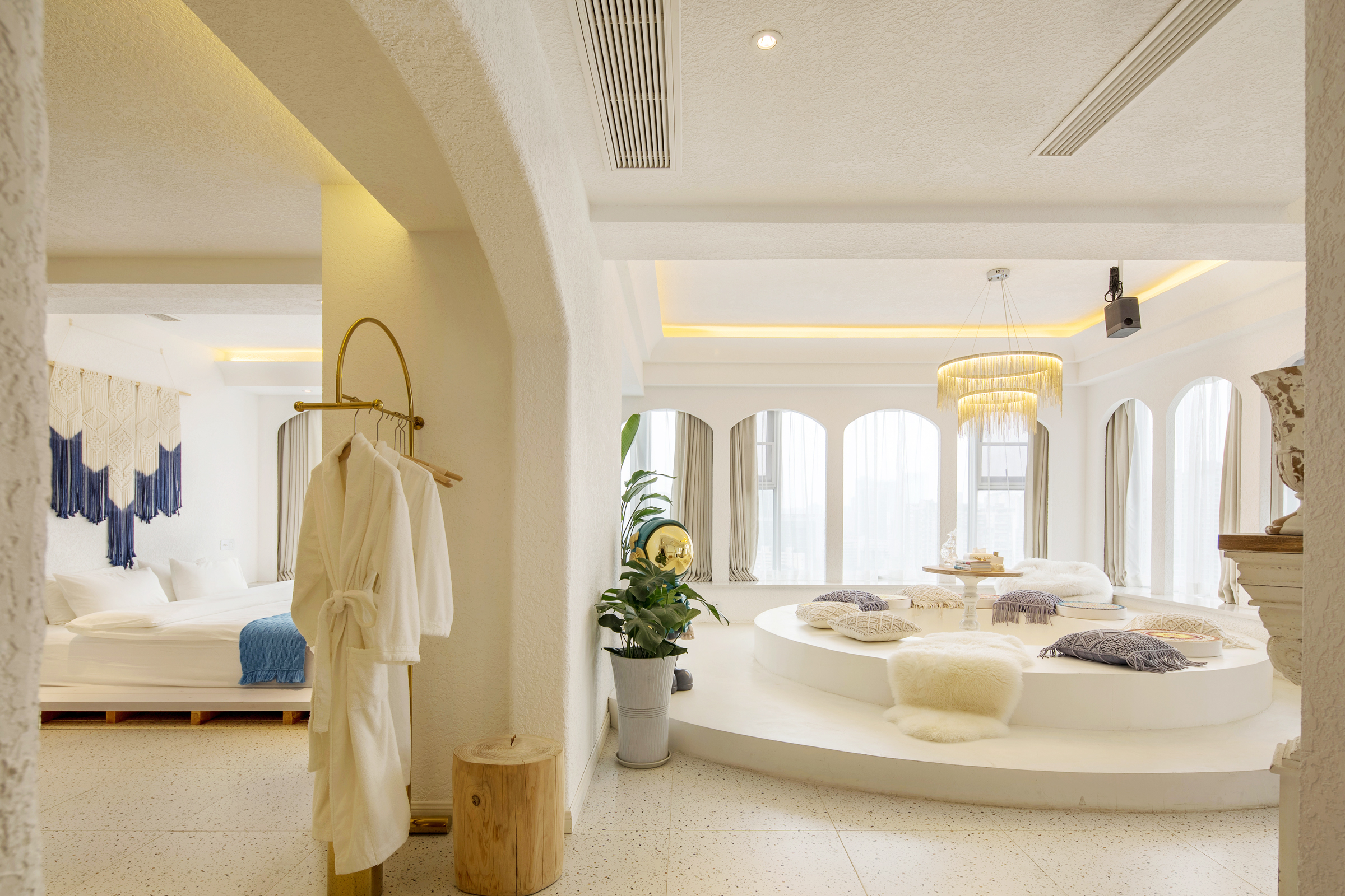 希腊圣托里尼高空城景套房A(巨幕投影+浴缸+270度观景)