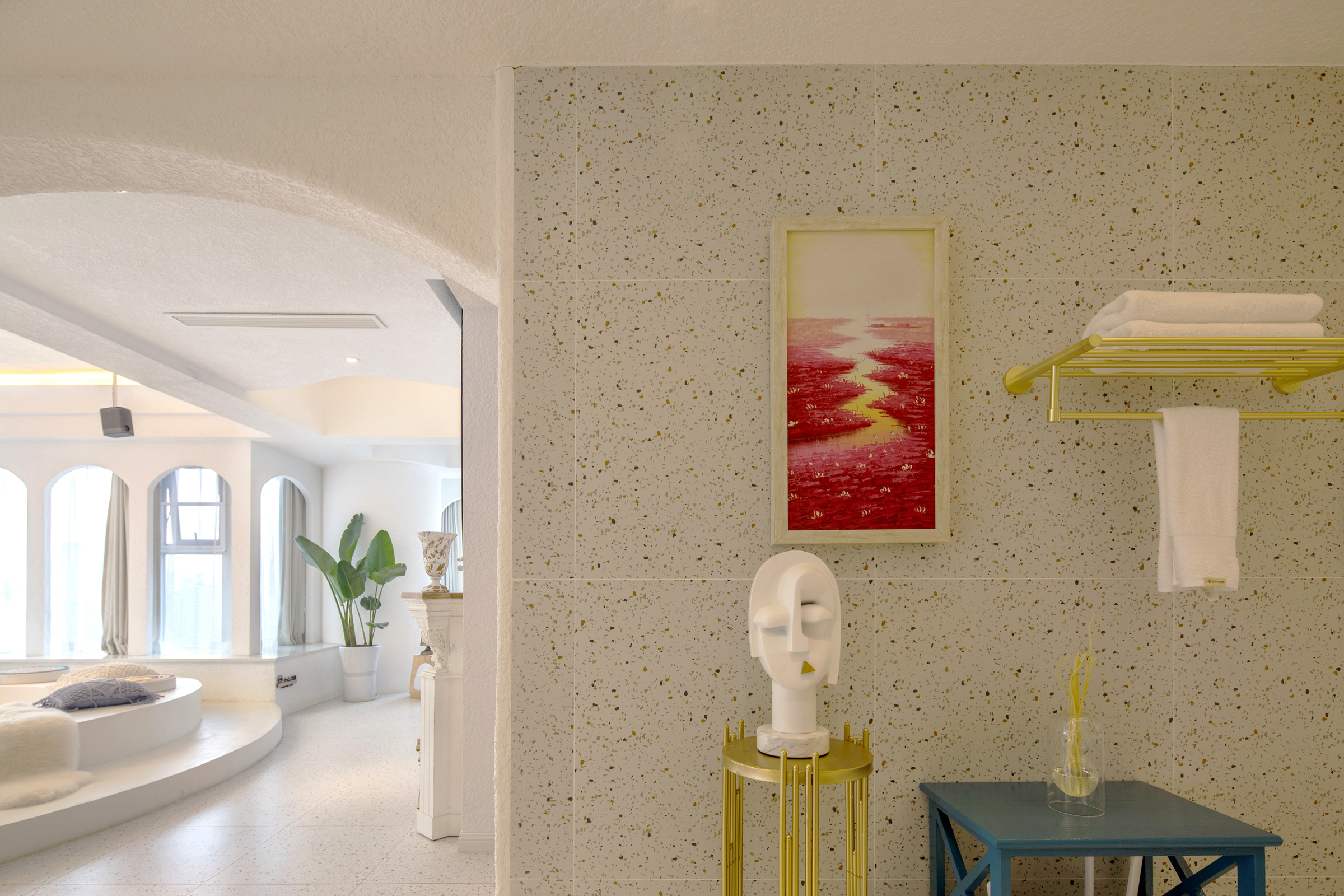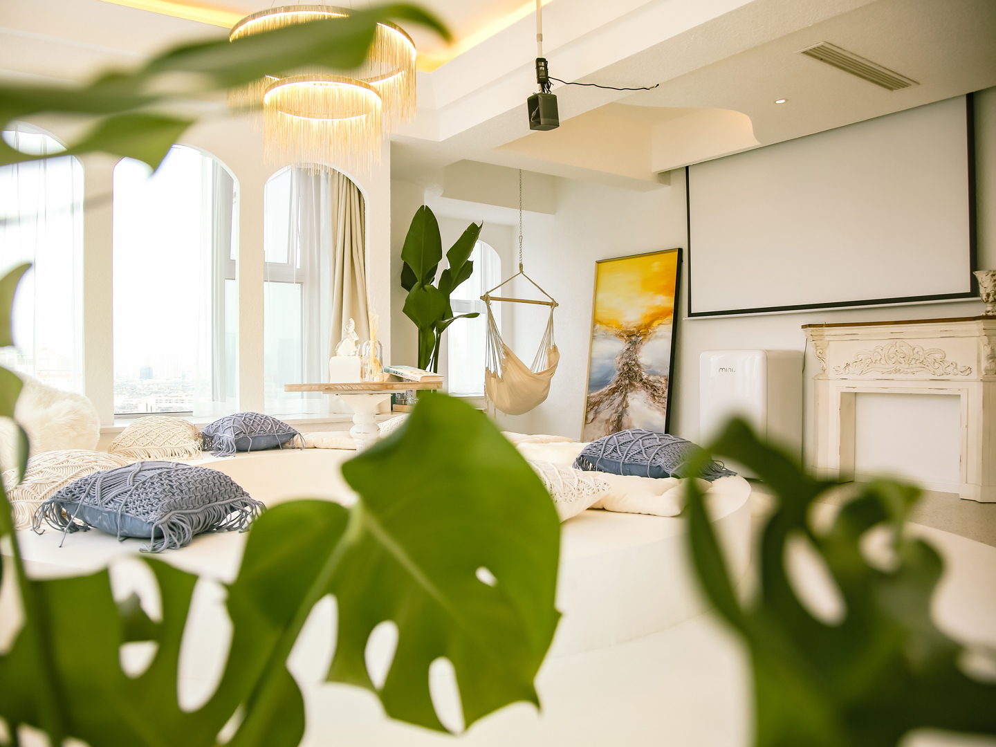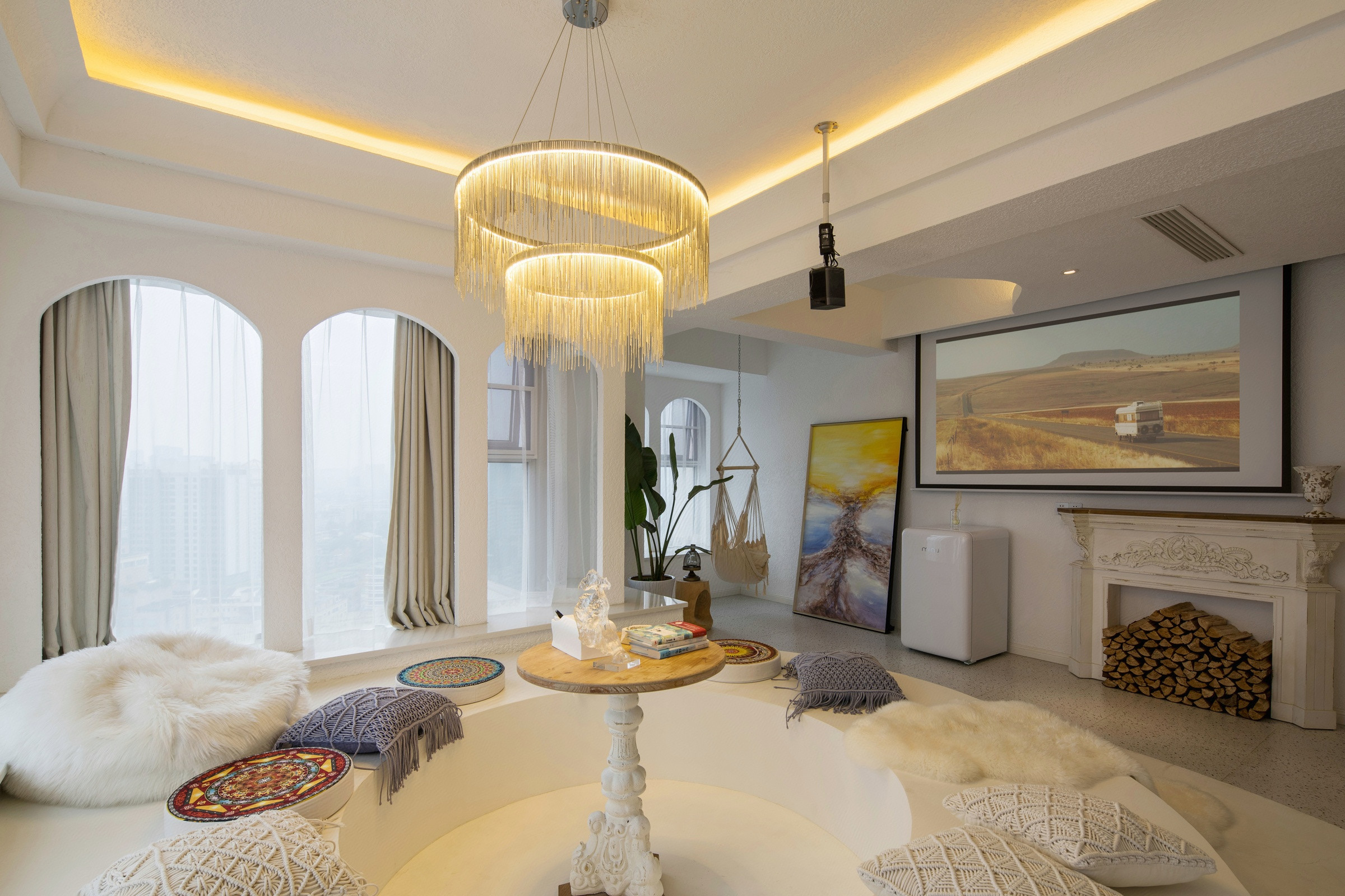 希腊圣托里尼高空城景套房A(巨幕投影+浴缸+270度观景)