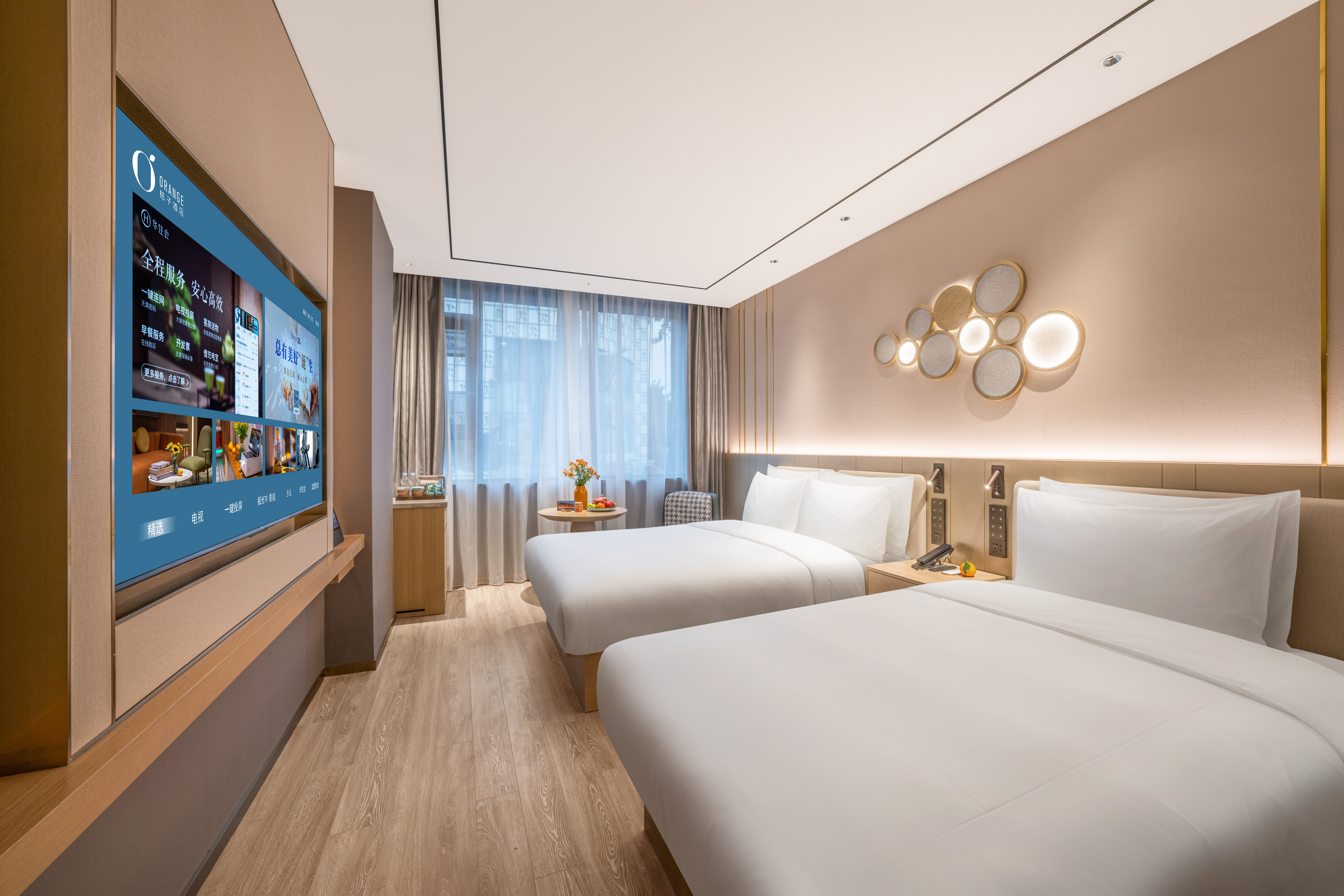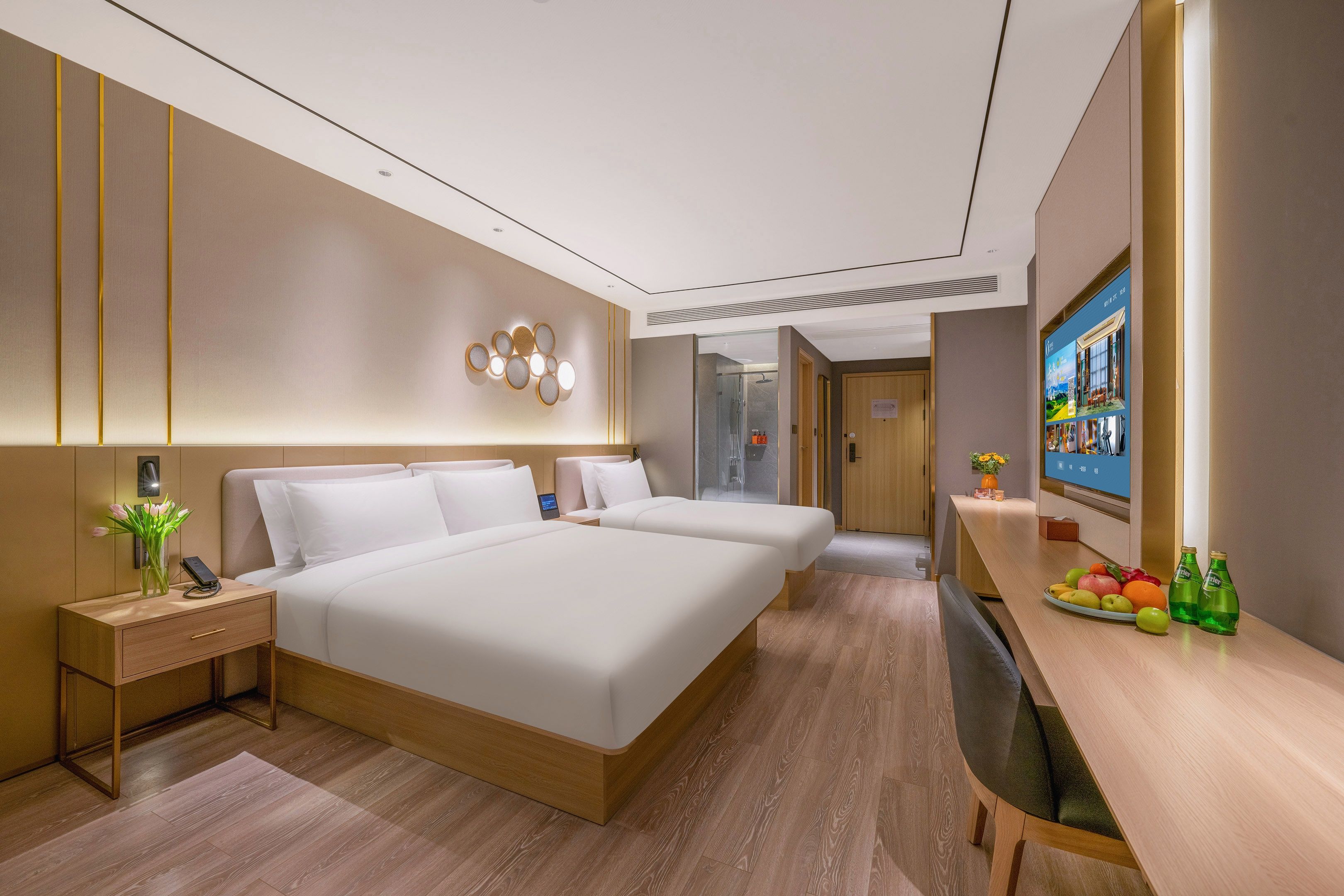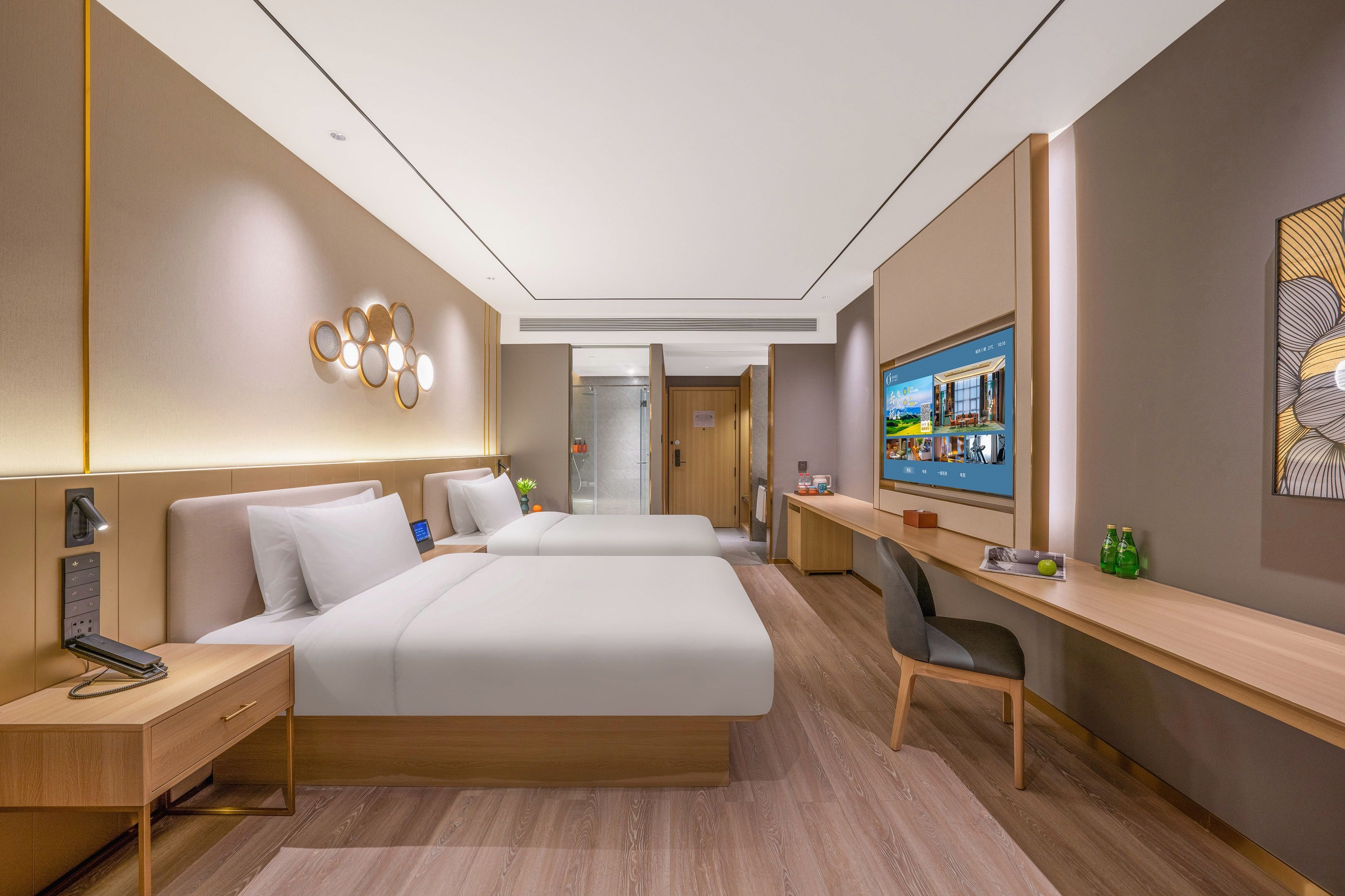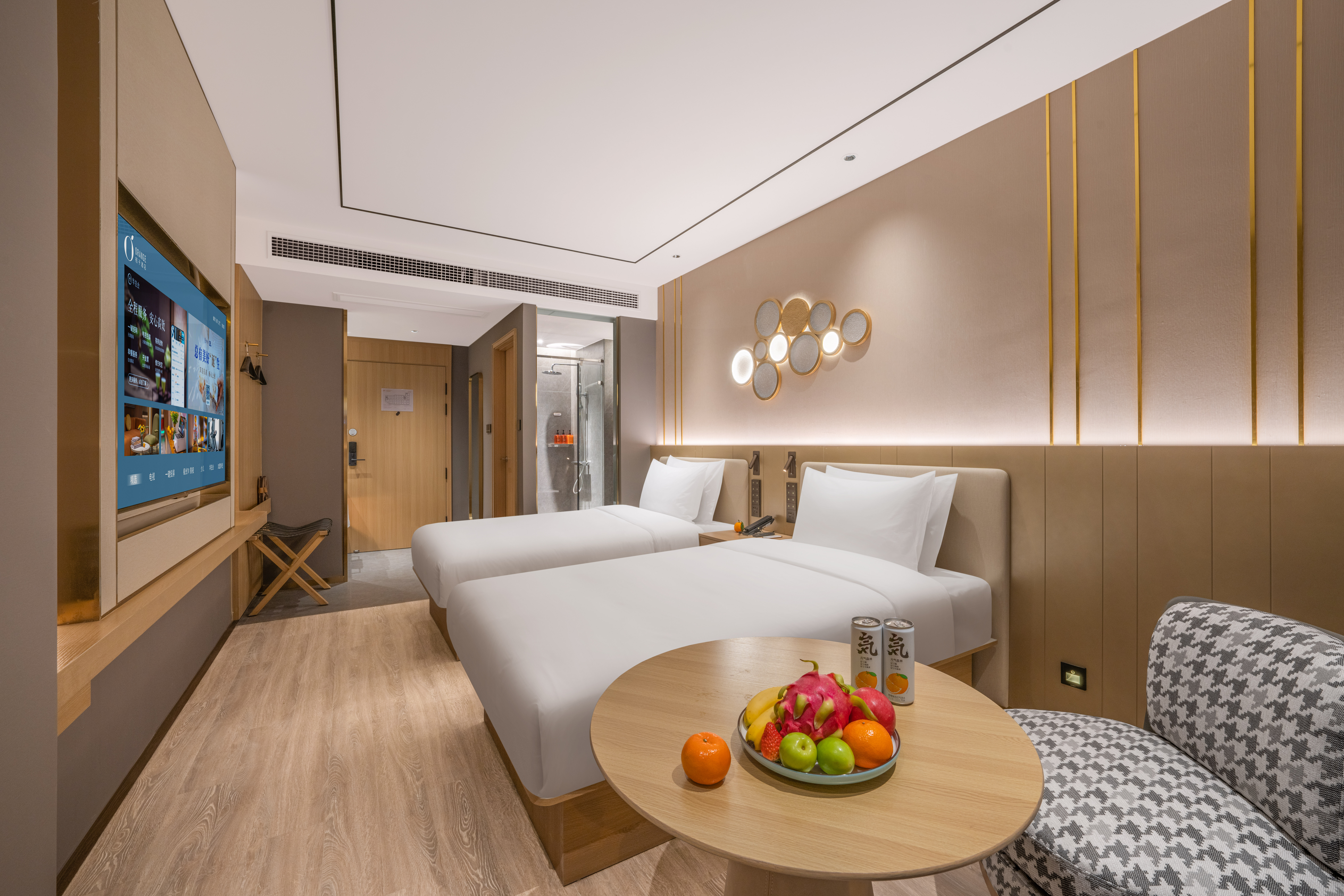 月若流金双床房(雨淋顶喷+语音客控+小冰箱)