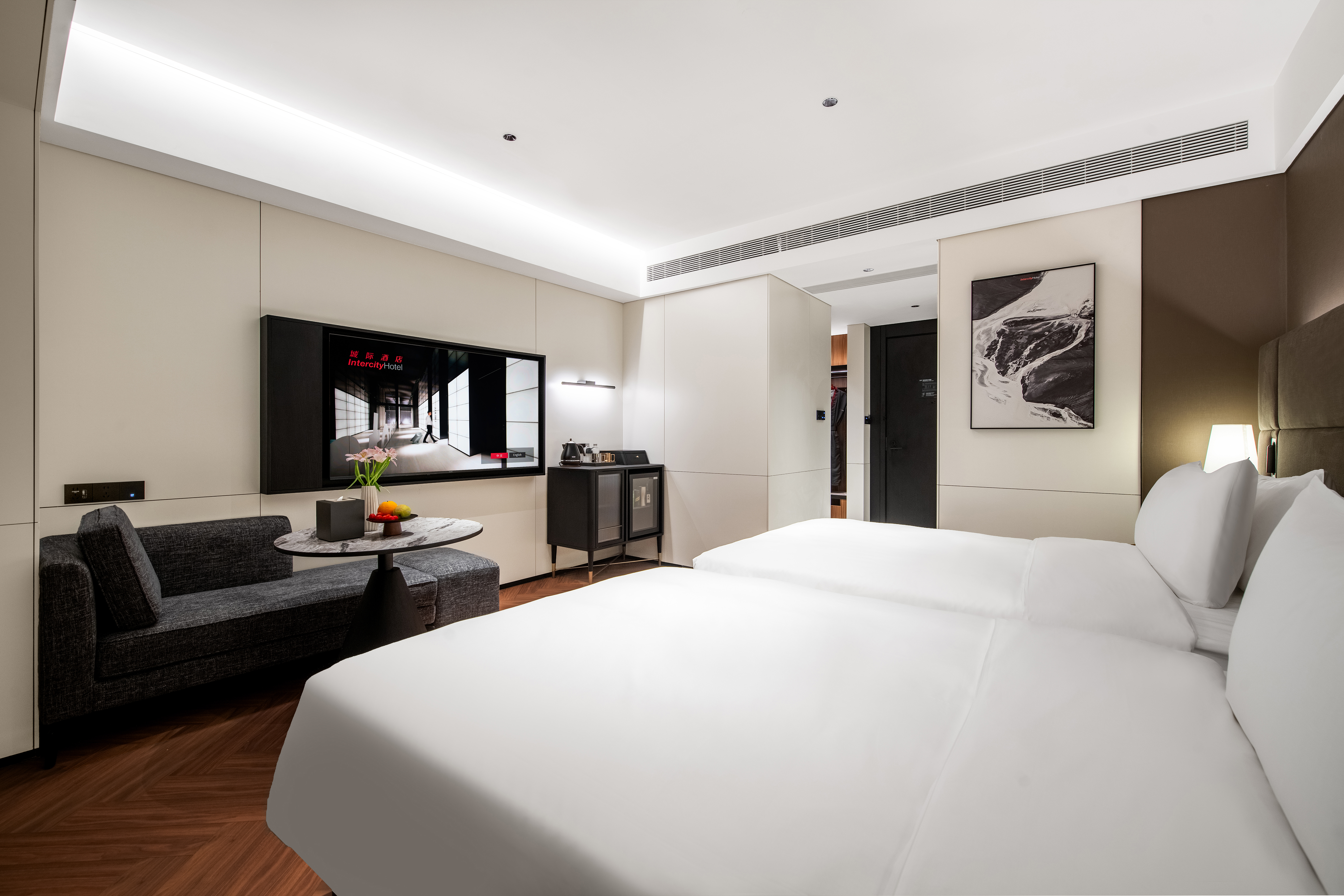 城际高级双床房(Minibar+65寸投屏电视+雨淋顶喷)