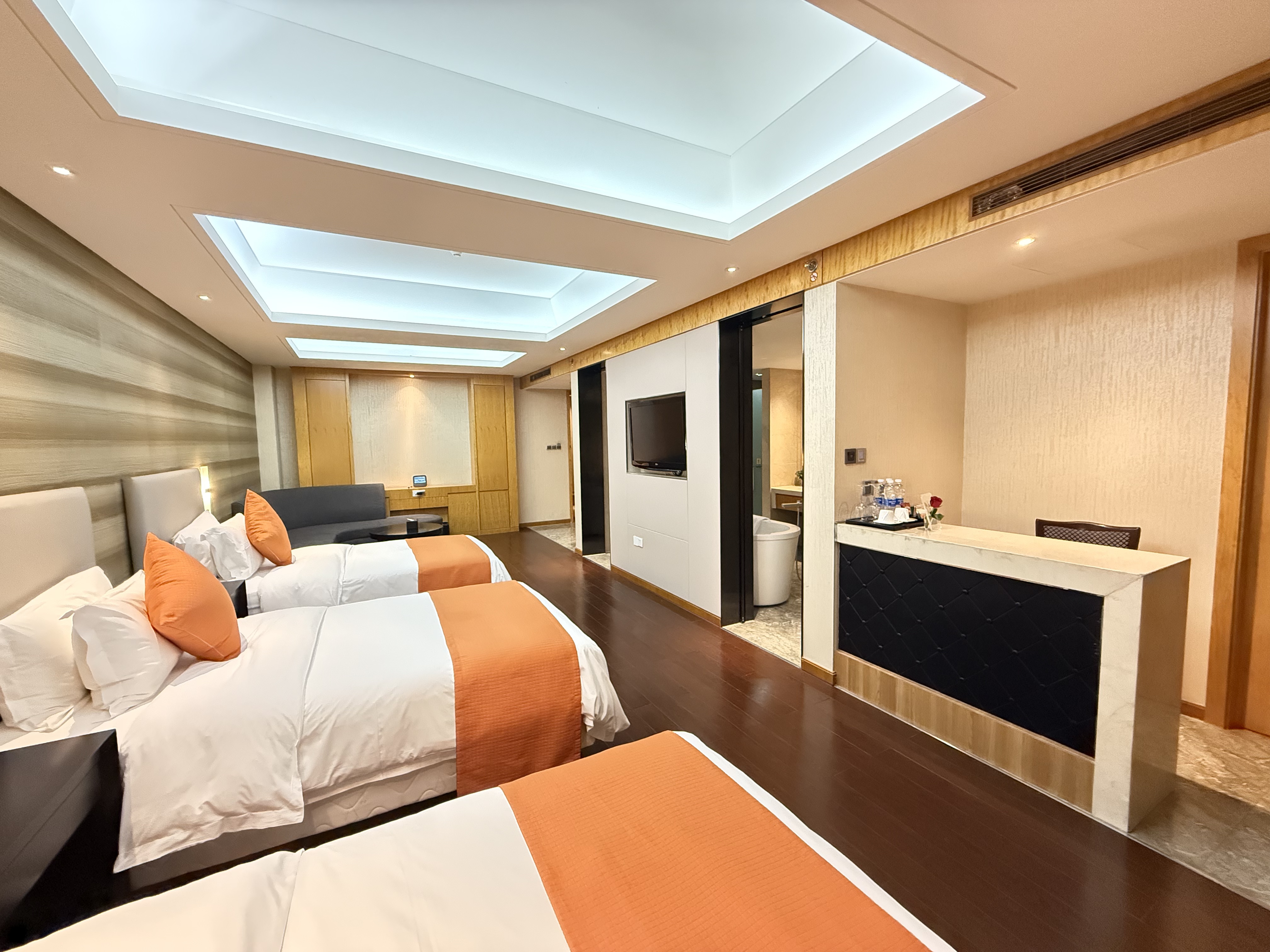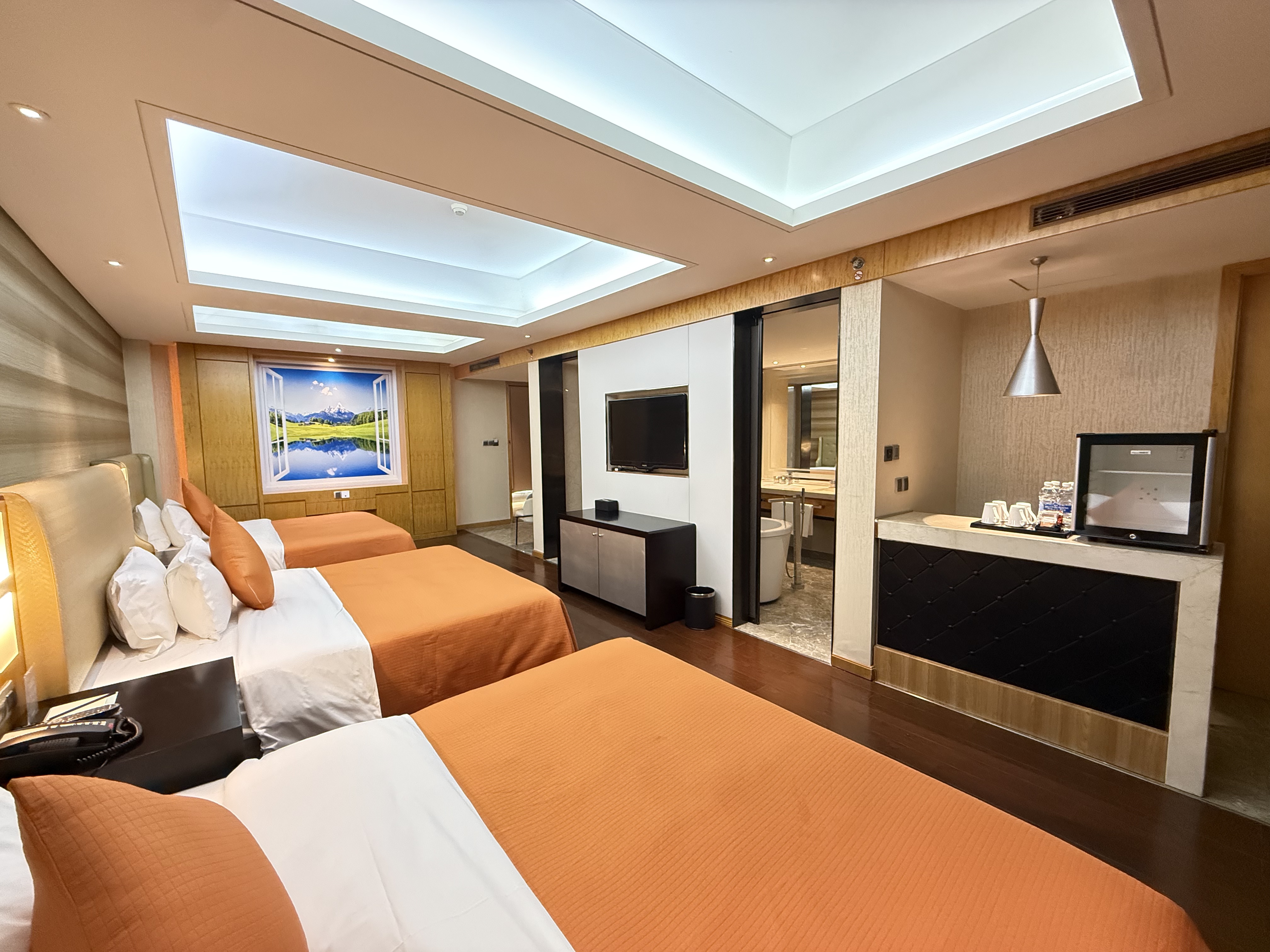 丽雅静谧三人套房+三张大床+双洗漱台+吧枱+浴缸