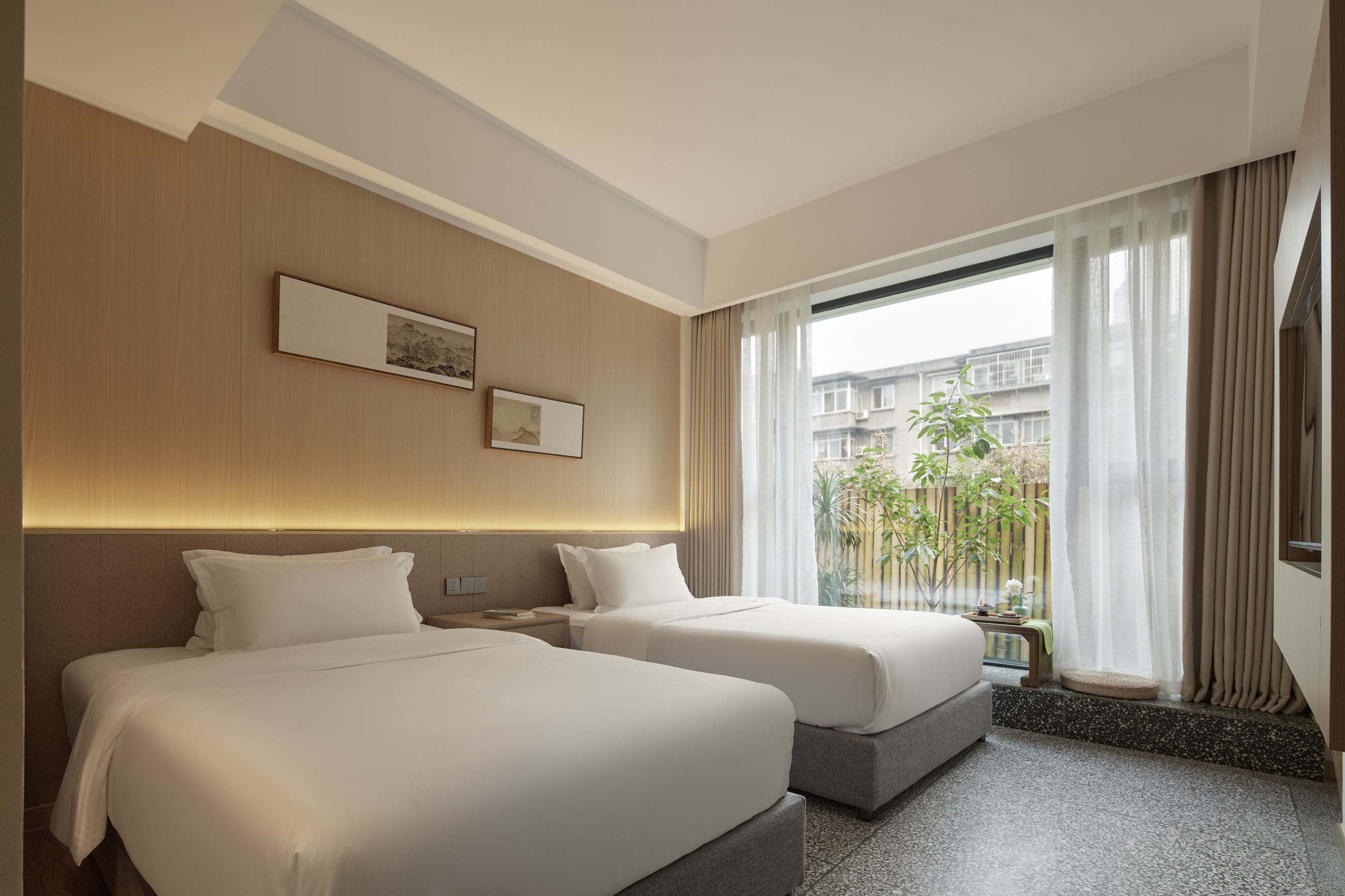 栖悦丨庭院双床房(私人小院丨茶室丨蓝牙音响)