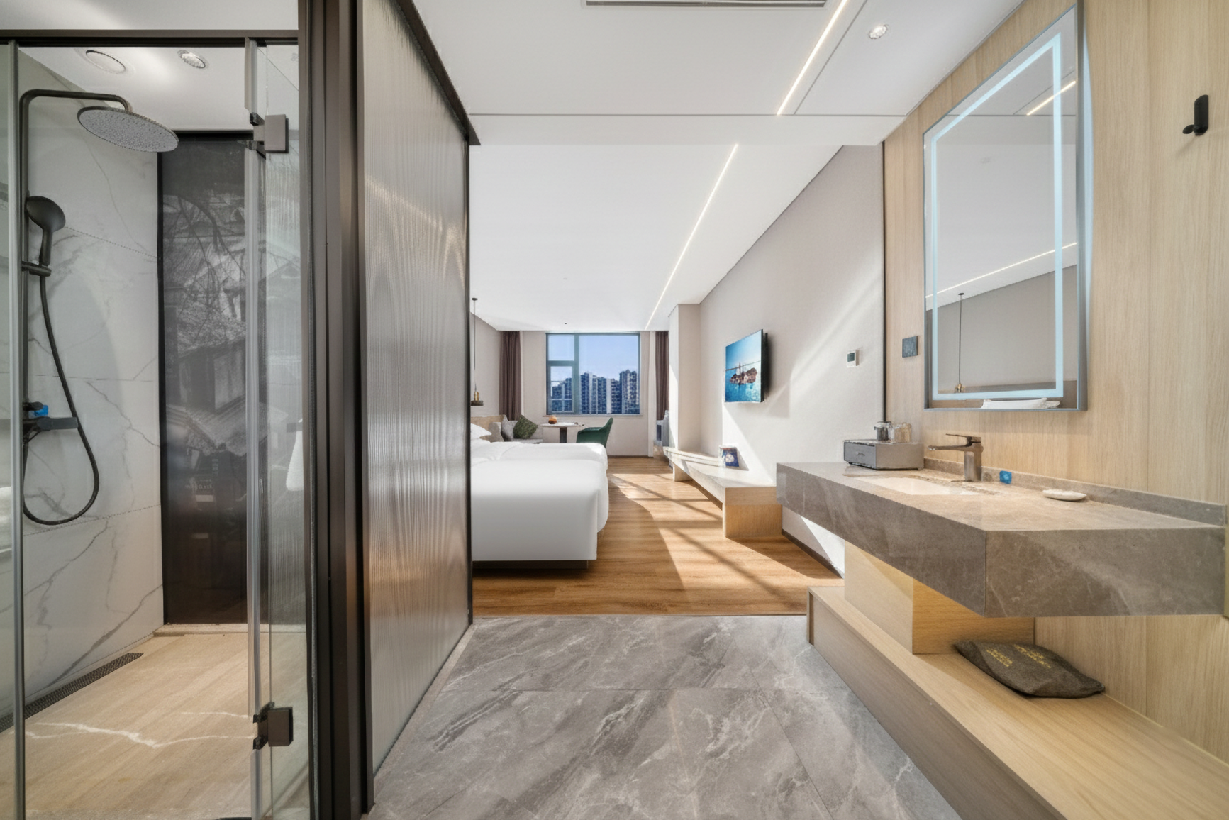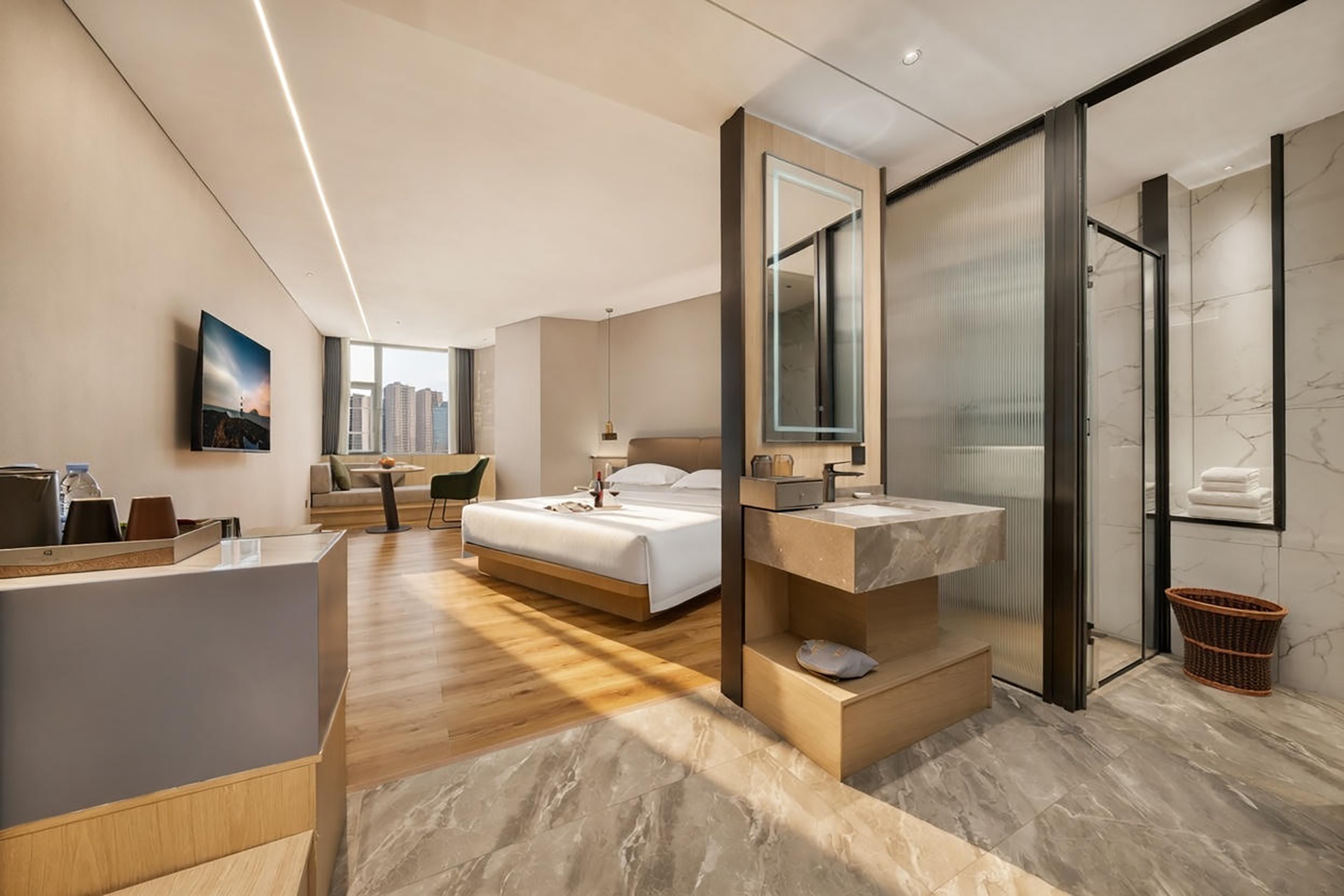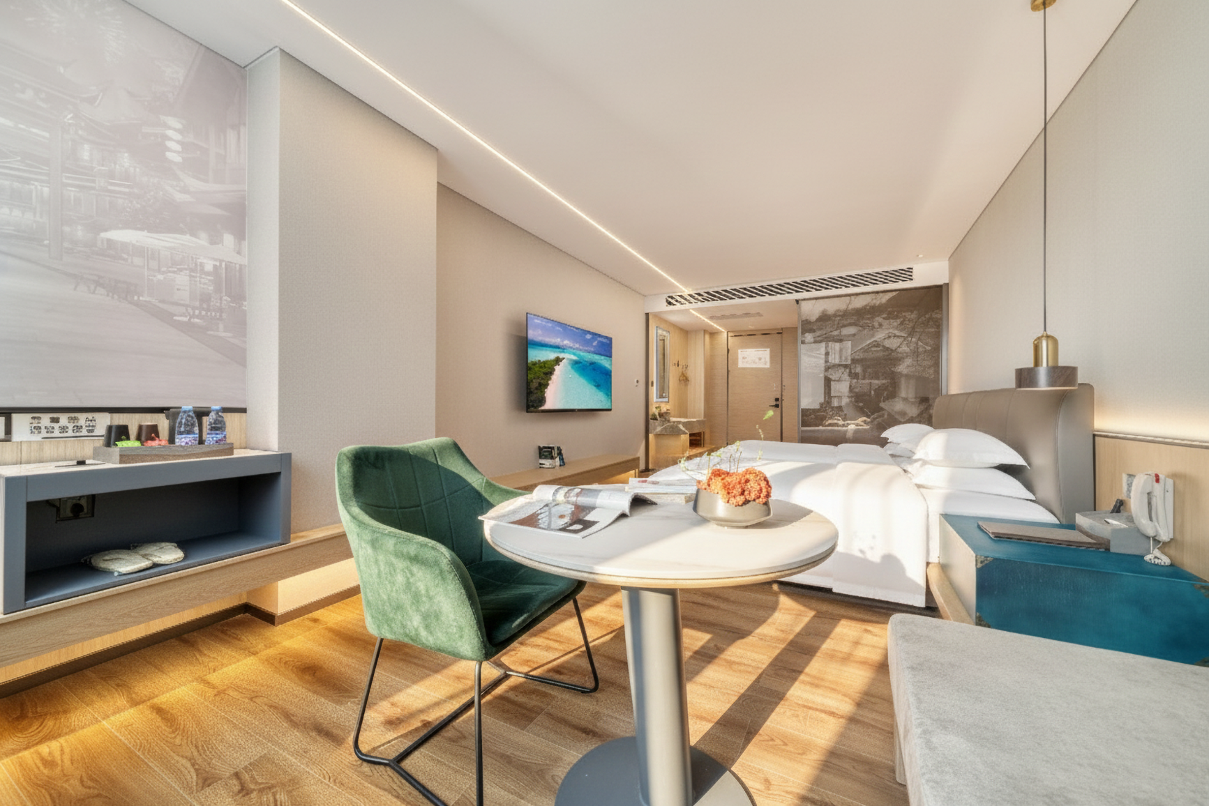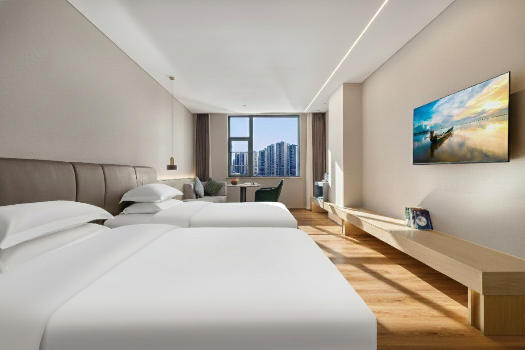 绿树演艺?城景双床房「护脊床垫?强劲制热?3秒出热水」