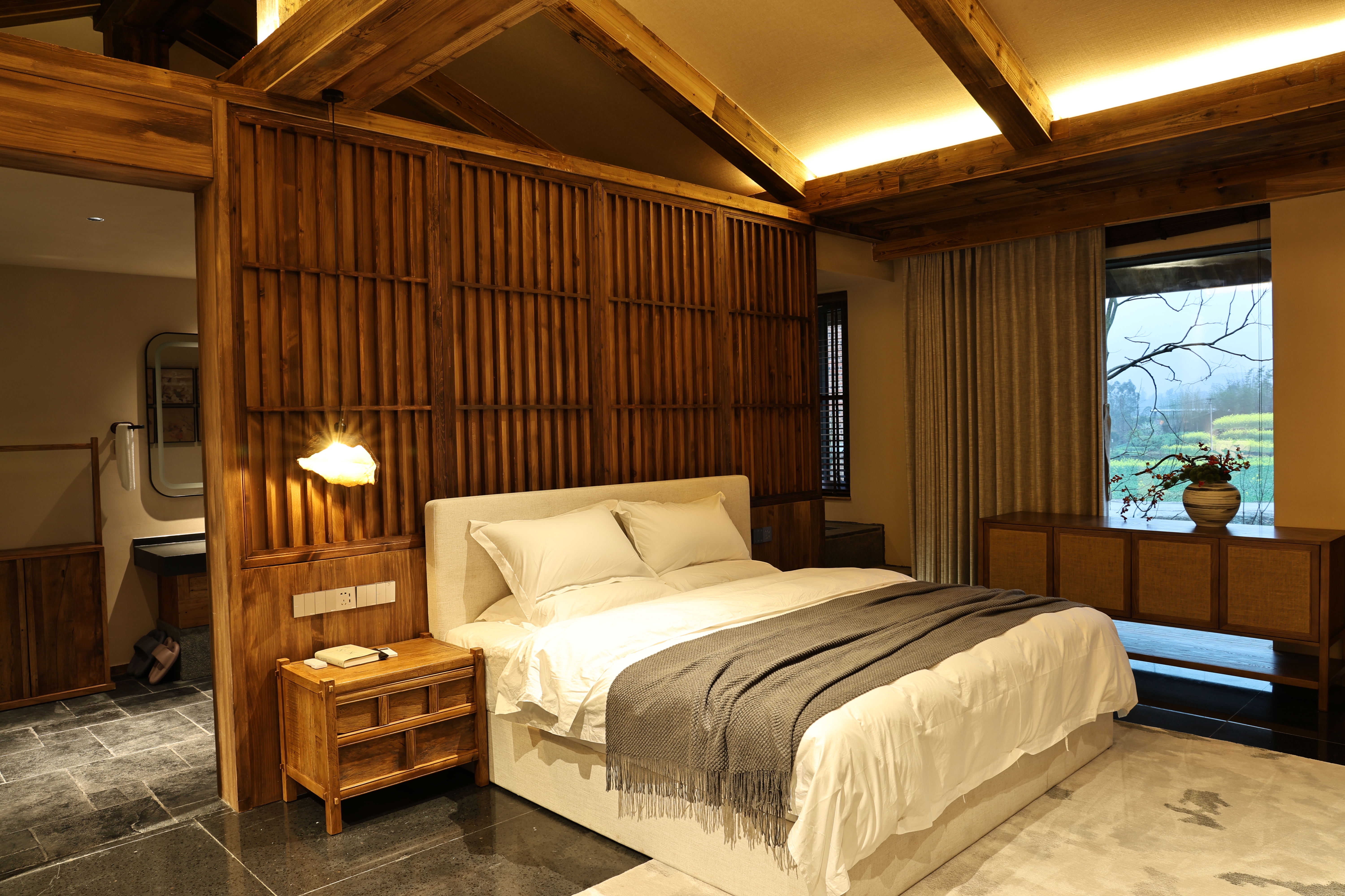 【念千山】中式侘寂露台田園景觀私湯泡池大床房