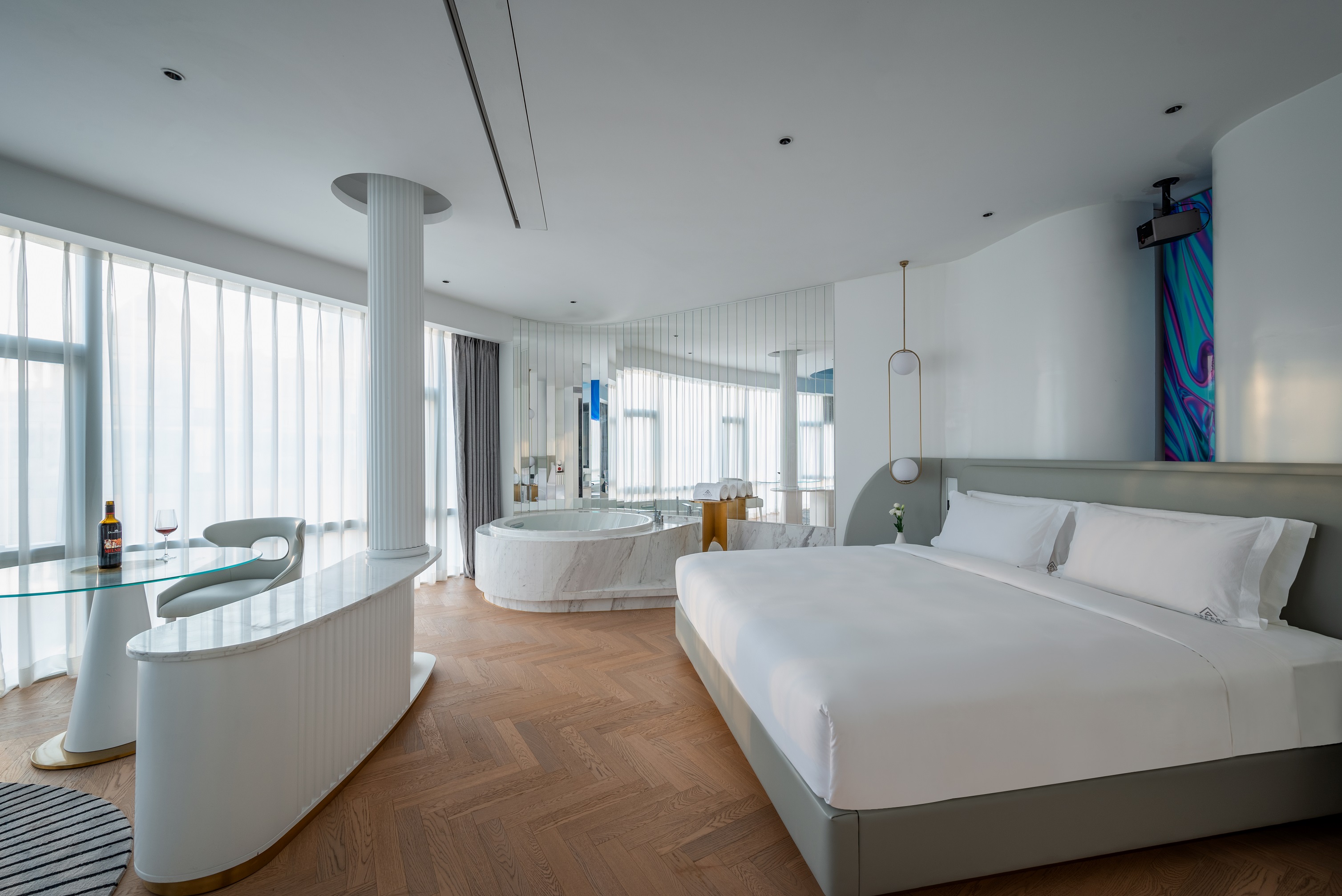 云际汤池大床房[哈曼卡顿音响+戴森吹风机+4K高清巨幕投影]