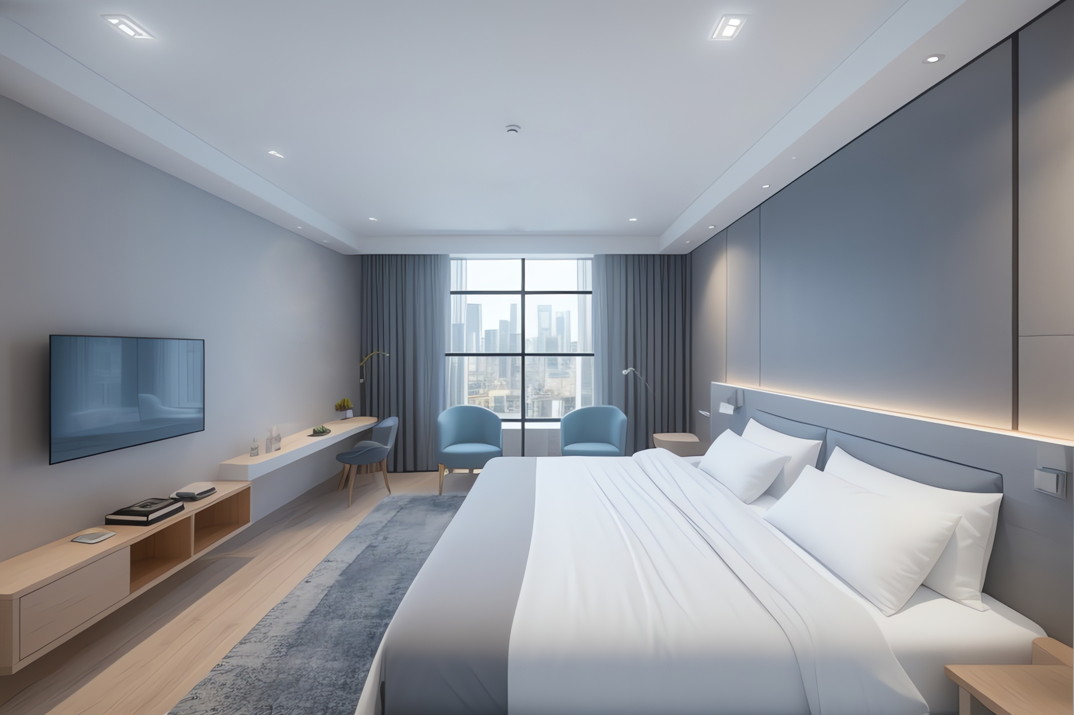 Business City-View Double Bed Room (Buckwheat Pressure Relief Pillow + 42-Inch Lcd Tv)