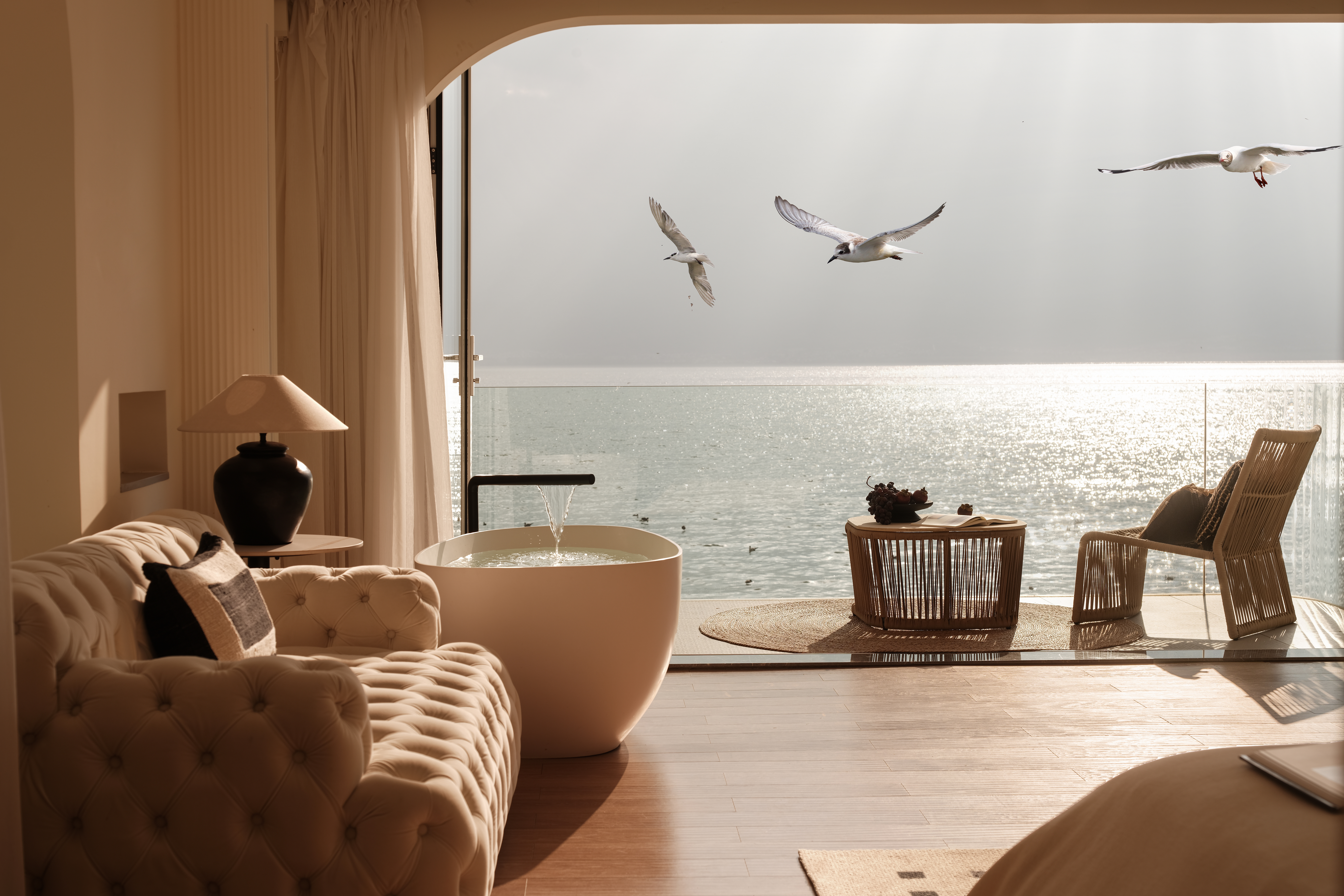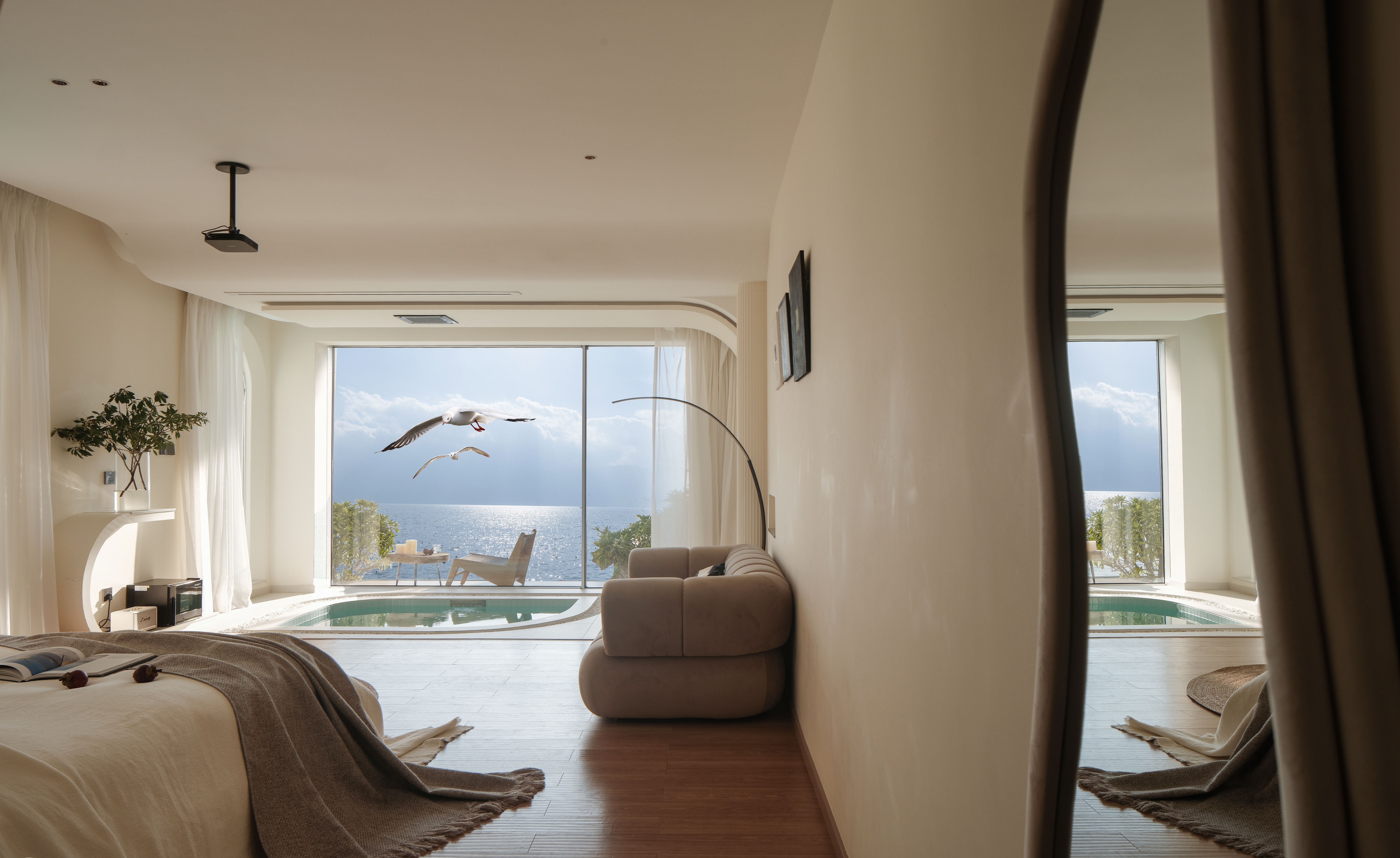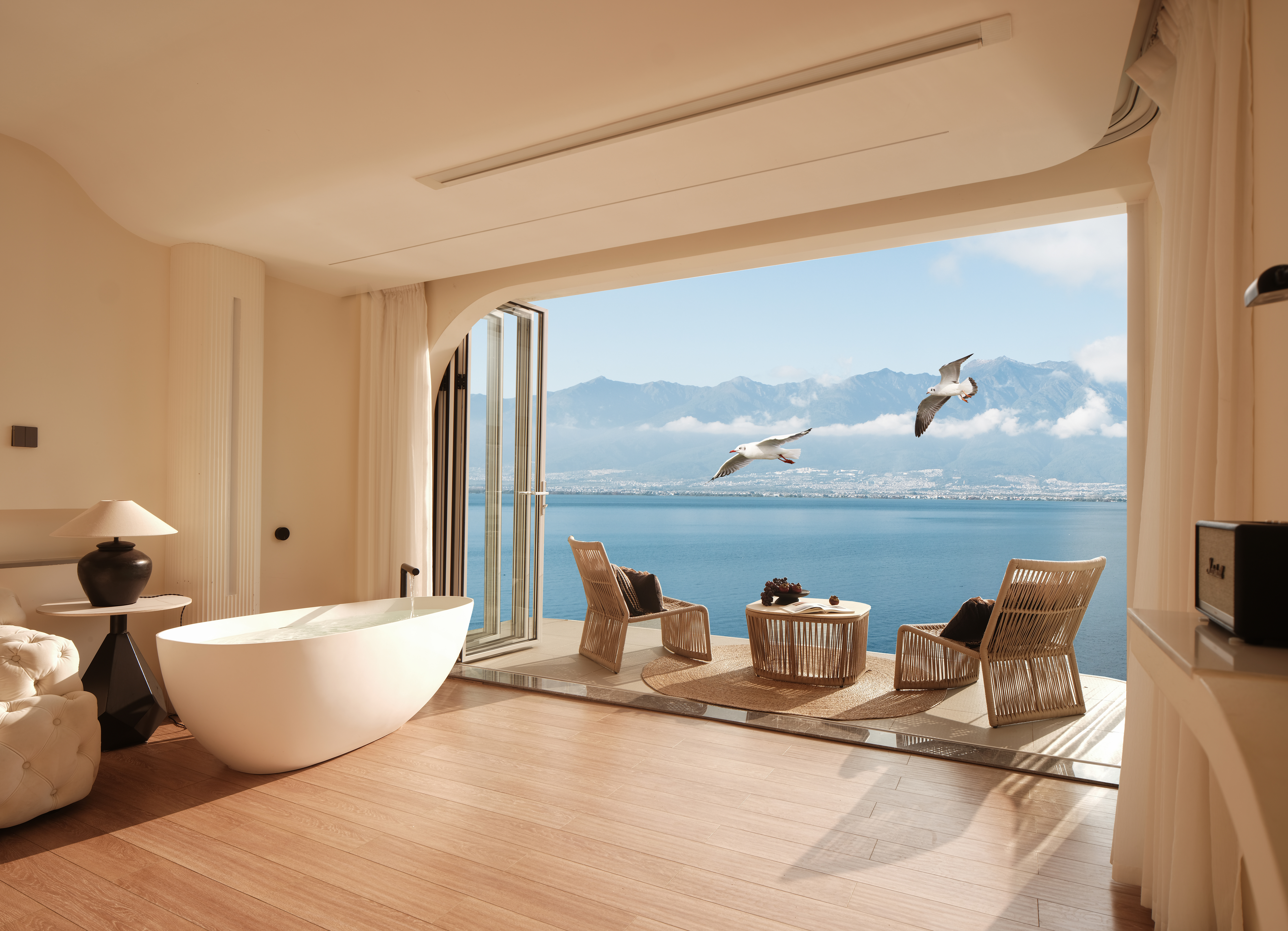 露台·泡池海景大床房+马歇尔蓝牙音箱+戴森吹风机+冰箱+洗衣机