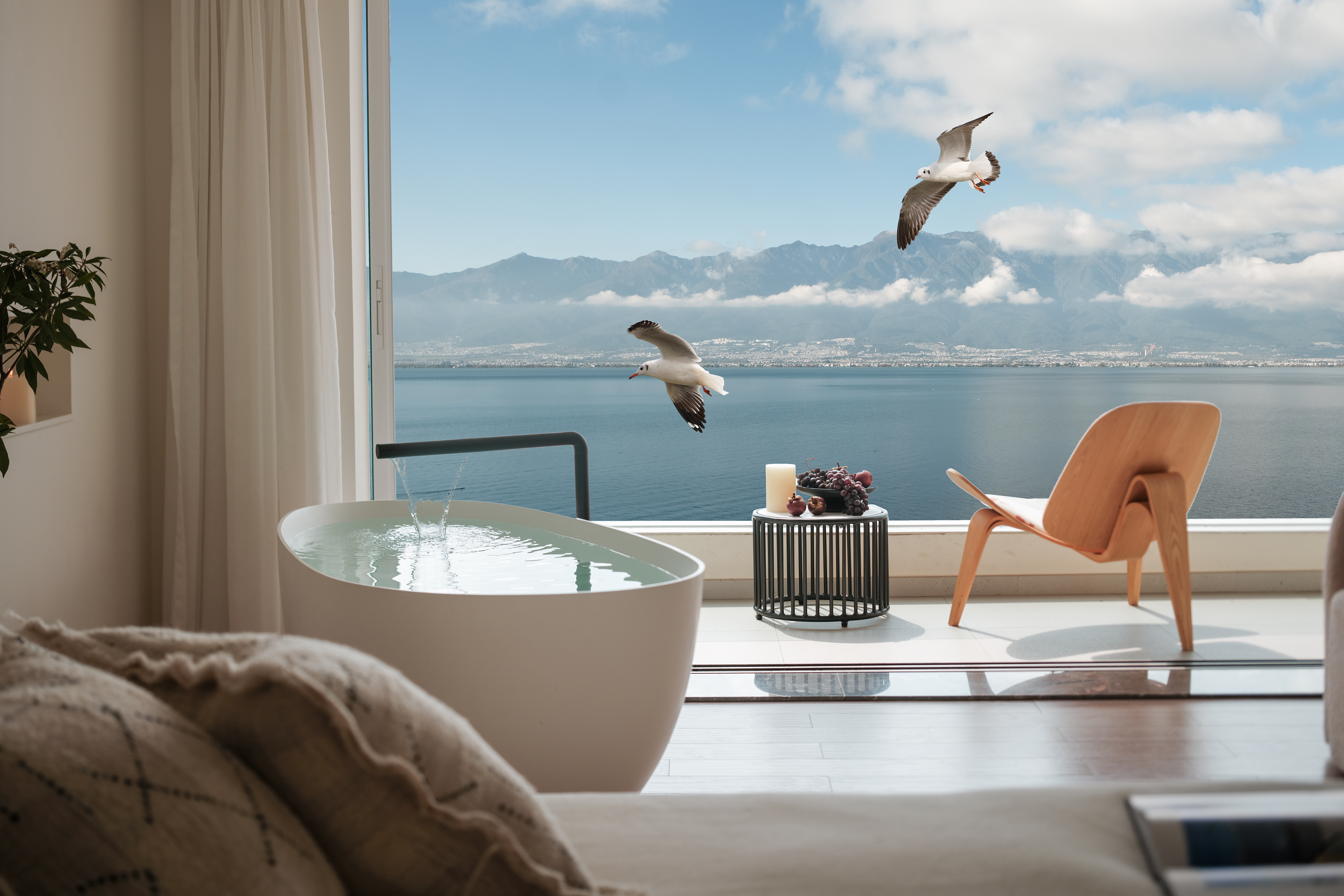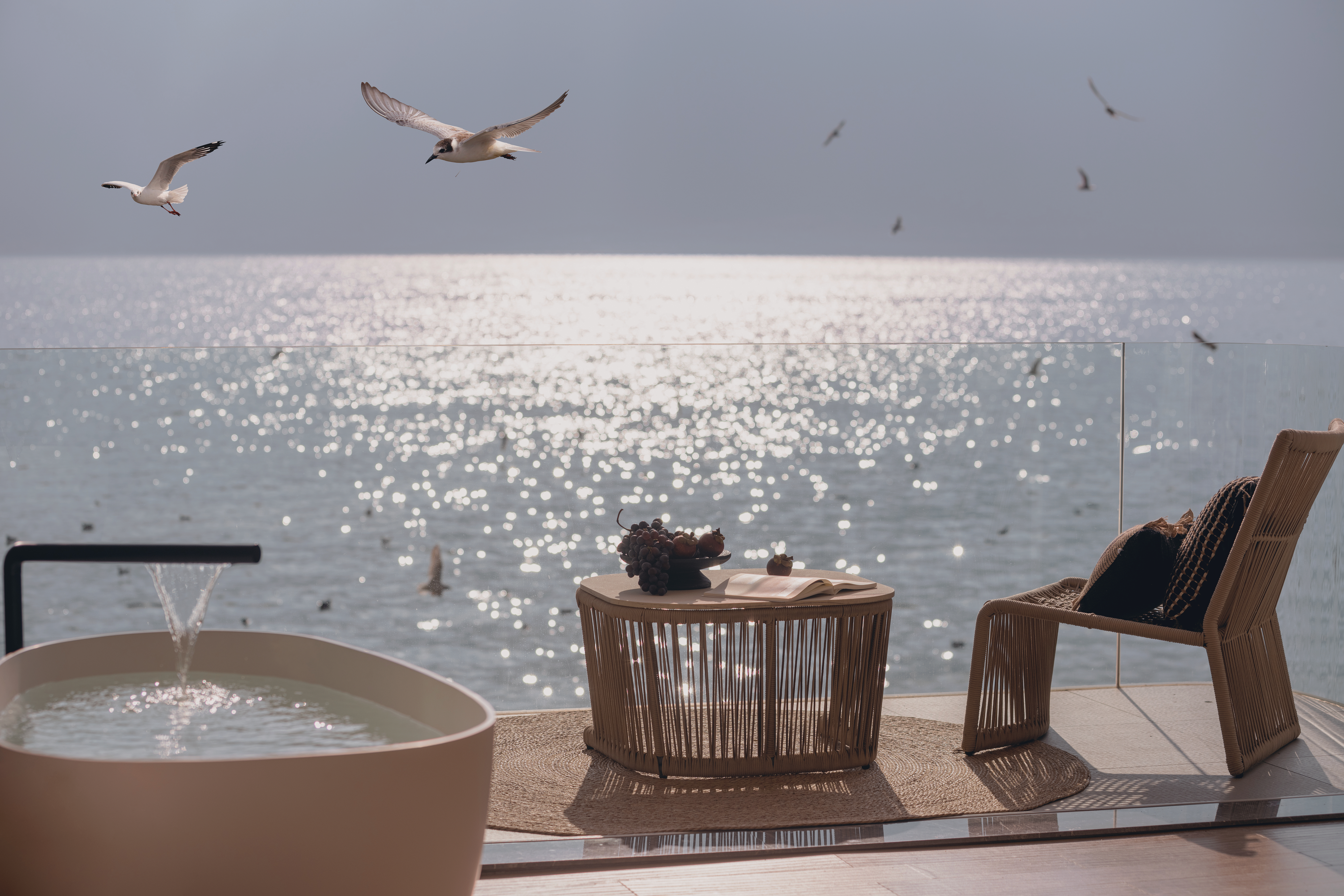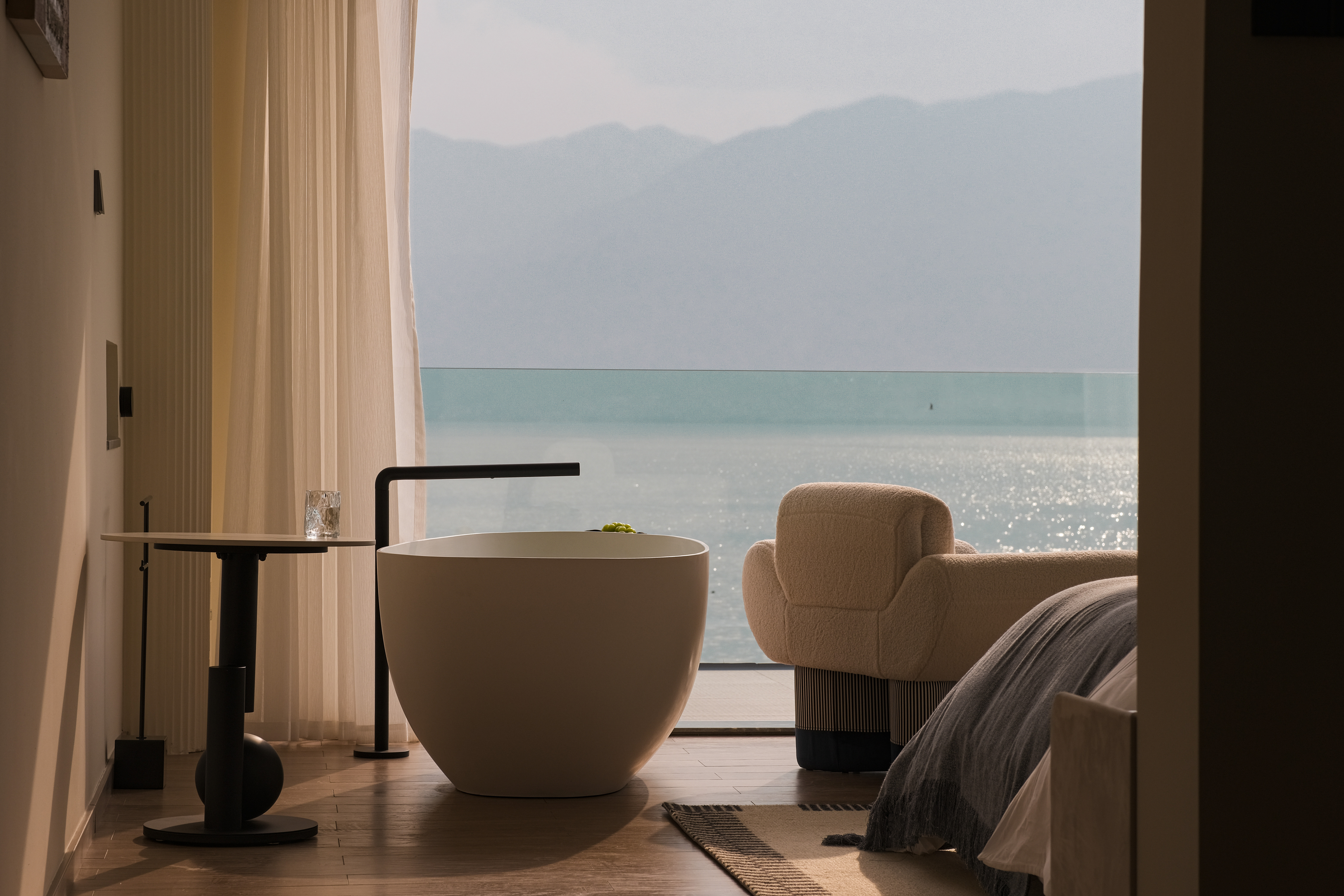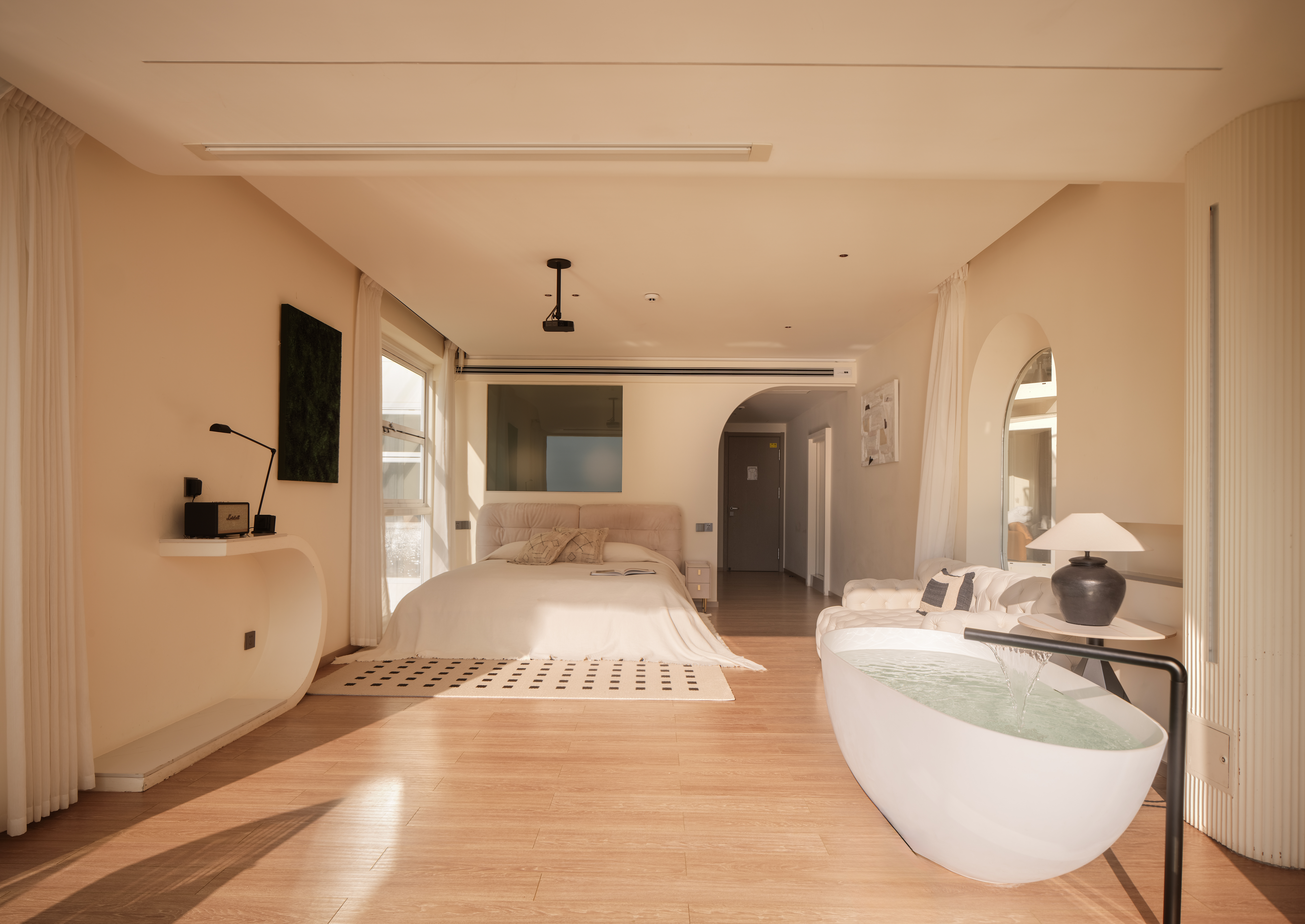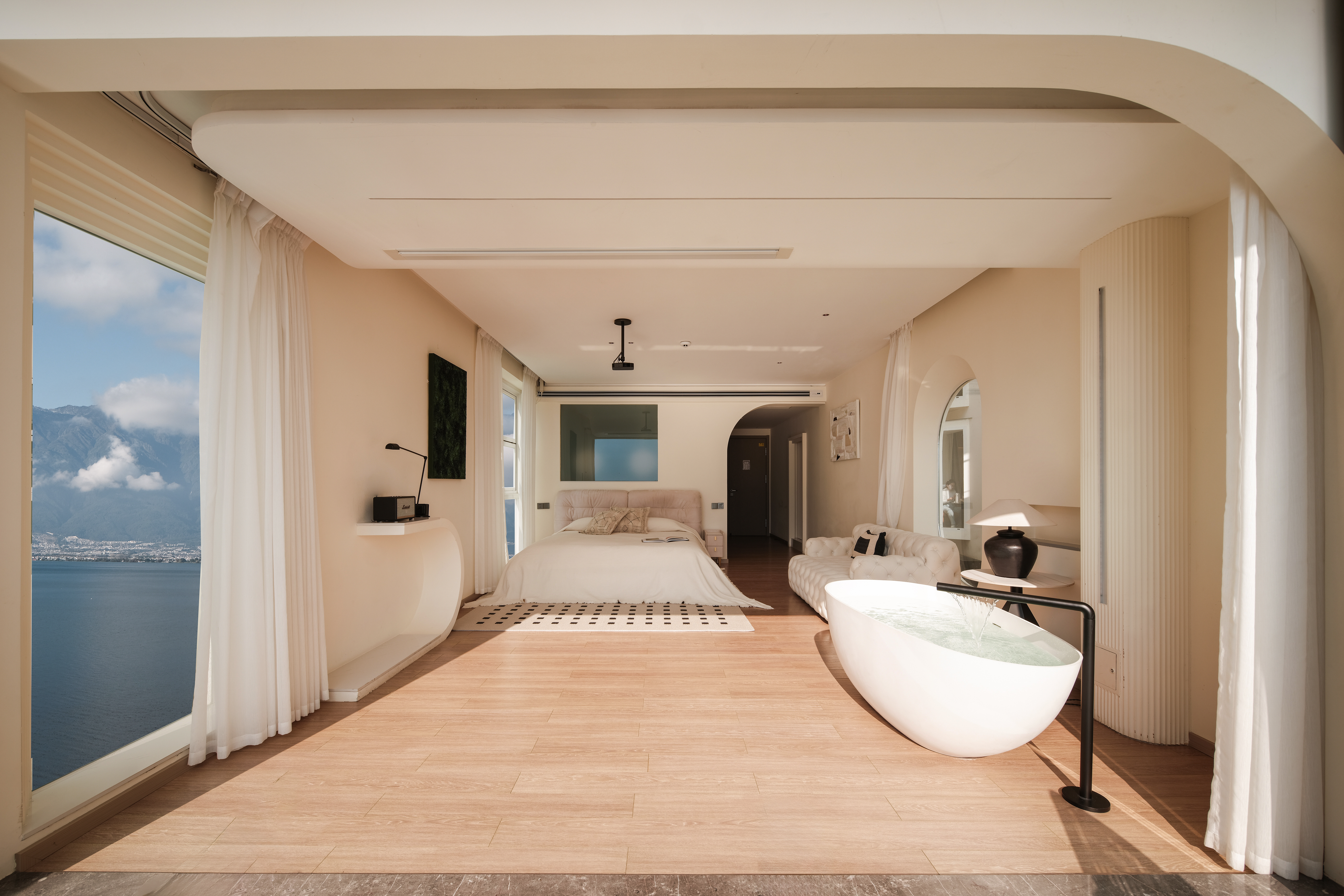 私享露台·浪漫夕阳海景大床房+马歇尔蓝牙音箱+戴森吹风机+冰箱+洗衣机