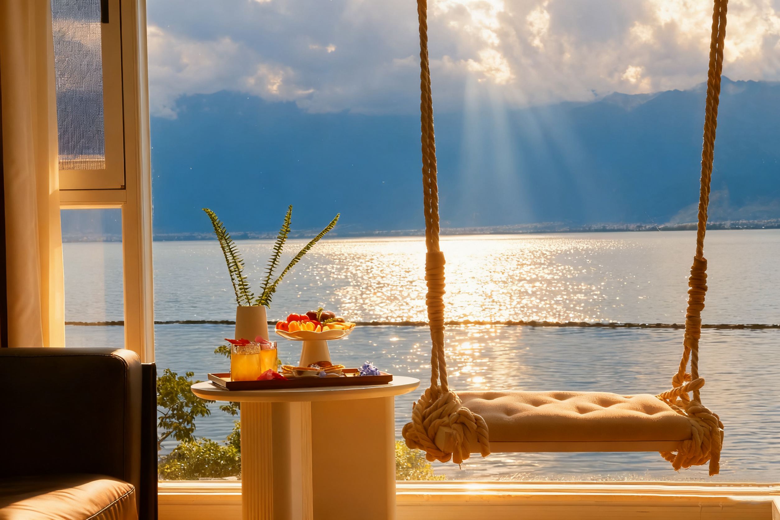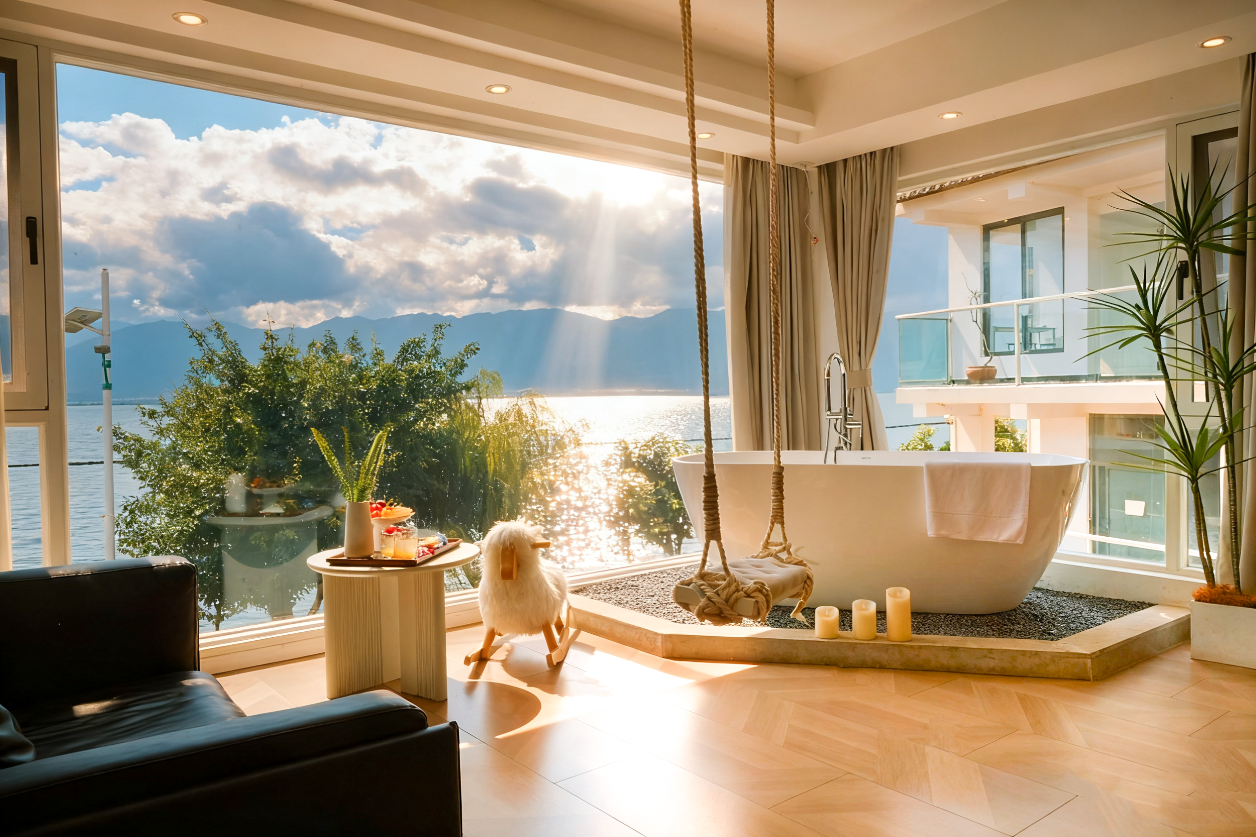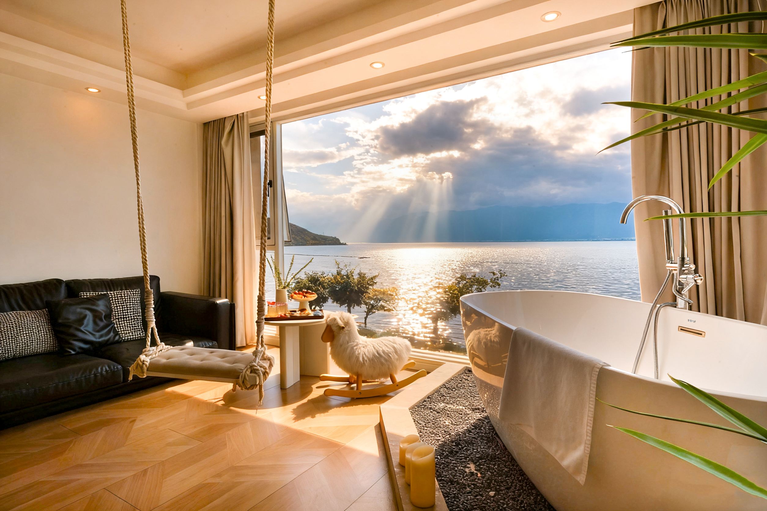 栖海·180度海景秋千浴缸家庭房【180°直面海景-落日余晖海景-私享洱海景-乾湿分离】