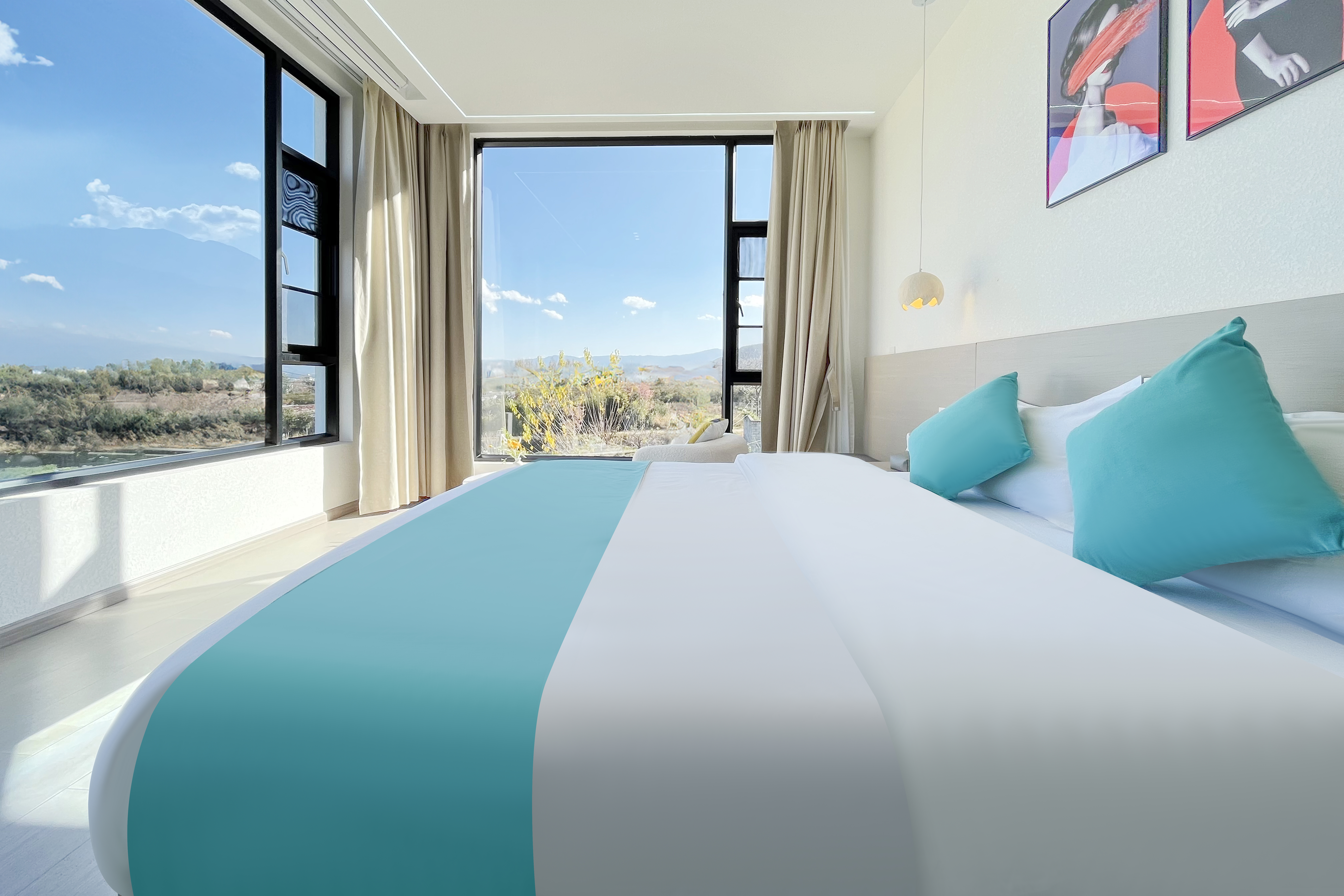 棲海·日出田園景觀投影大床房201(田園山景+中央空調+智能馬桶)