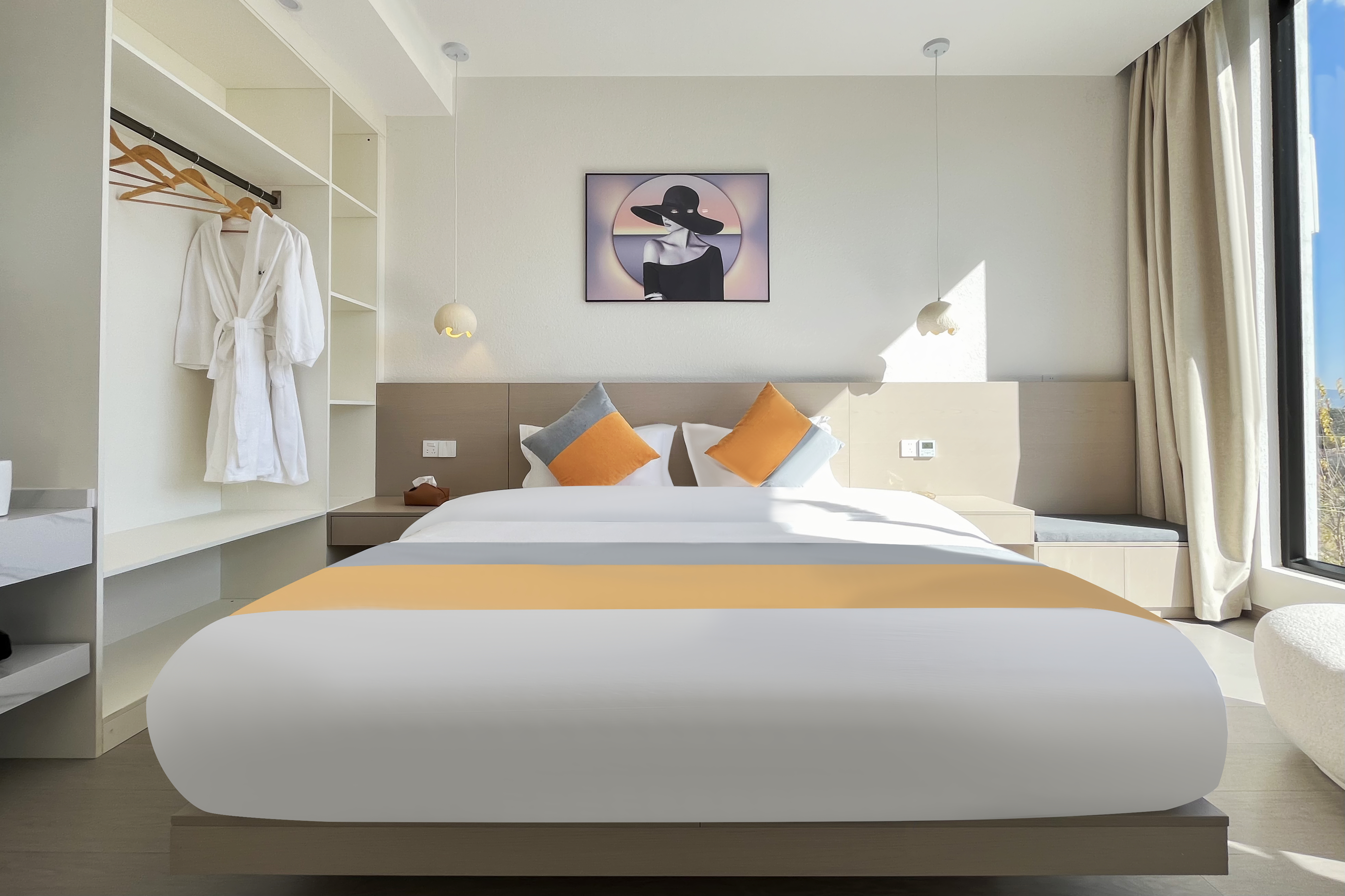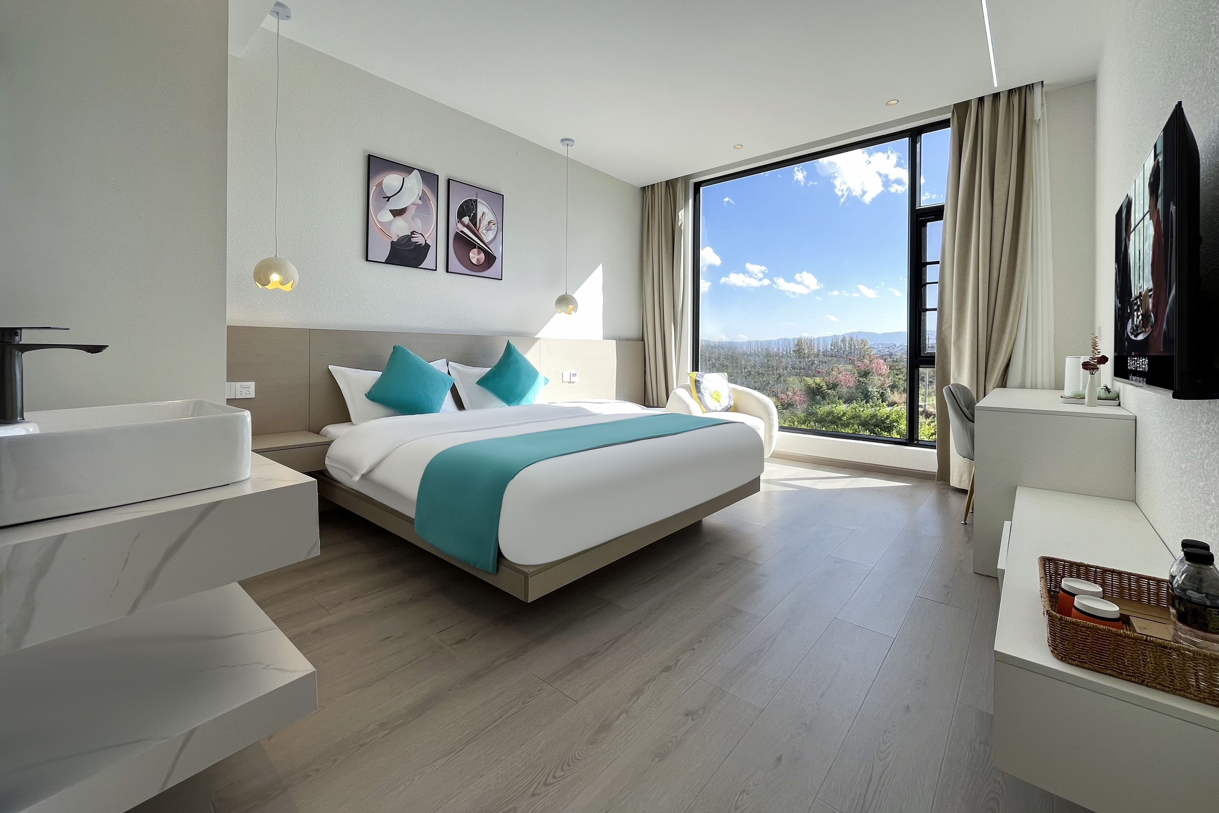 聽風·田園景温馨私享大床房204(中央空調+智能馬桶+田園山景)