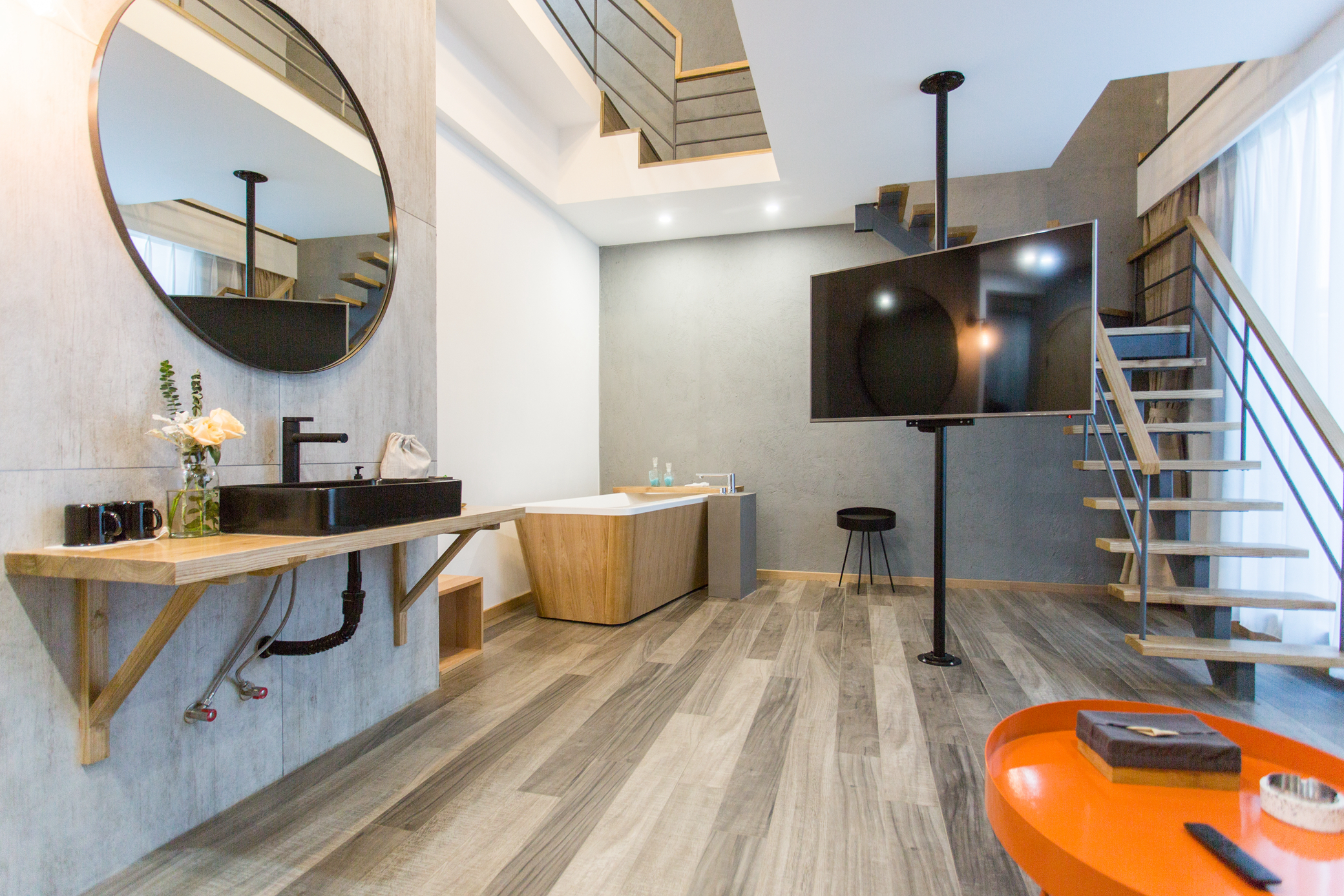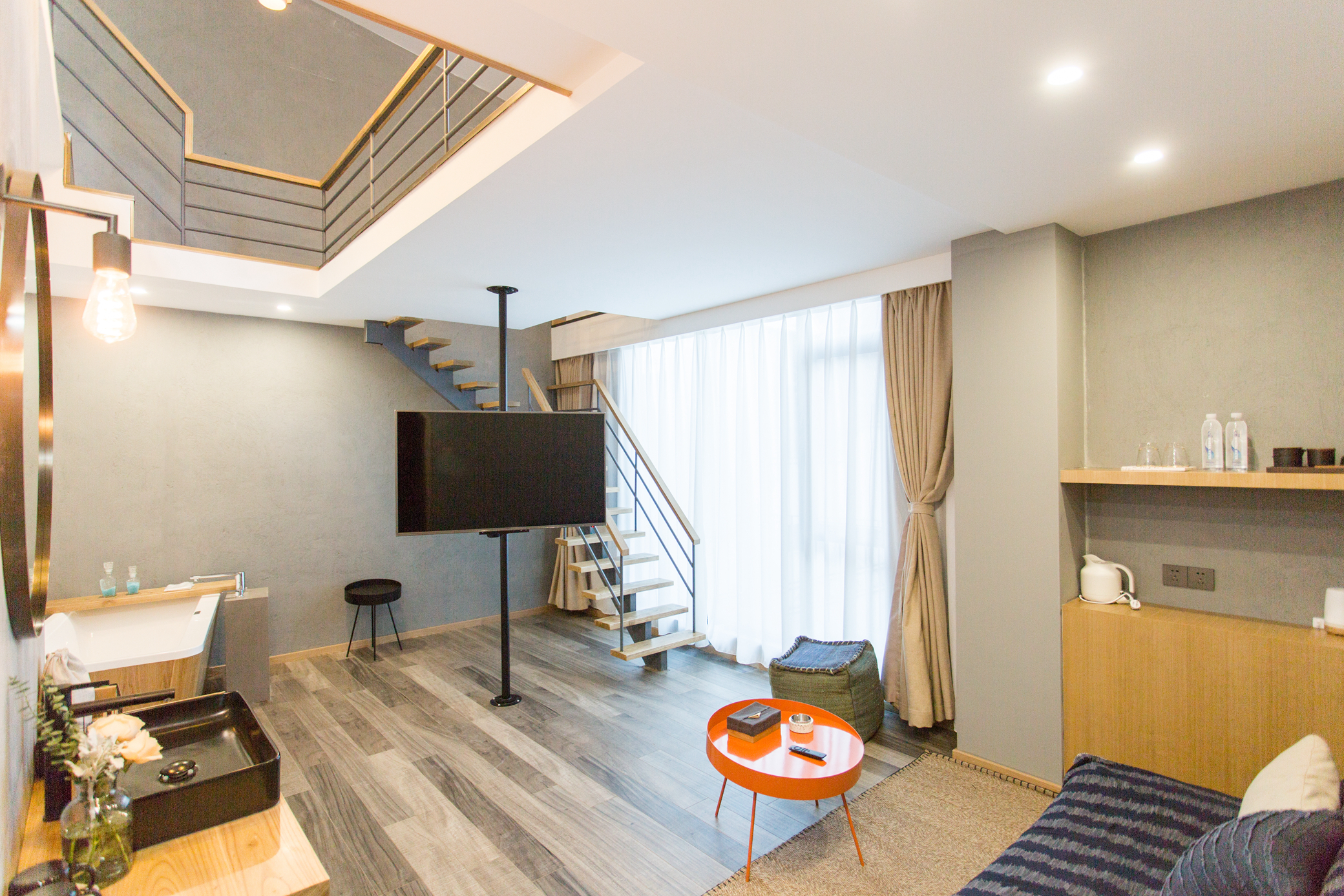 一號院光茶·複式浴缸大床房(TOTO智能衞浴+加濕器+負離子吹風機)
