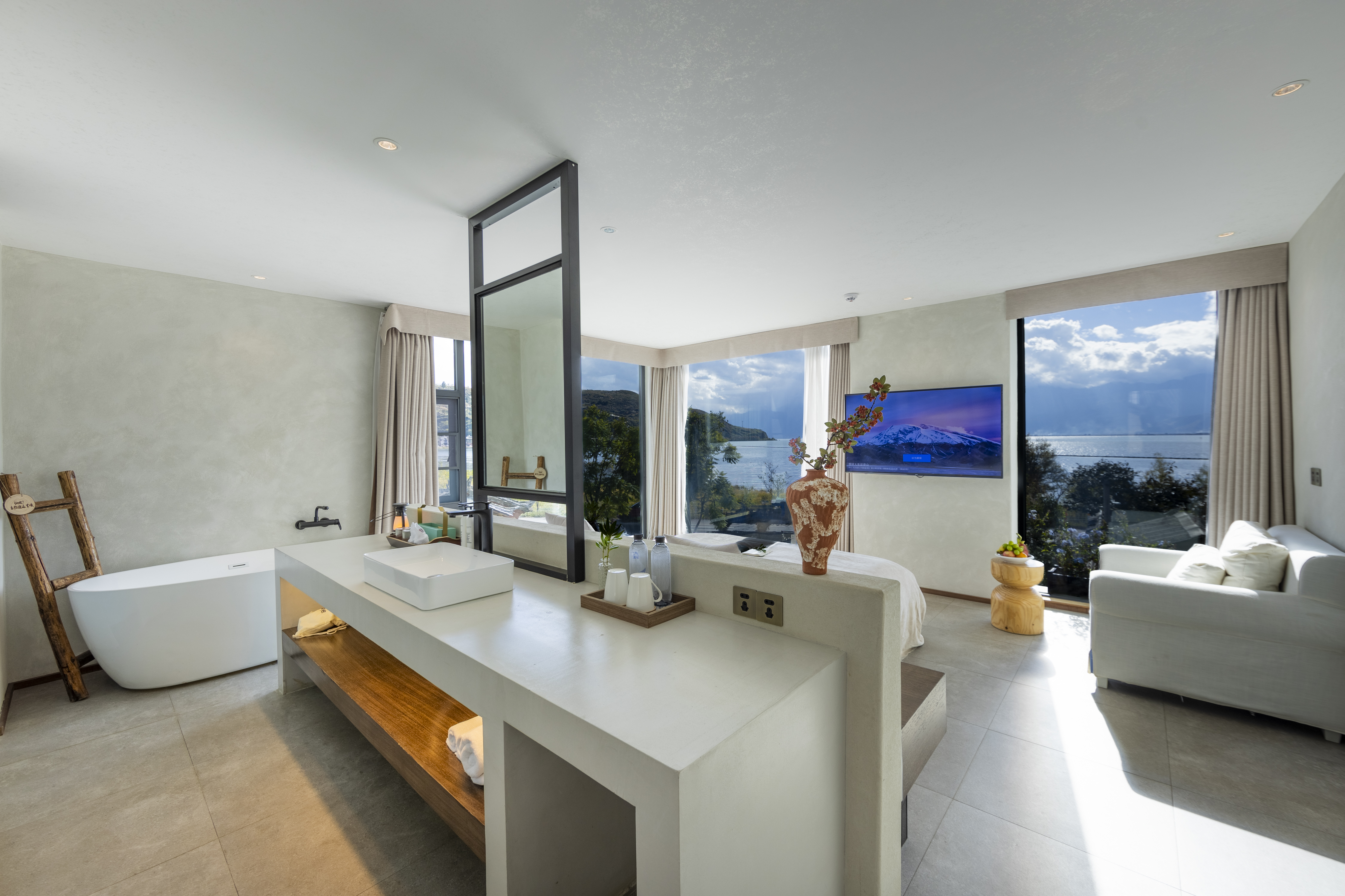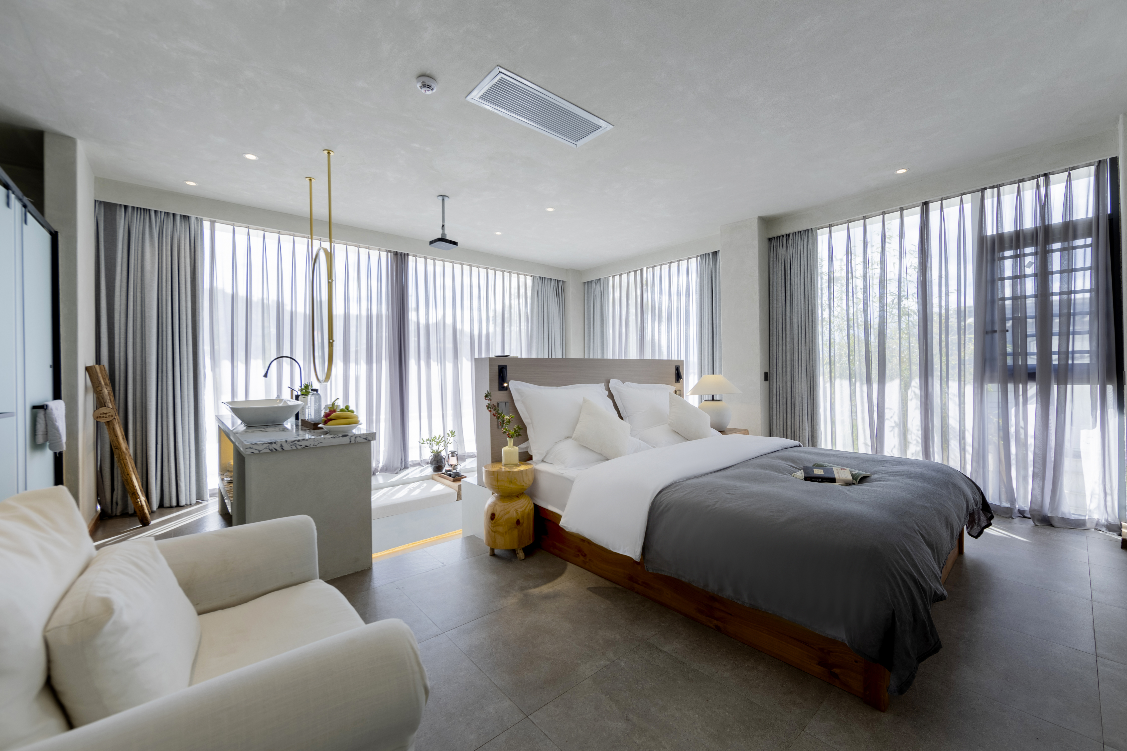 笙白·园景阳光大床房丨下沉式客厅+中央空调+投影仪