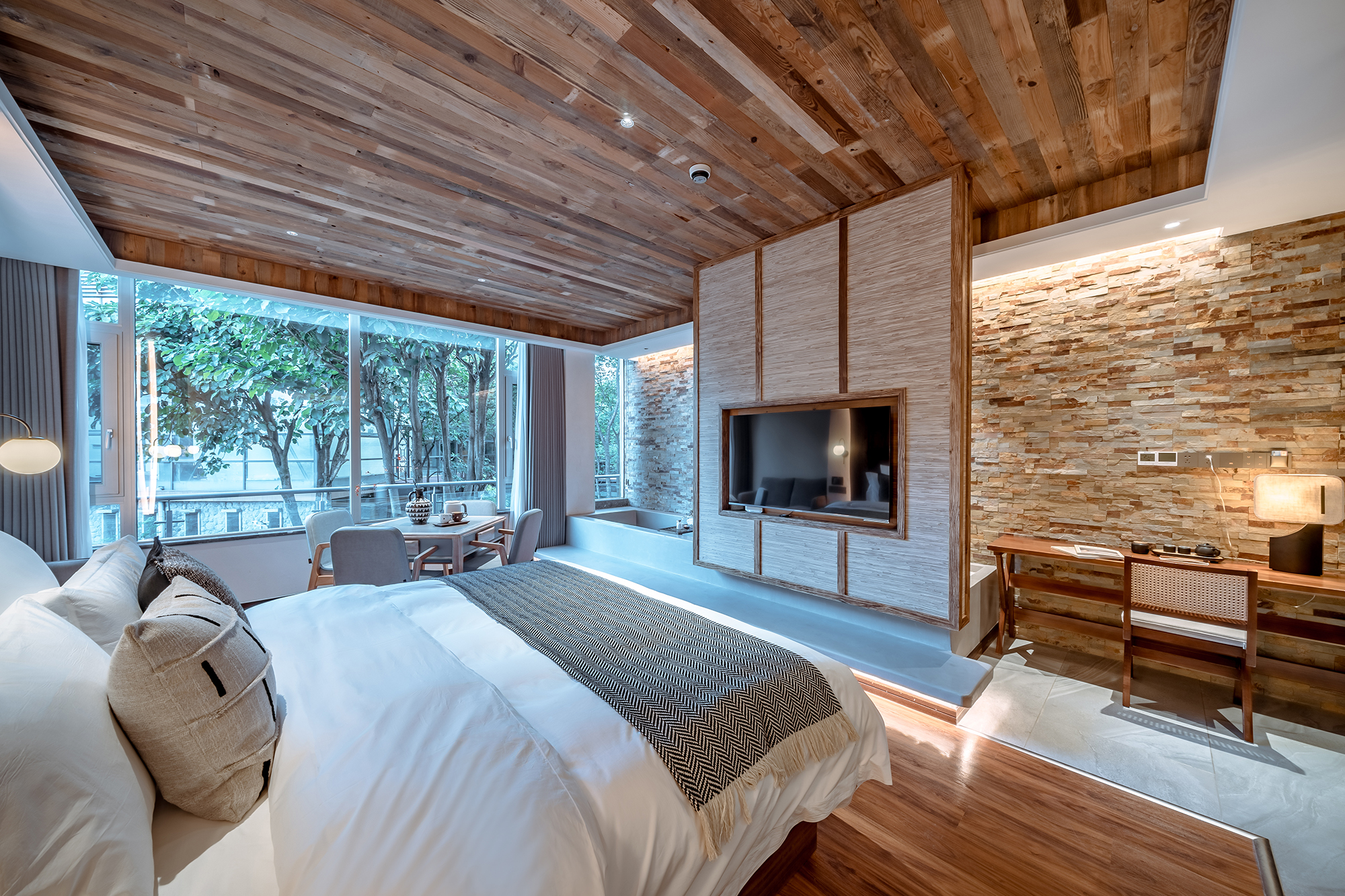 閑田·露台山景雙床房(智能+中央空調+地暖+山景+私湯泡池)