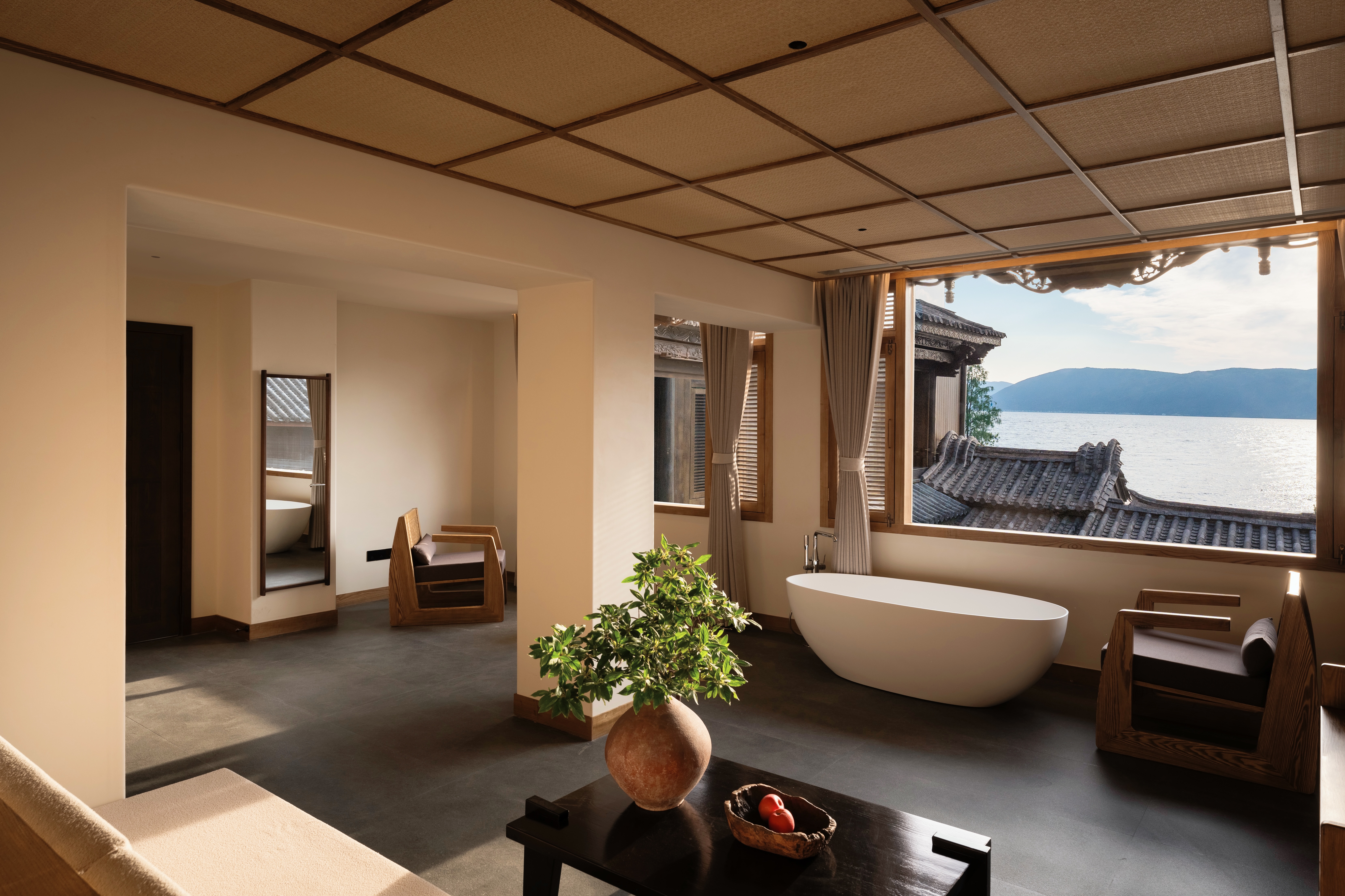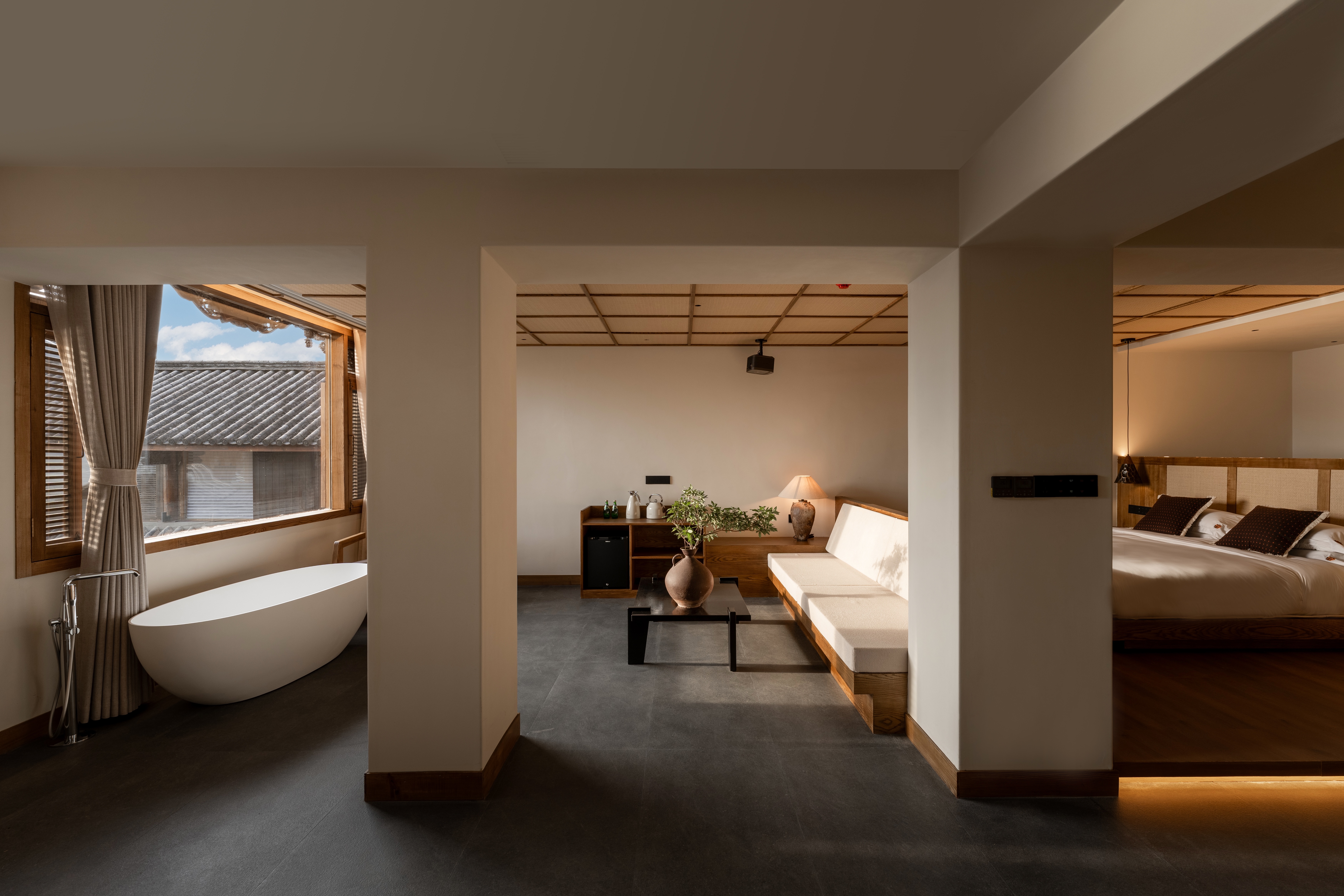 庭院側海景大床房(深泡浴缸+vispring床墊+戴森吹風機+極米影院式4k專用投影+漢斯格雅杜拉維特衞浴)