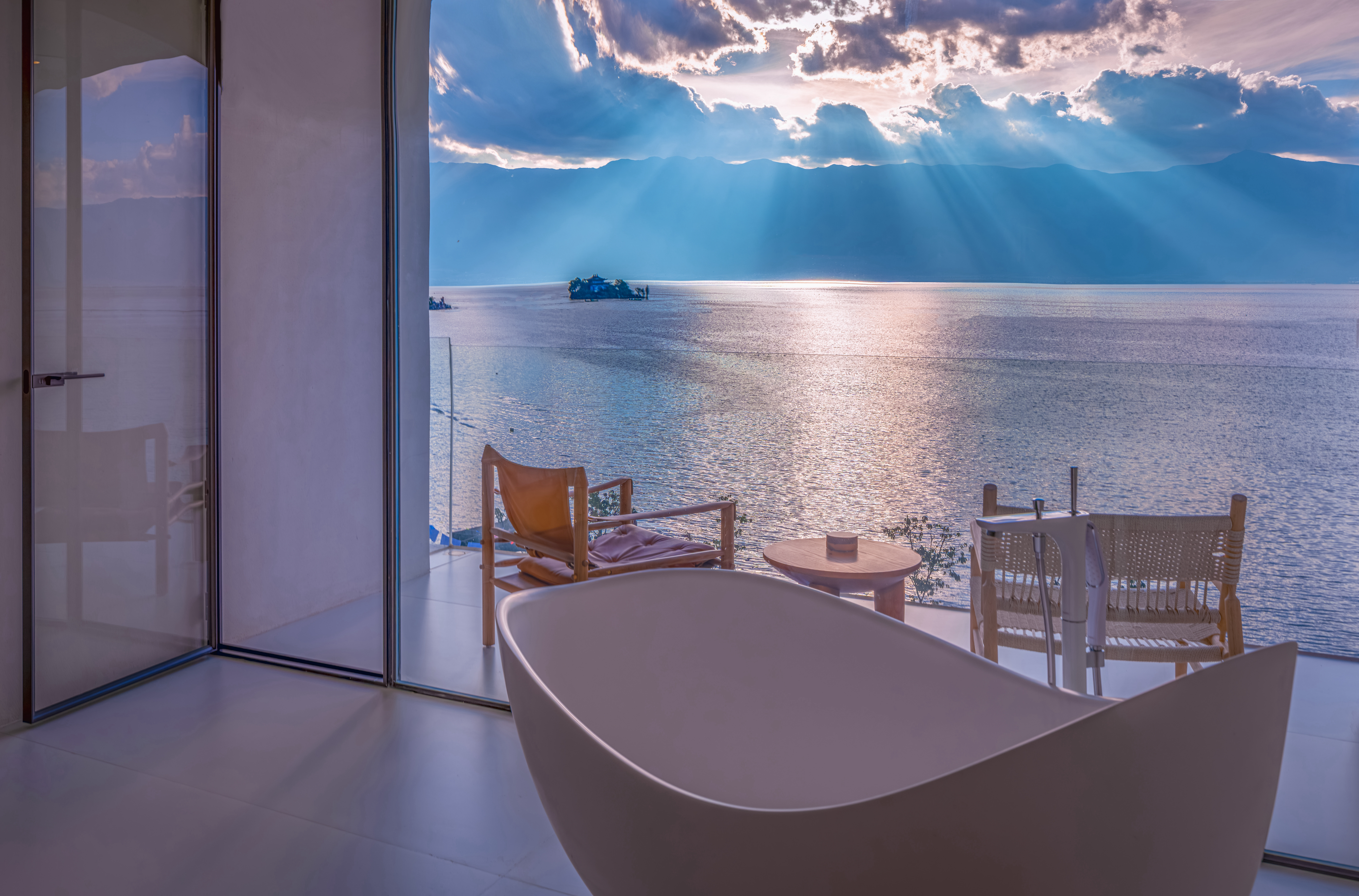 藍野·180°全海景【大床房】華為全屋智能+100寸超清投影+漢斯格雅恆温衞浴+杜拉維特智能馬桶+大金中央空調+網紅浴缸+全羽絨被褥+舒達床墊