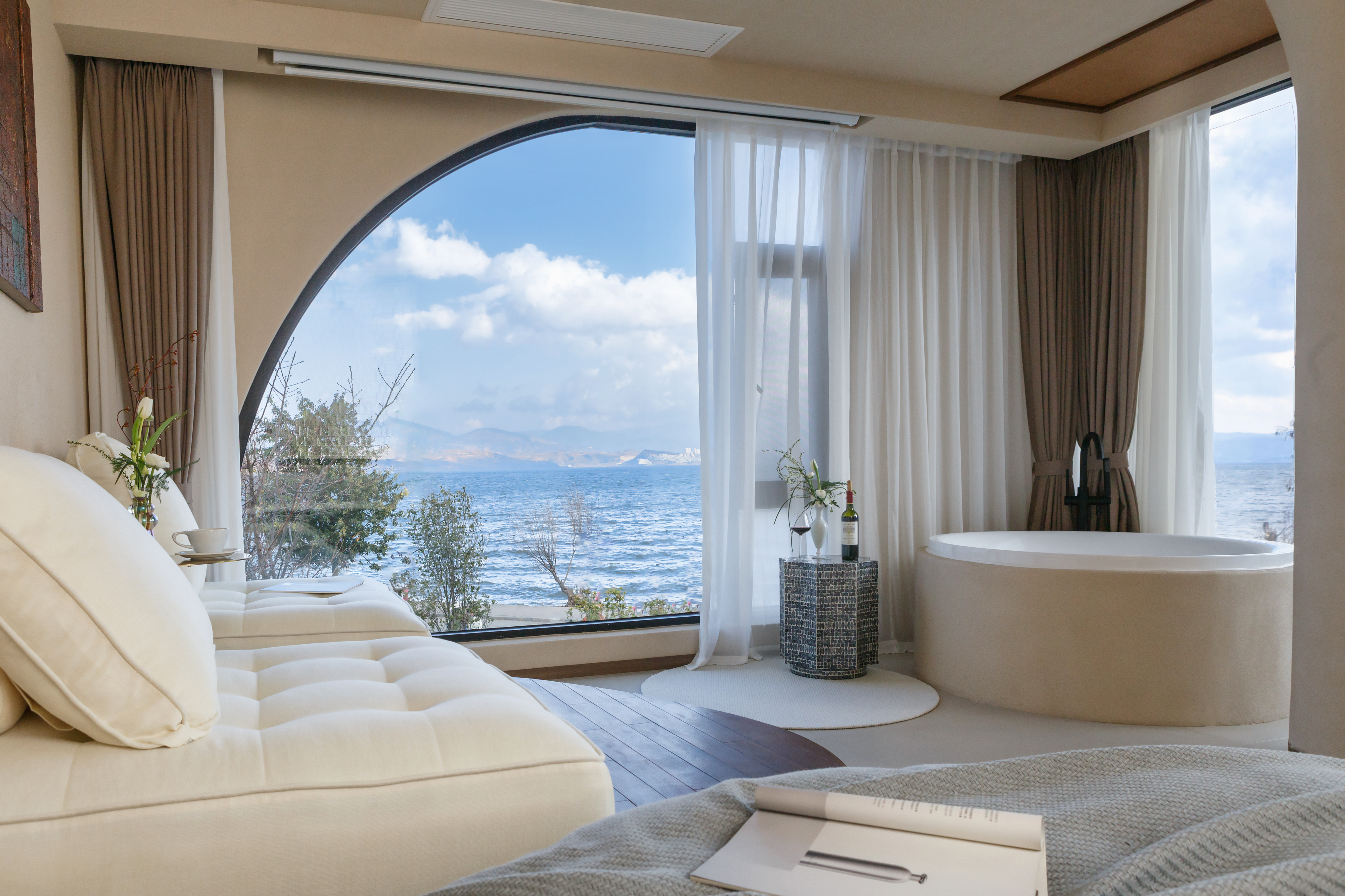 白茸—270°日出海景大床房·巨幕投影·海景浴缸·慕思乳胶床垫·马歇尔音响·戴森吹风机·鹅绒被·杜拉维特洗浴·帕尔玛之水洗护套装