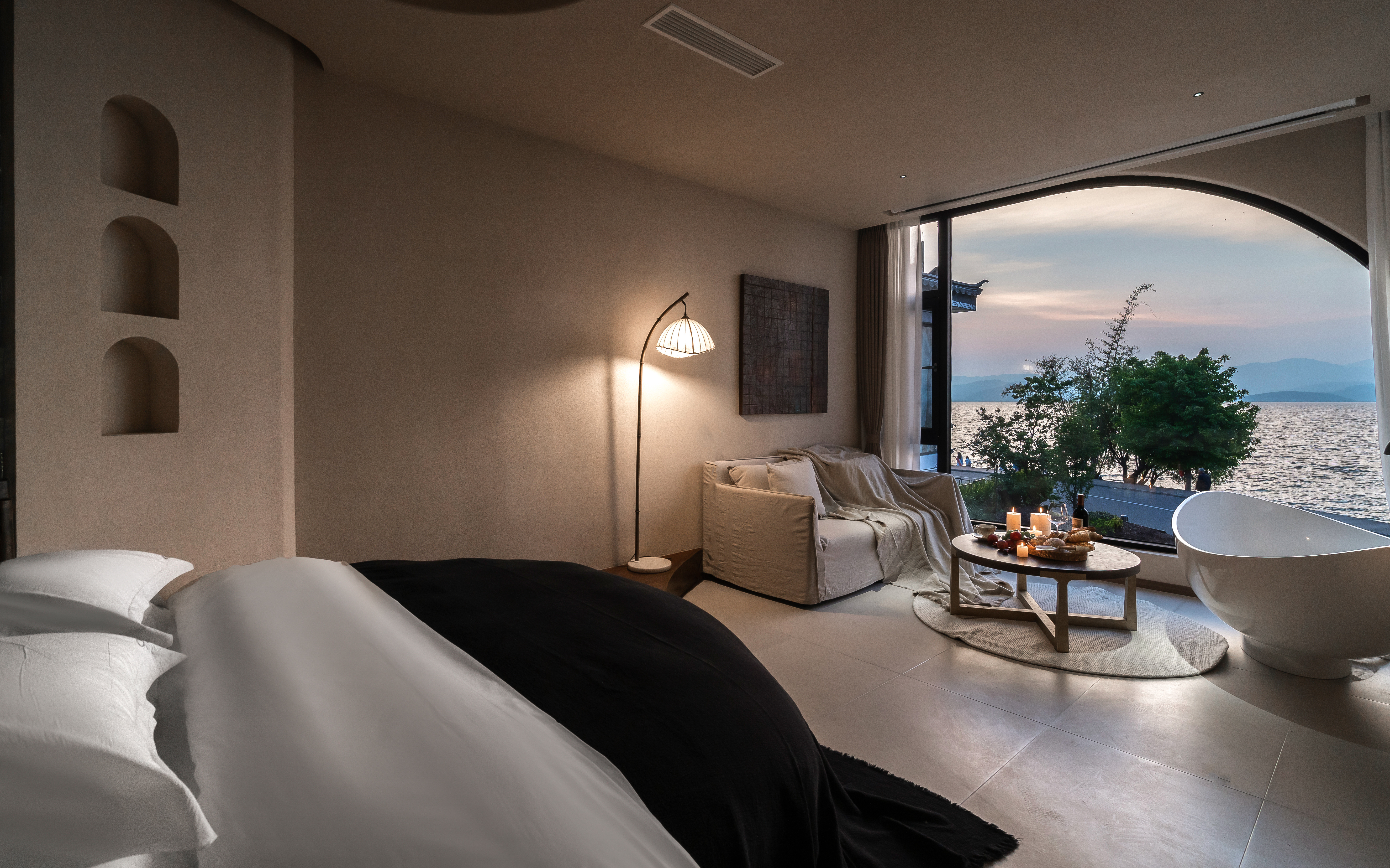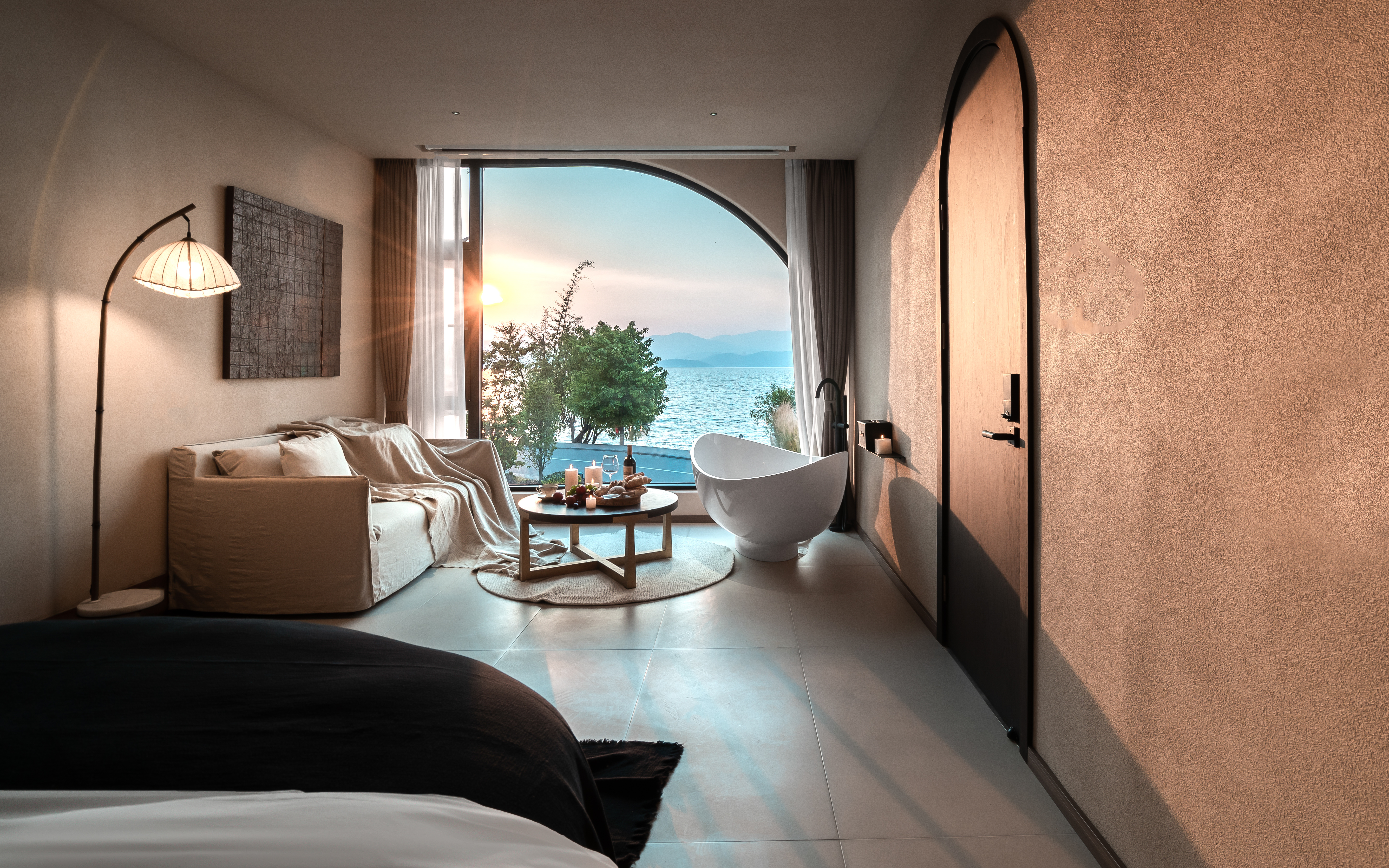 江篱—180°日出海景大床房·极米巨幕投影·马歇尔音响·海景浴缸·慕思乳胶床垫·戴森吹风机·杜拉维特淋浴·帕尔玛之水洗护套装·智能马桶