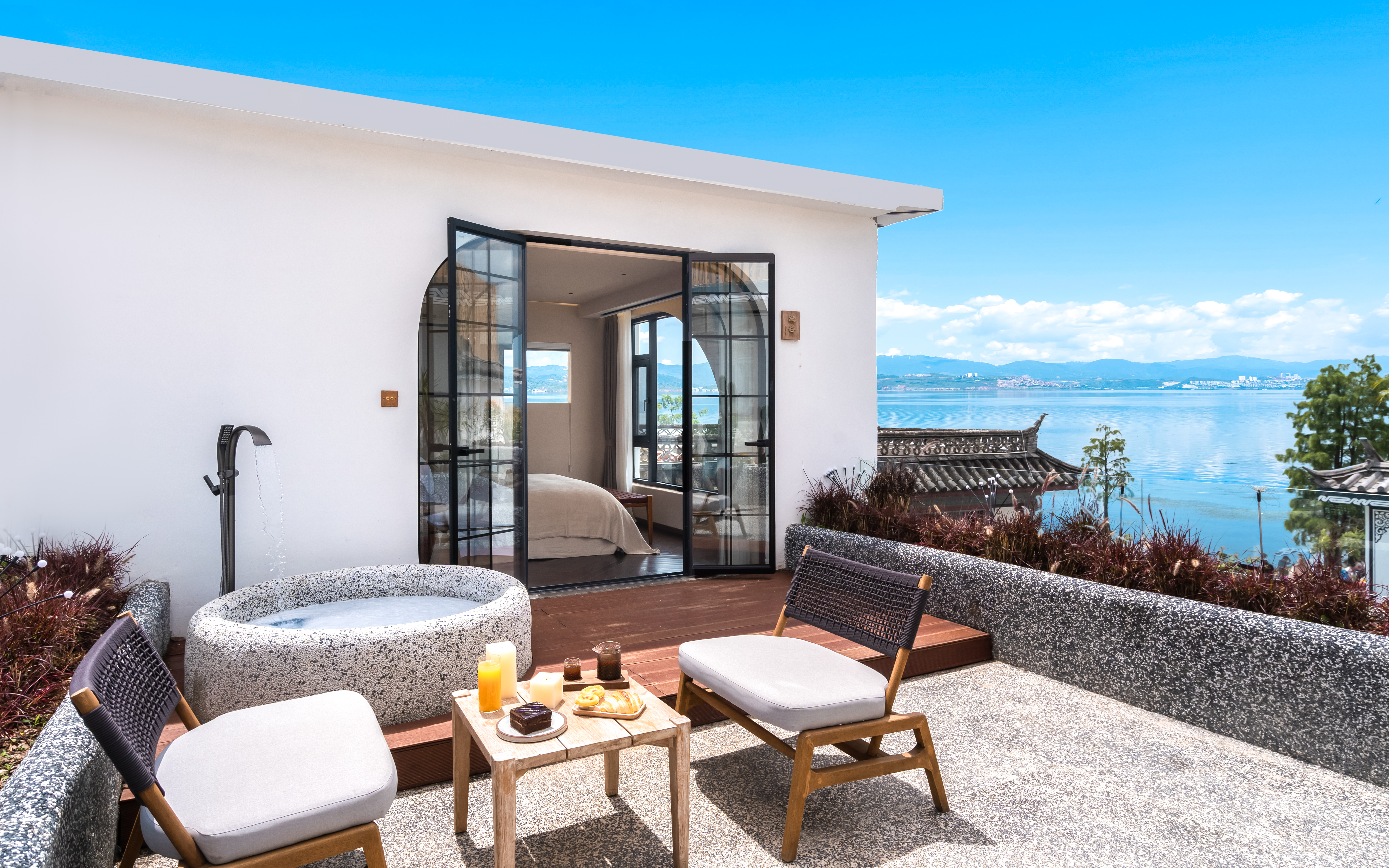 空谷—花园露台海景大床房 .巨幕投影.马歇尔音响 .慕思乳胶床垫.戴森吹风机·杜拉维特洗浴.帕尔玛之水洗护套装.智能马桶