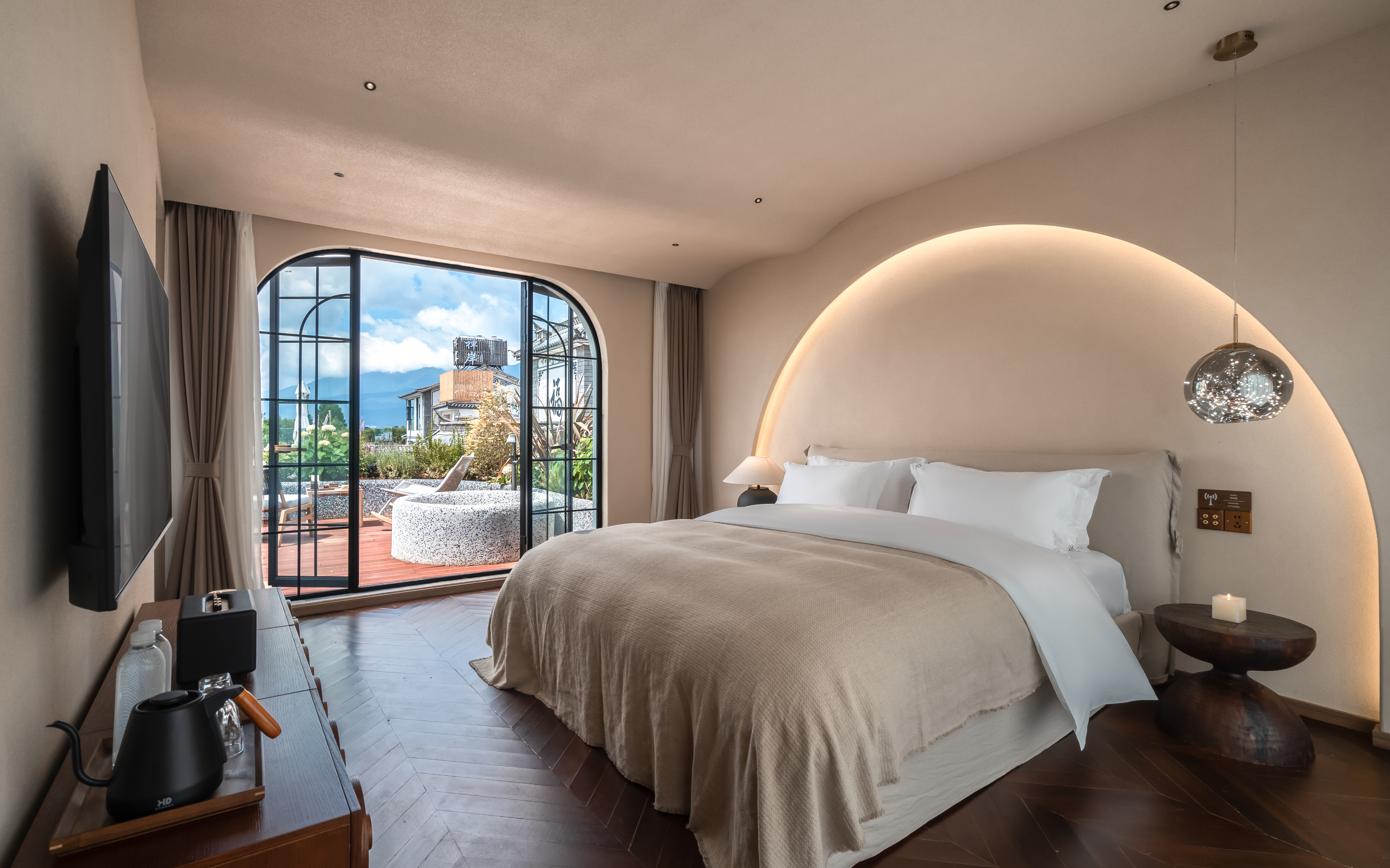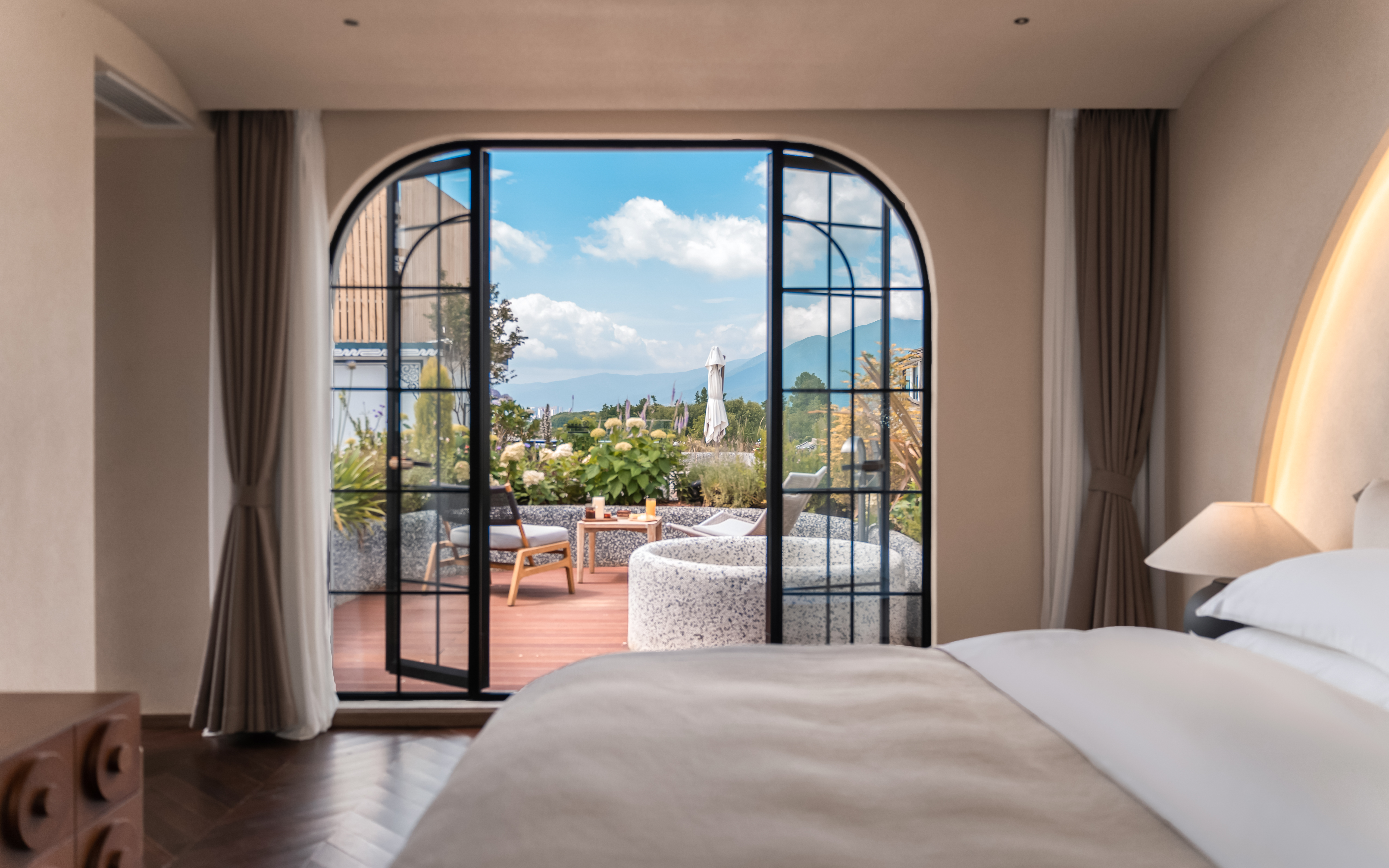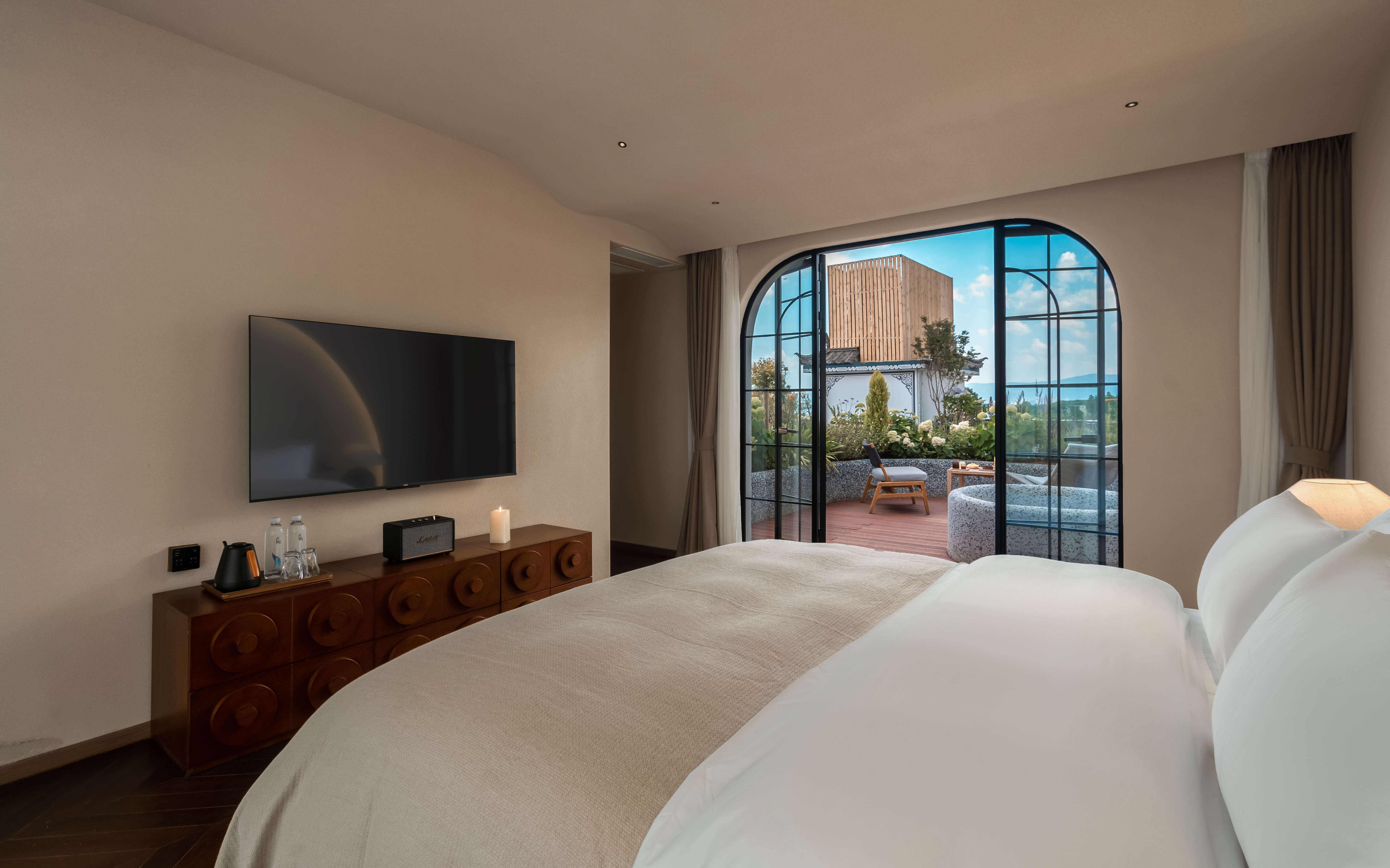 菡萏—花园露台侧海景大床房 .慕思乳胶床垫.马歇尔音响.戴森吹风机·杜拉维特洗浴.帕尔玛之水洗护套装.智能马桶