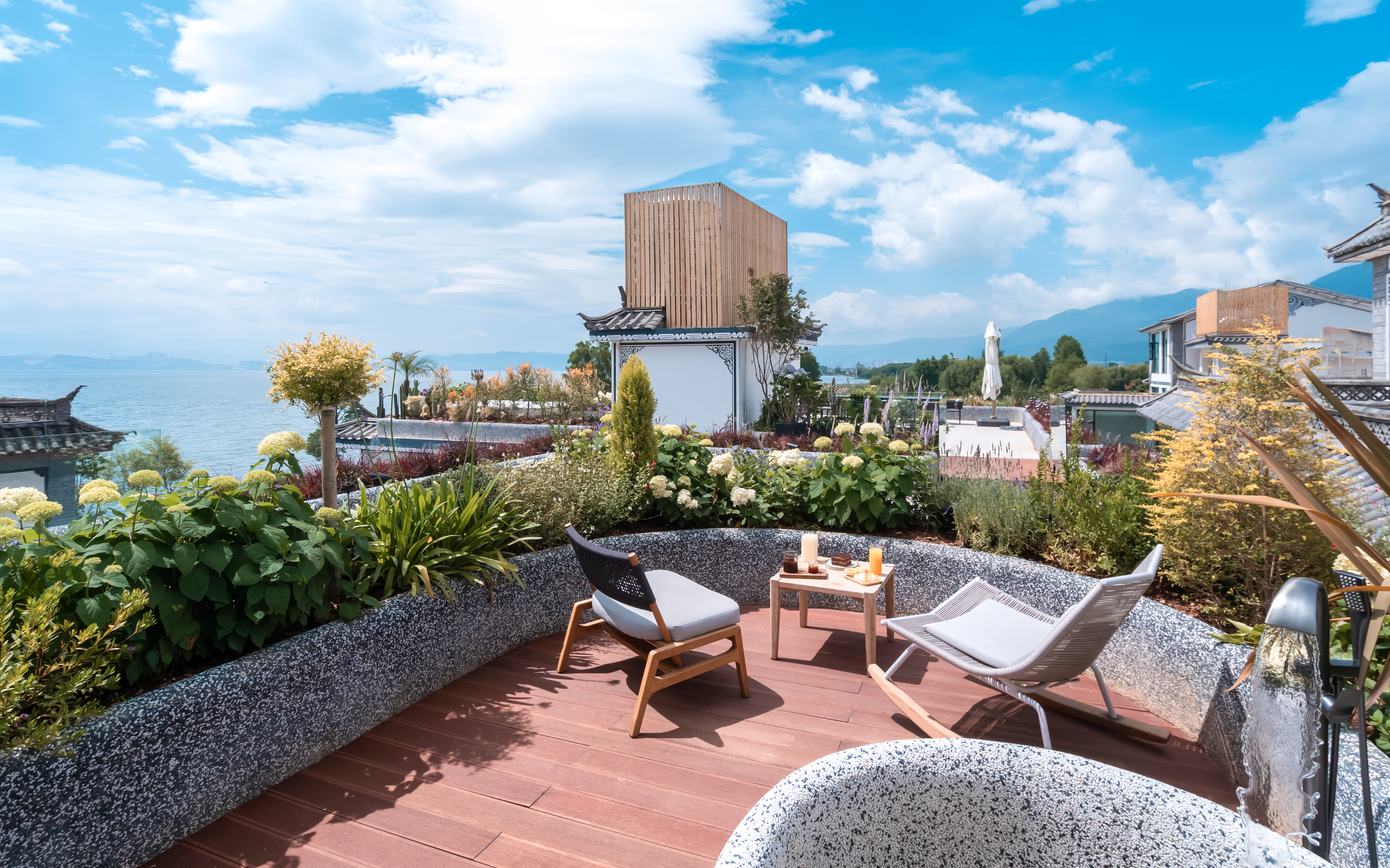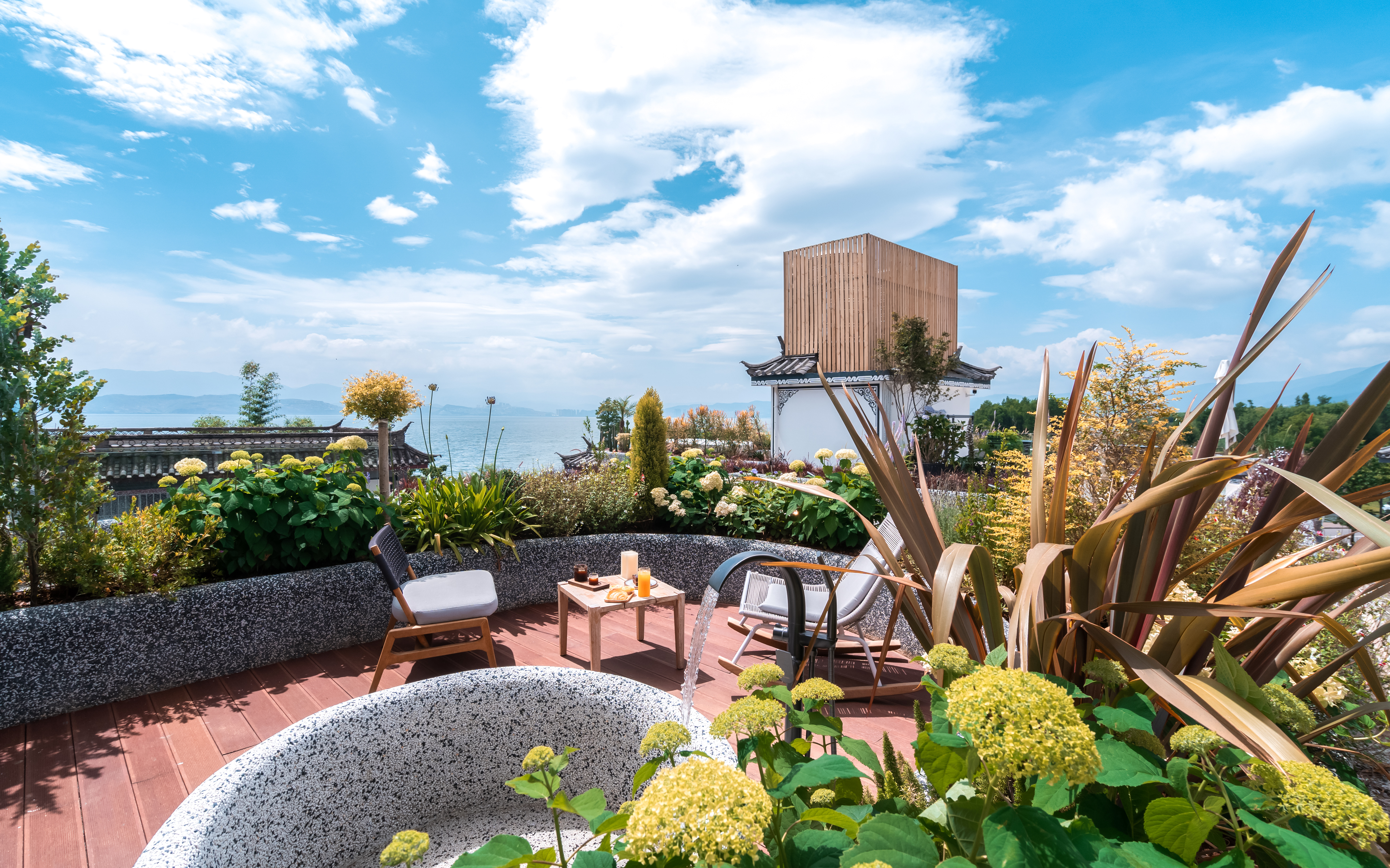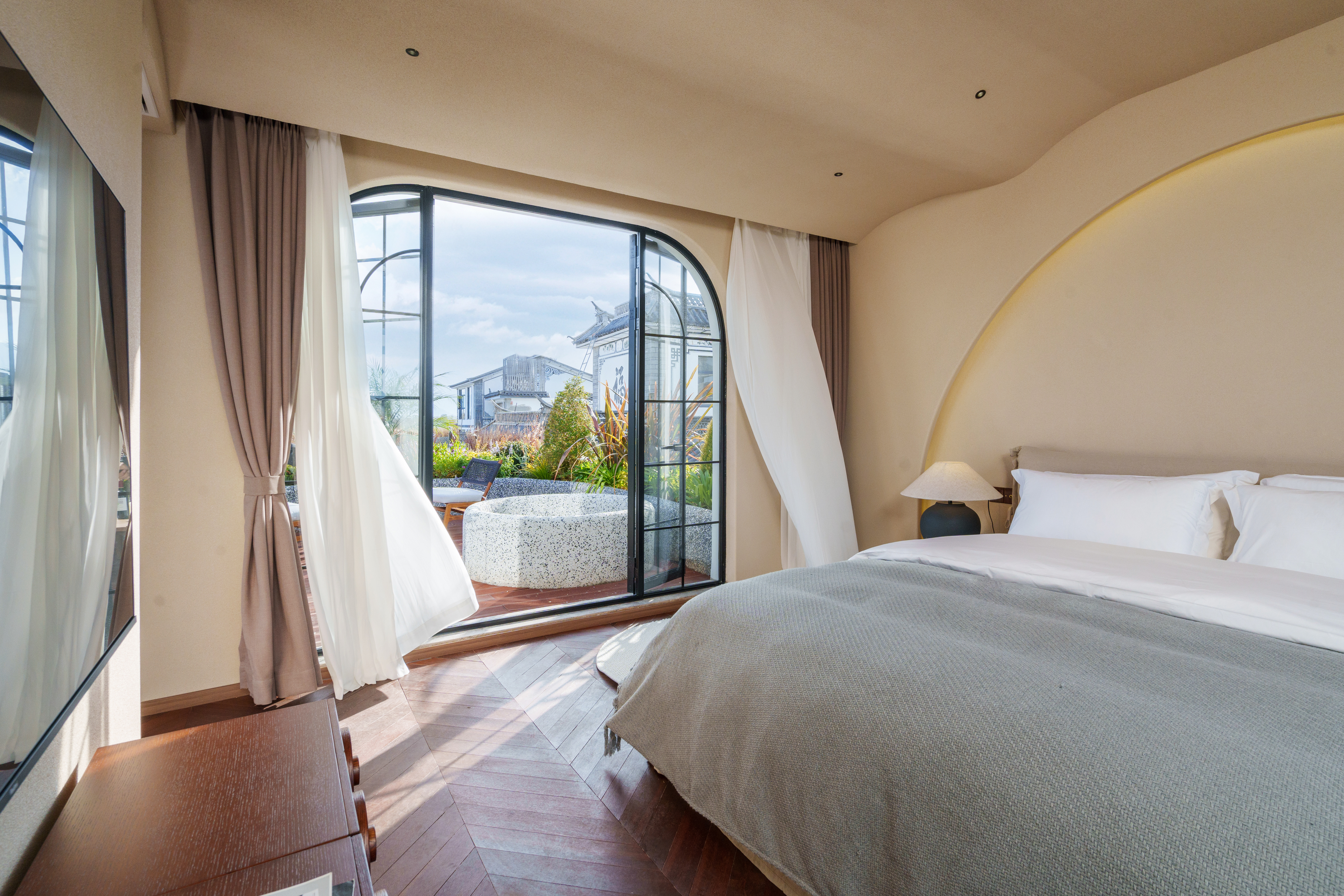 菡萏—花园露台侧海景大床房 .慕思乳胶床垫.马歇尔音响.戴森吹风机·杜拉维特洗浴.帕尔玛之水洗护套装.智能马桶