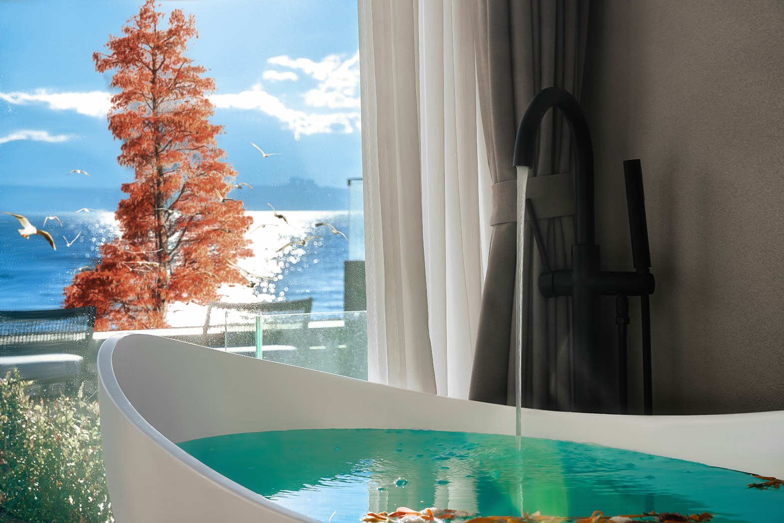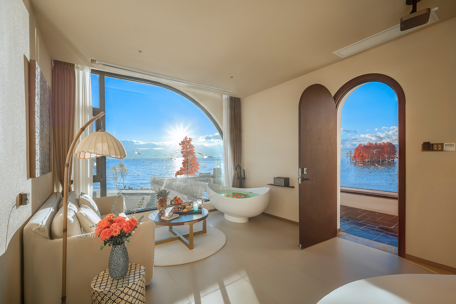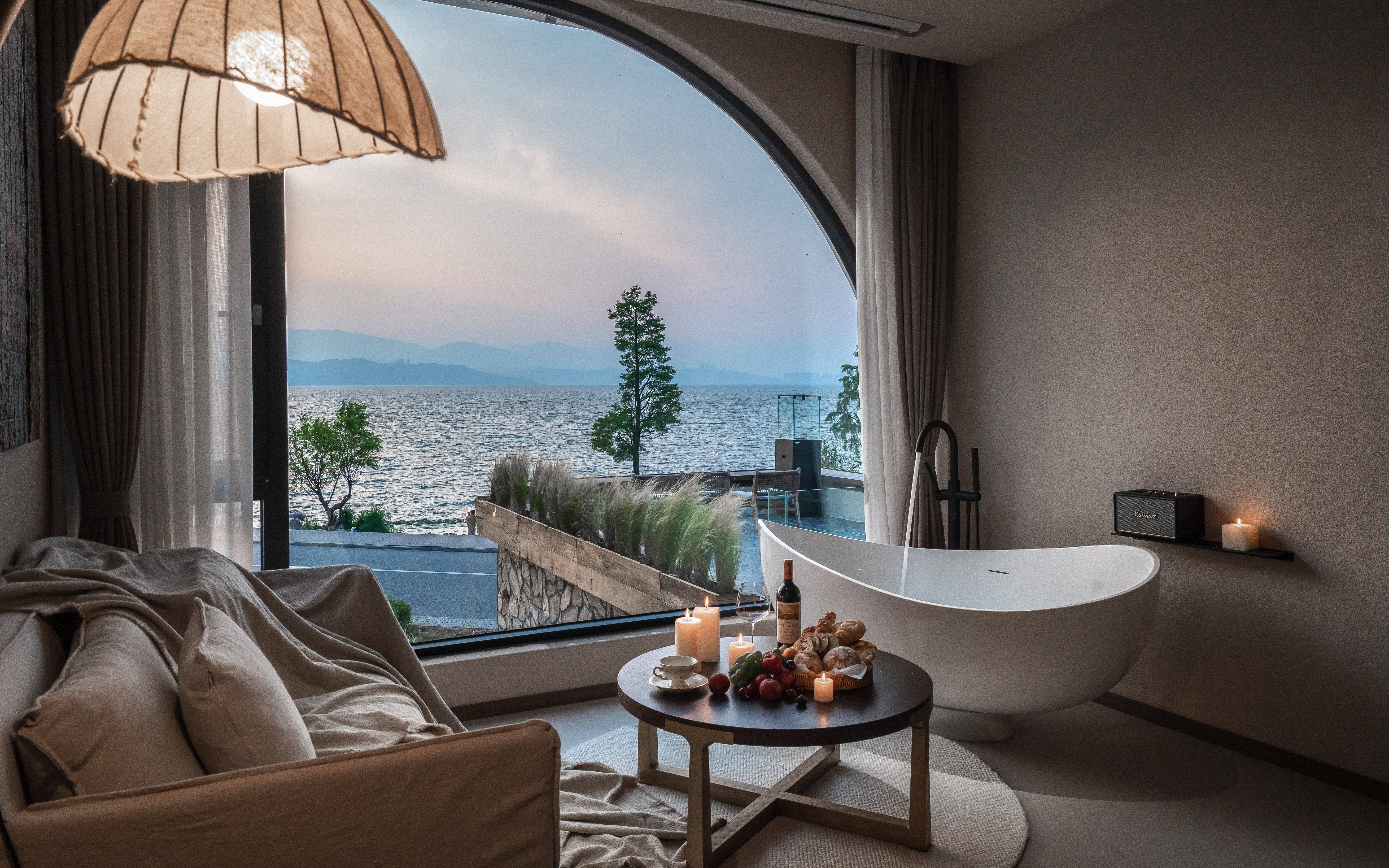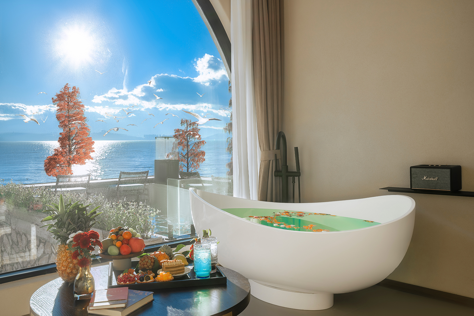 江篱—180°日出海景大床房·极米巨幕投影·马歇尔音响·海景浴缸·慕思乳胶床垫·戴森吹风机·杜拉维特淋浴·帕尔玛之水洗护套装·智能马桶
