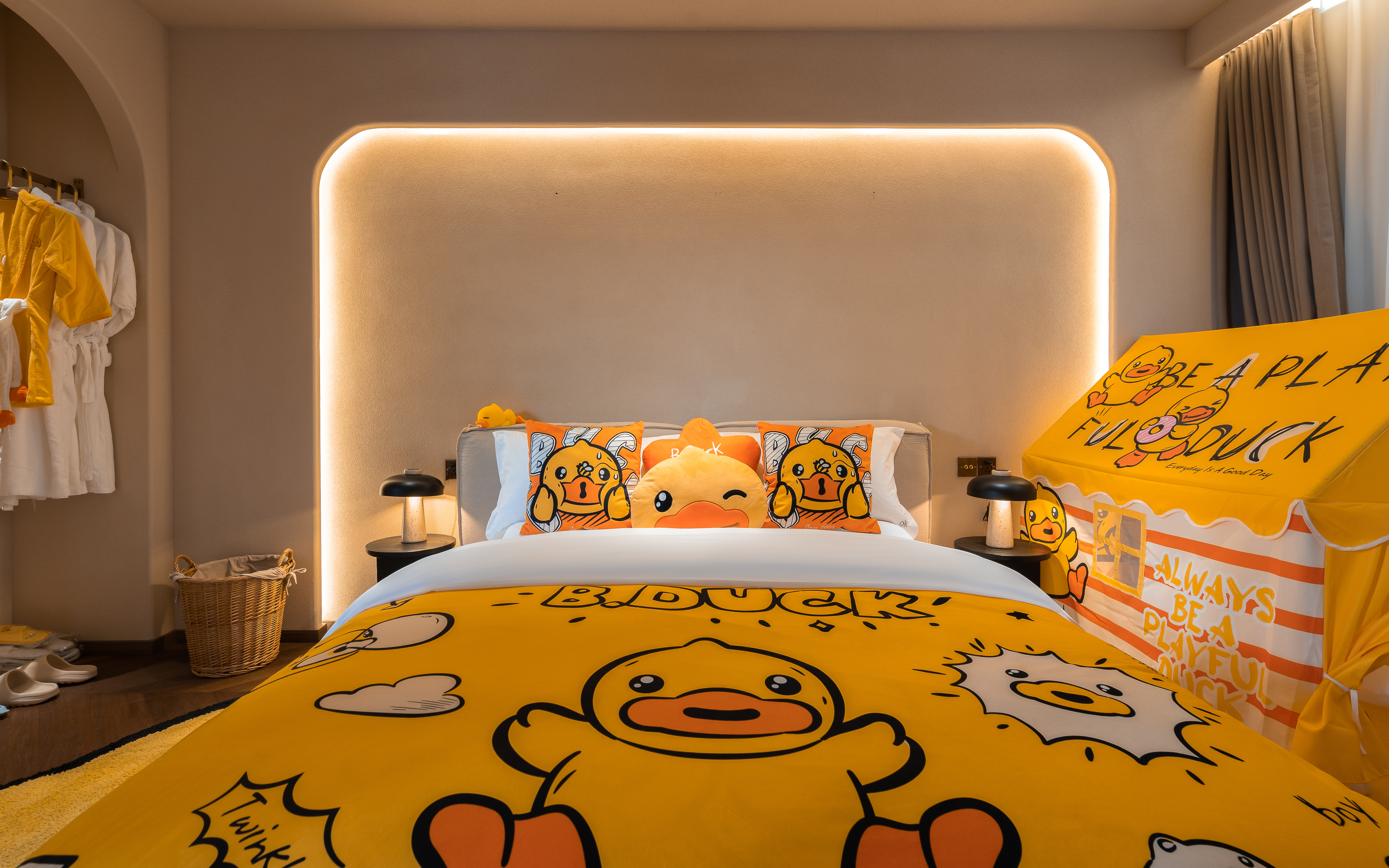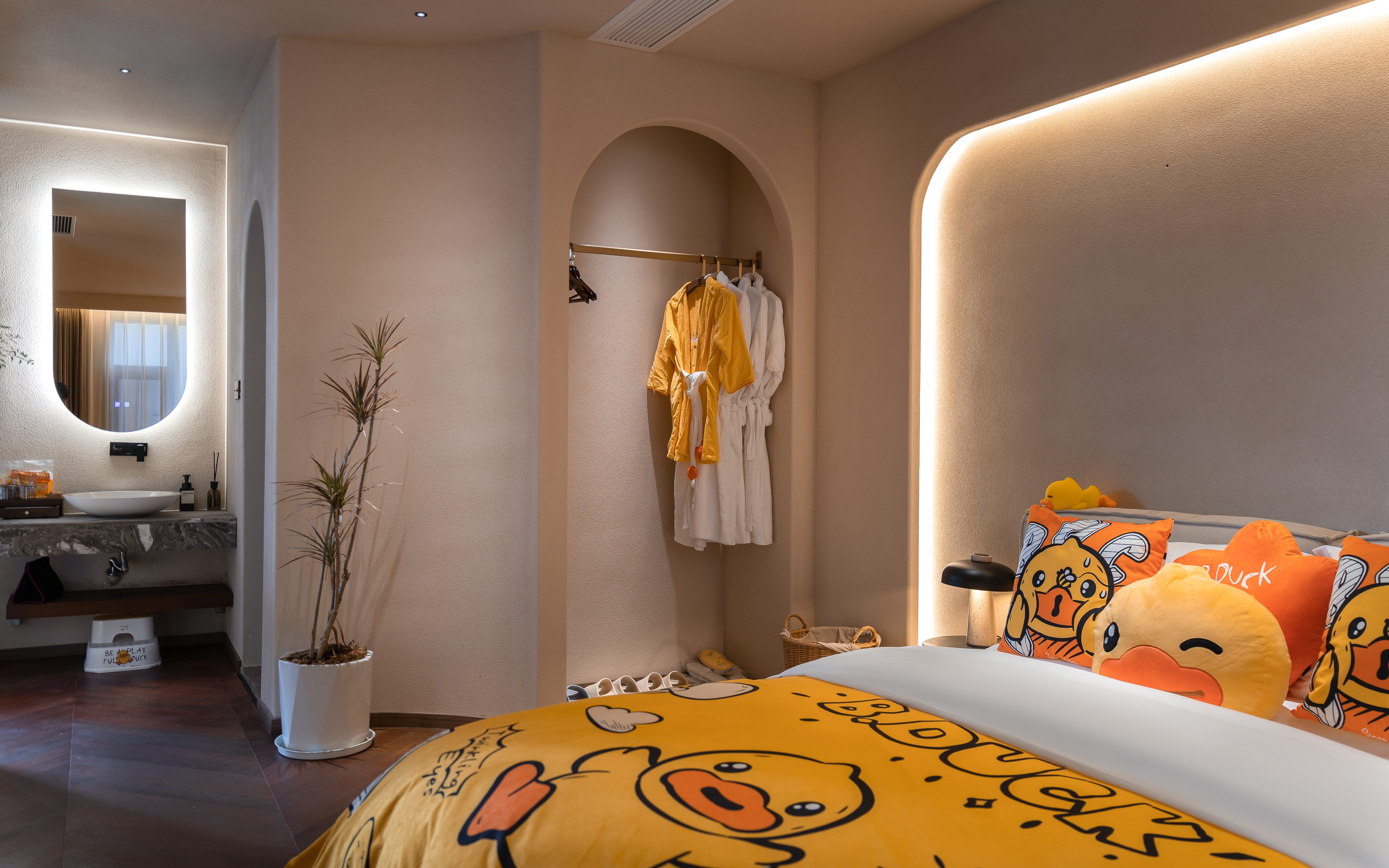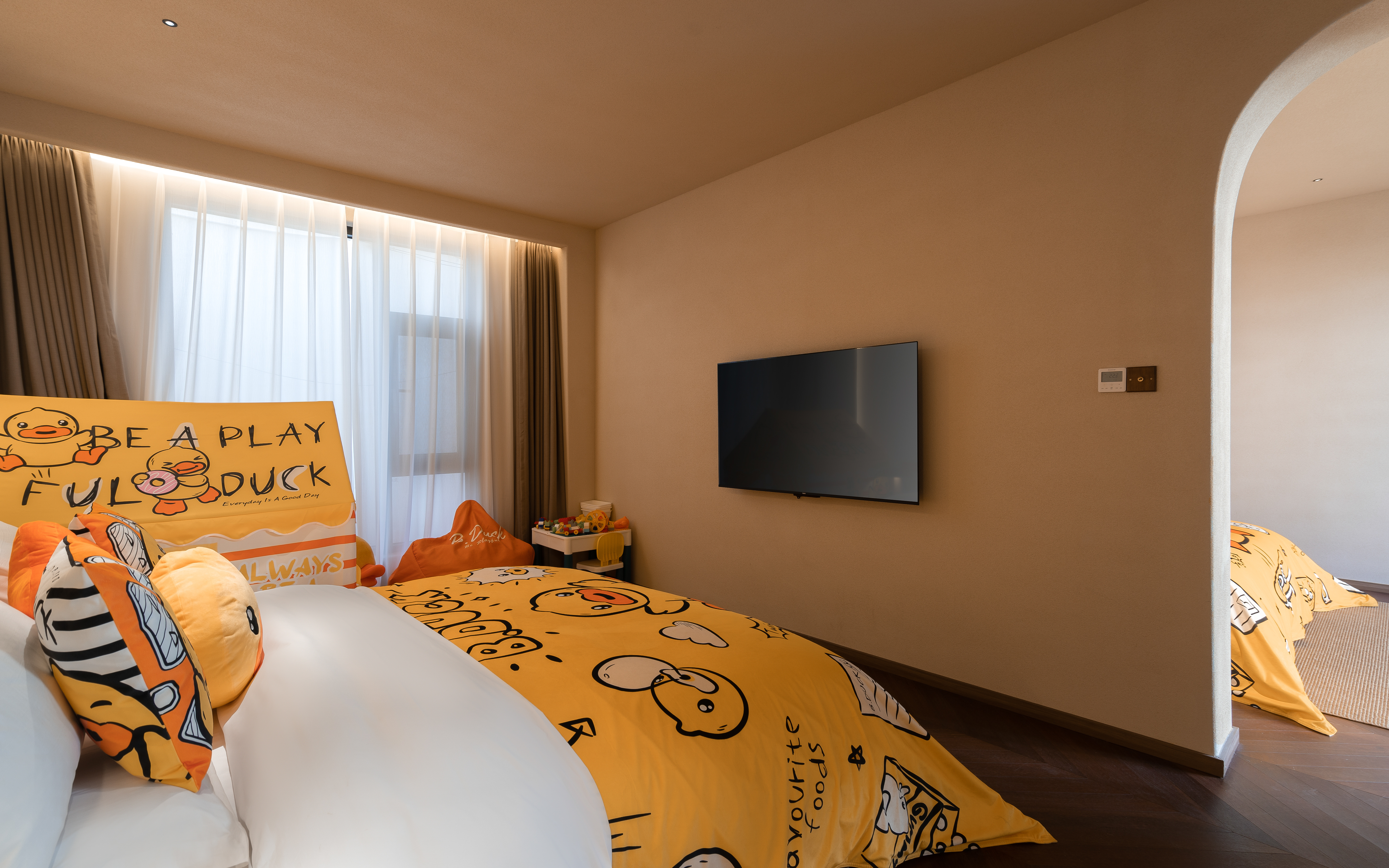 丹若—B.duck小黄鸭亲子主题家庭双床庭院套房 .慕思乳胶床垫.鹅绒被·戴森吹风机·杜拉维特洗浴.帕尔玛之水洗护套装.智能马桶
