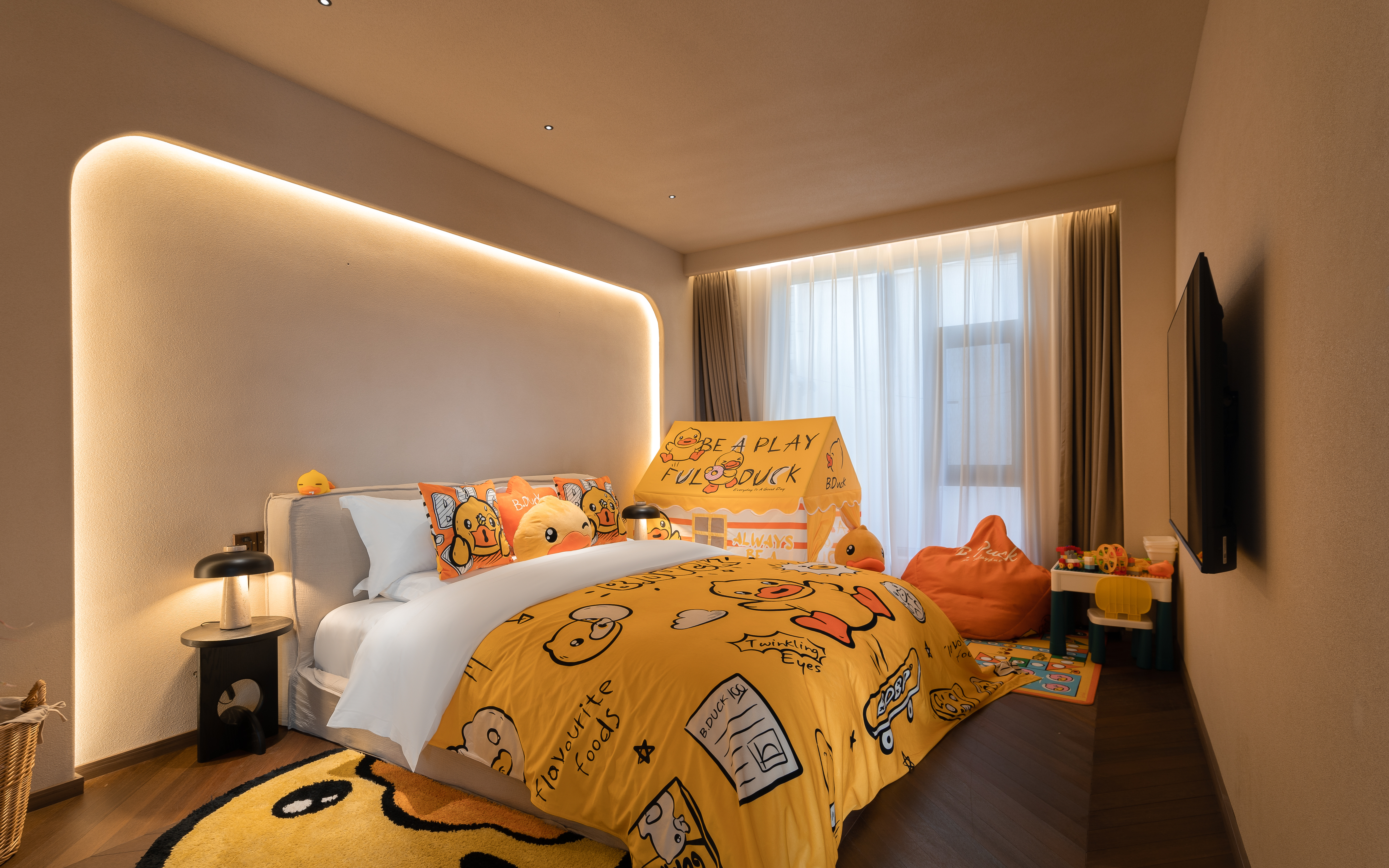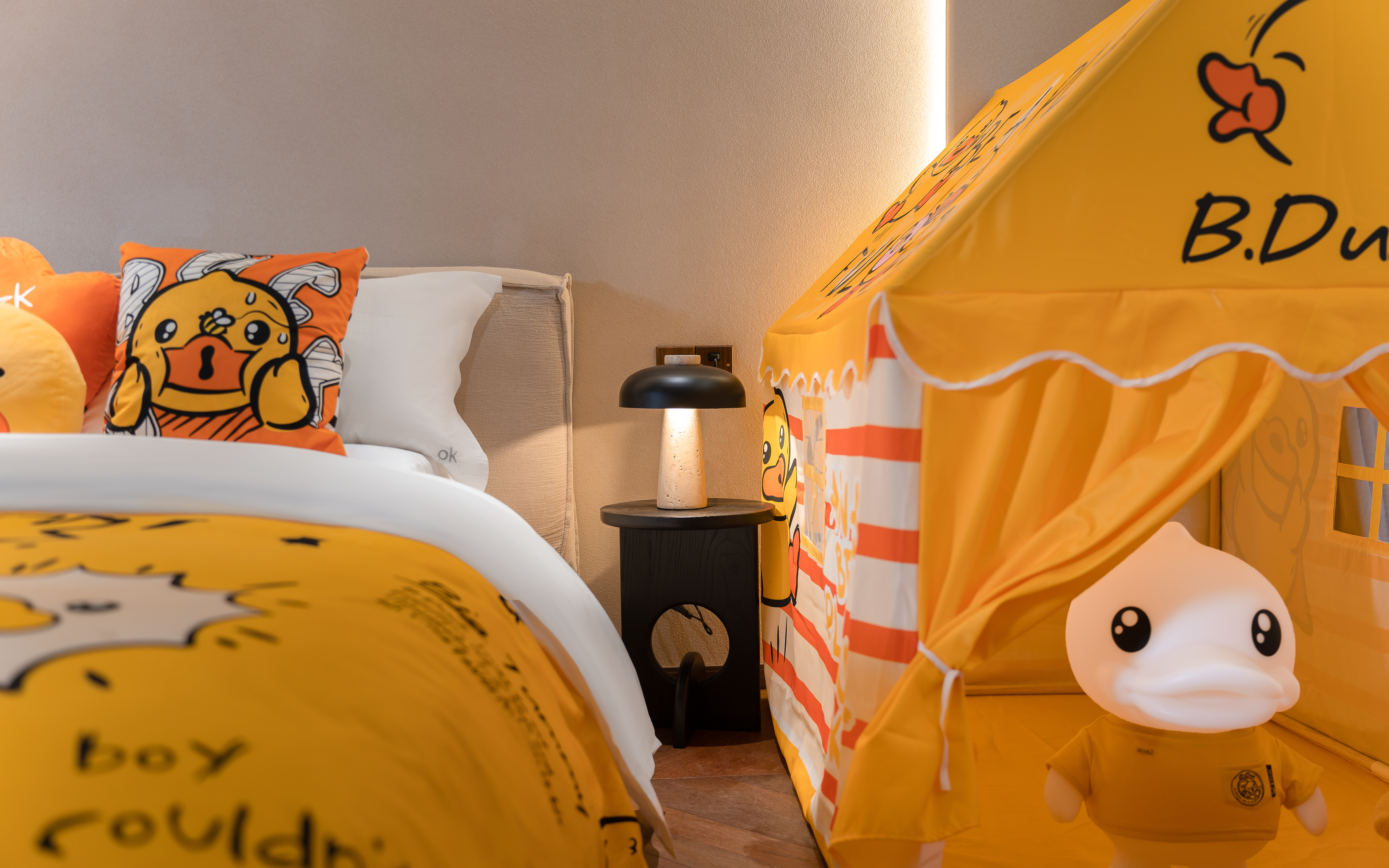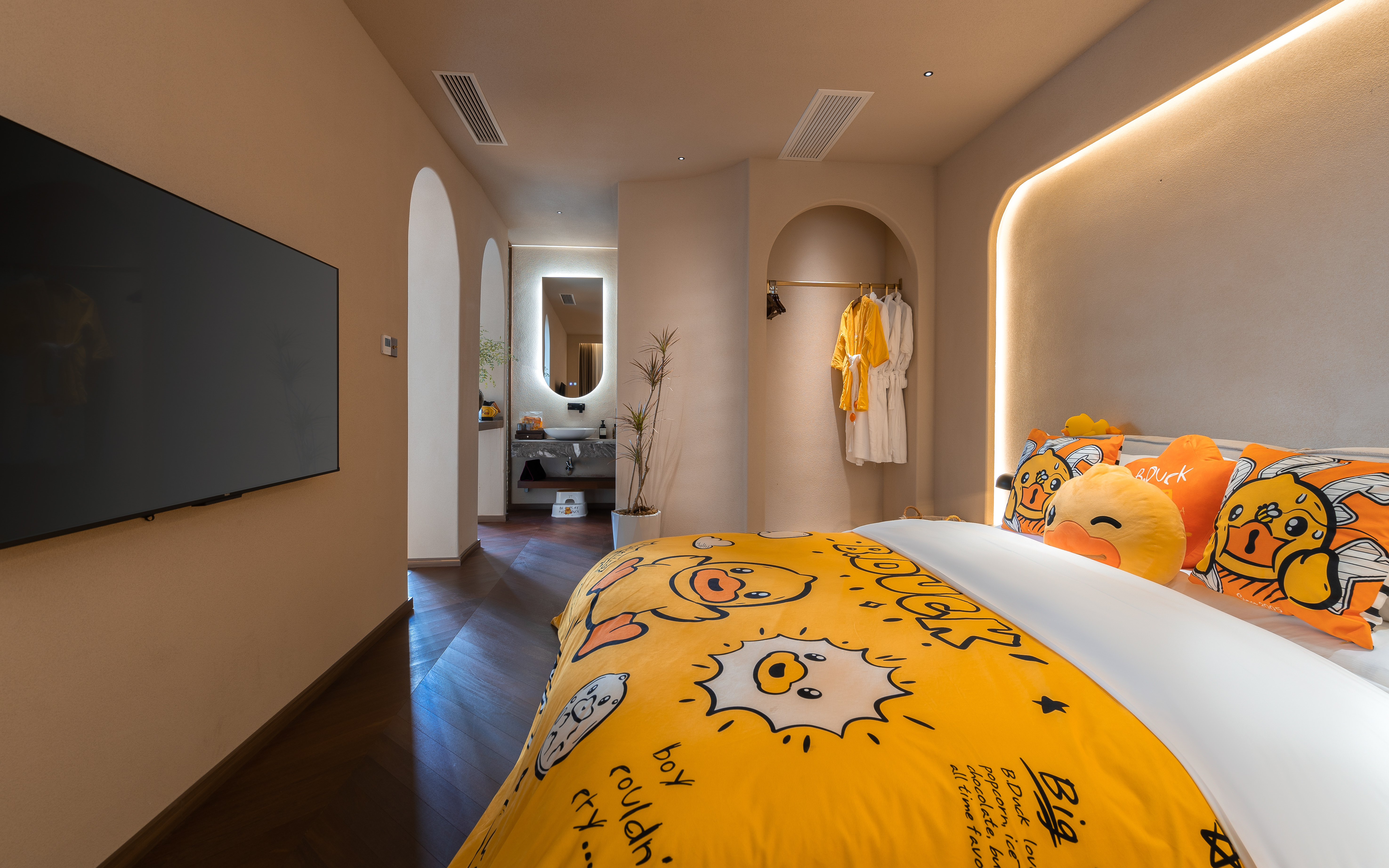 丹若—B.duck小黄鸭亲子主题家庭双床庭院套房 .慕思乳胶床垫.鹅绒被·戴森吹风机·杜拉维特洗浴.帕尔玛之水洗护套装.智能马桶