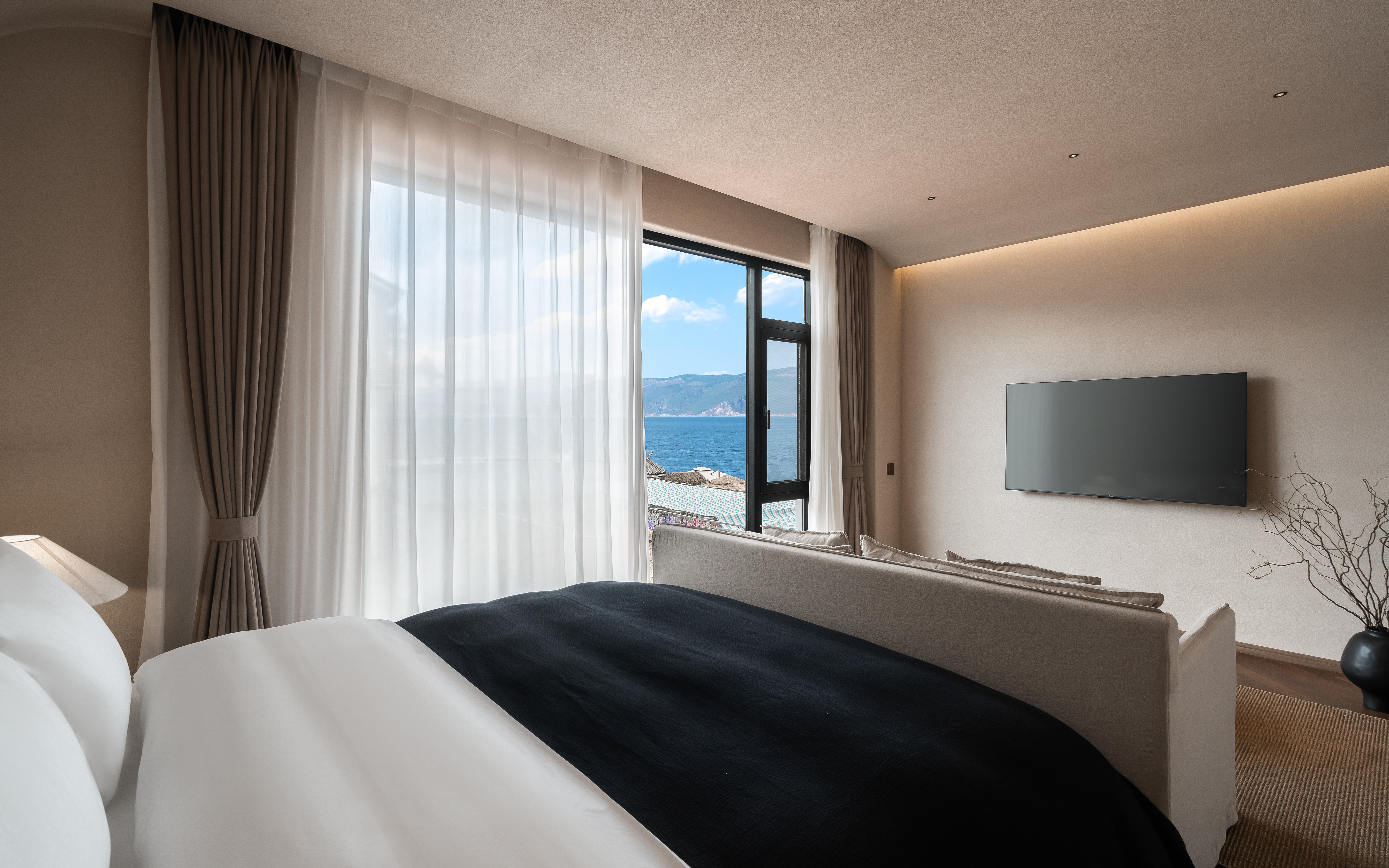 疏影—侧海景大床房.慕思乳胶床垫.戴森吹风机.杜拉维特洗浴.APPELLES洗护套装.智能马桶