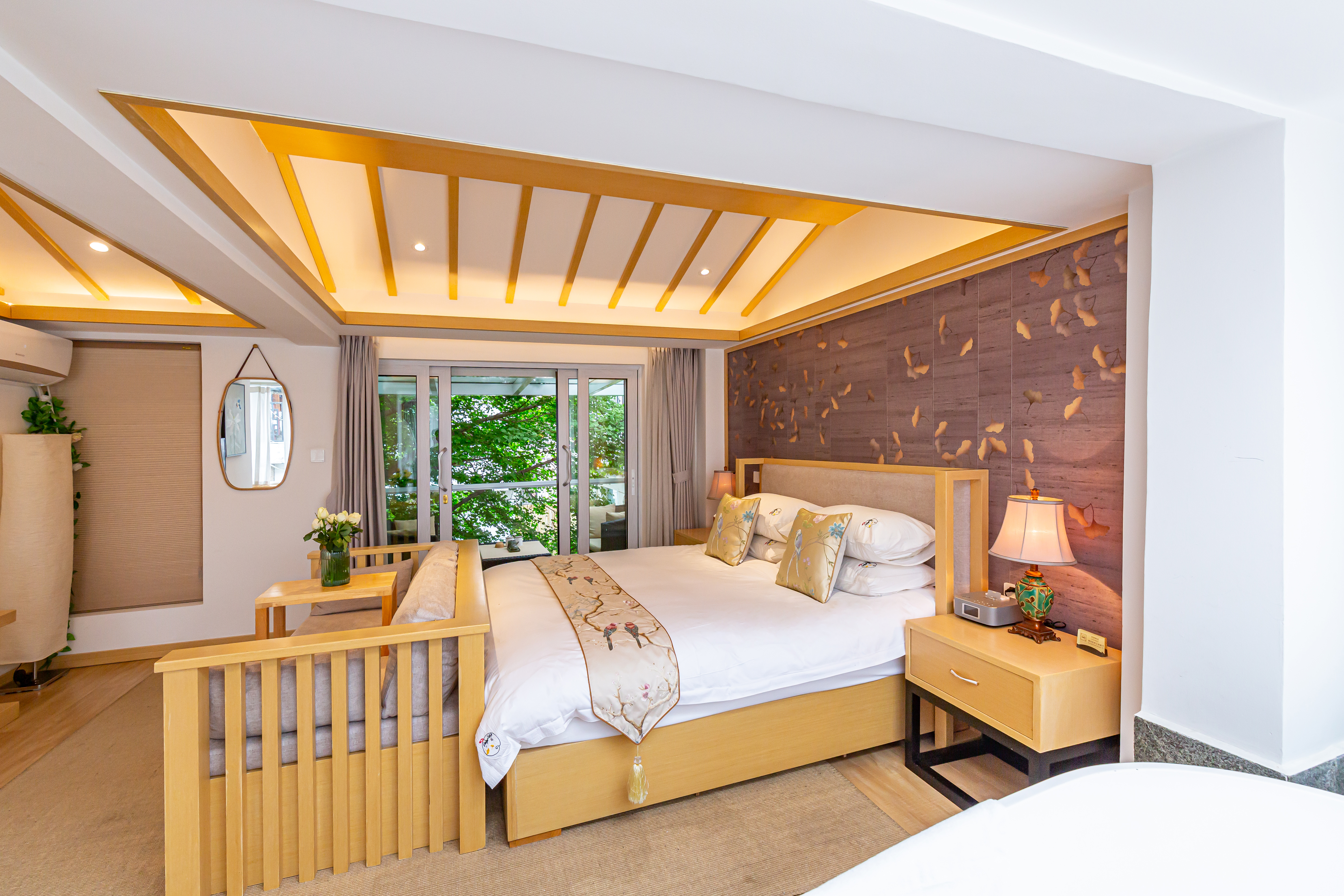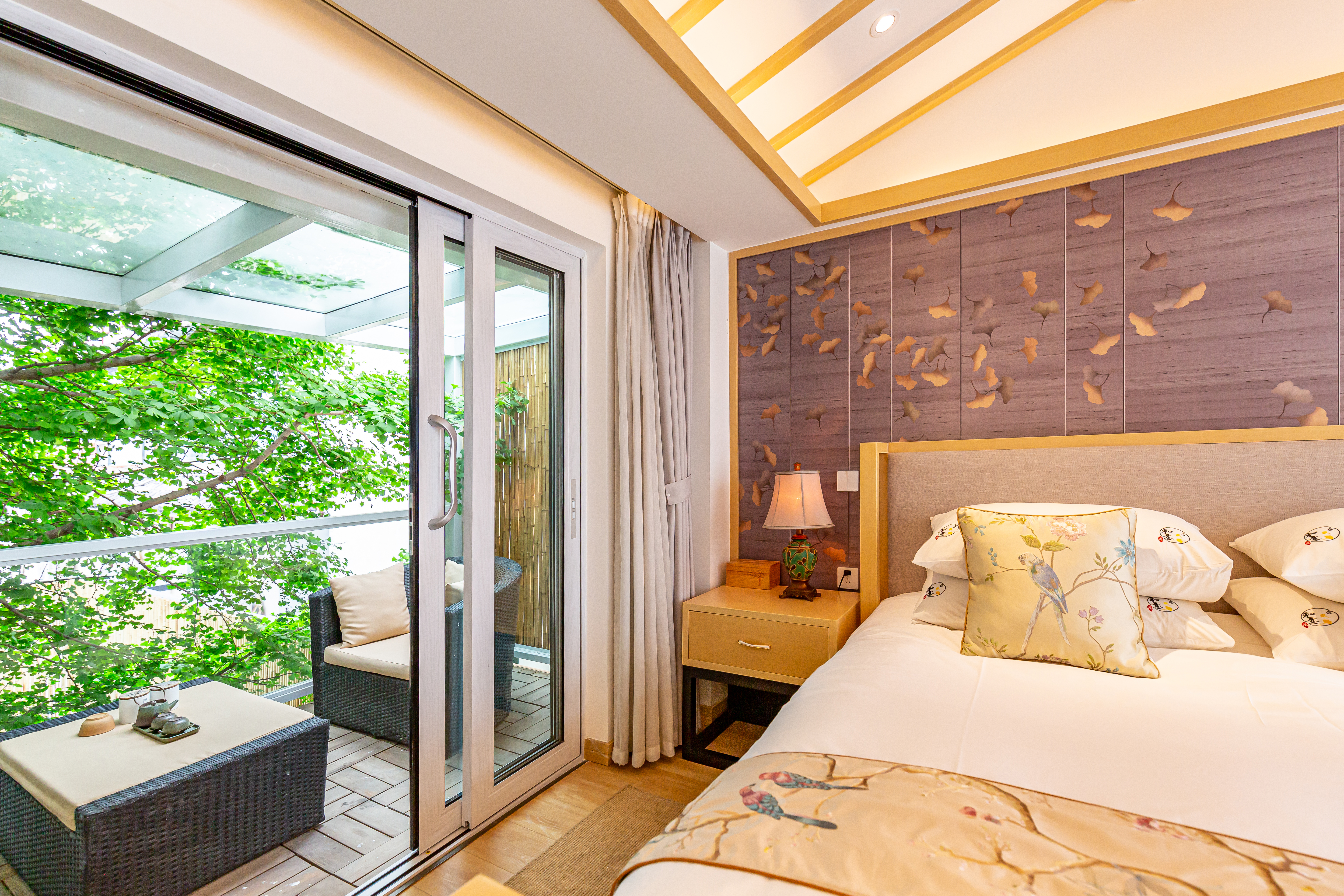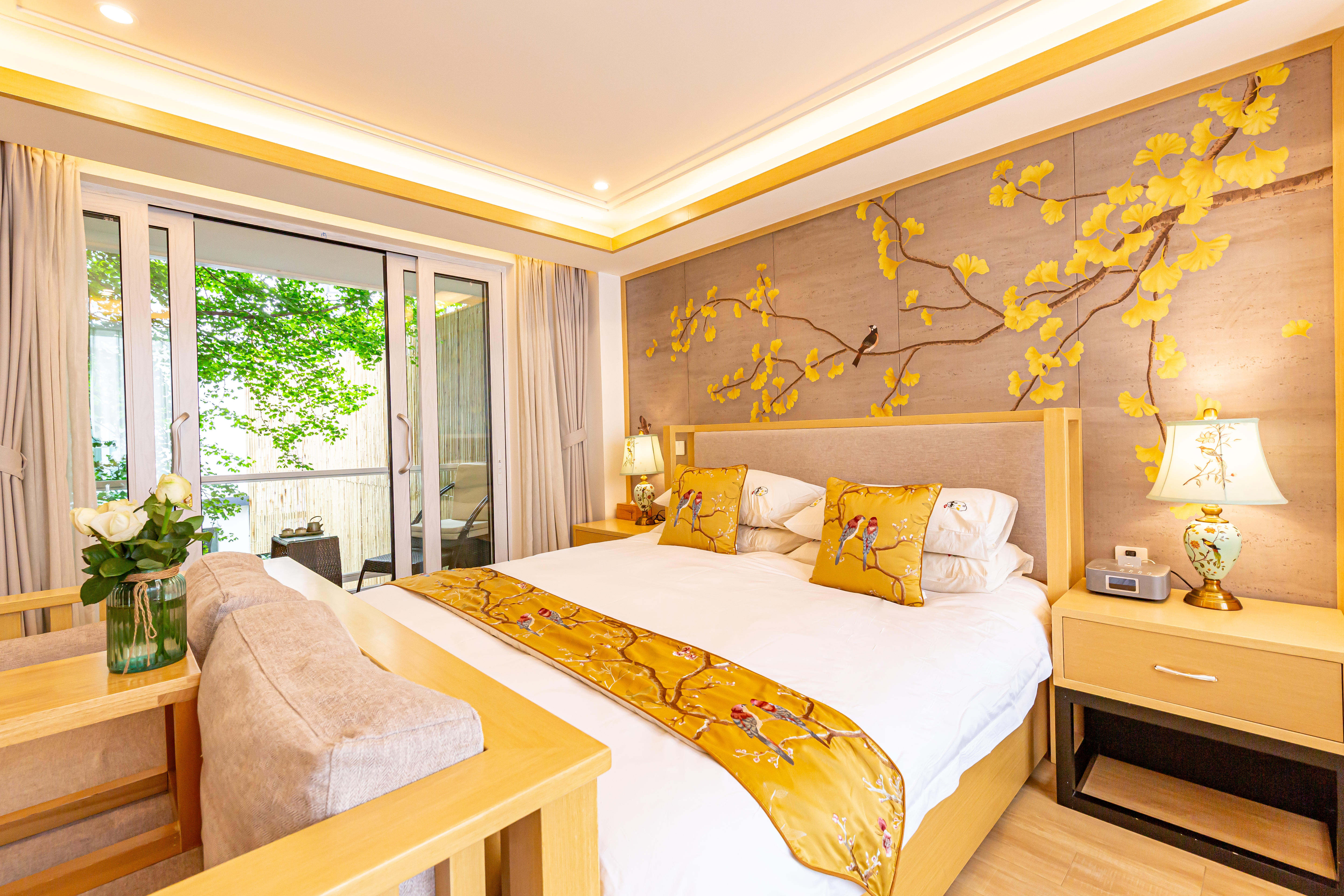 秋月·雙陽台園景大床房【慕思床墊+COCO-MAT床品+Toto智能馬桶衞浴+超大浴缸+180度百年銀杏景】