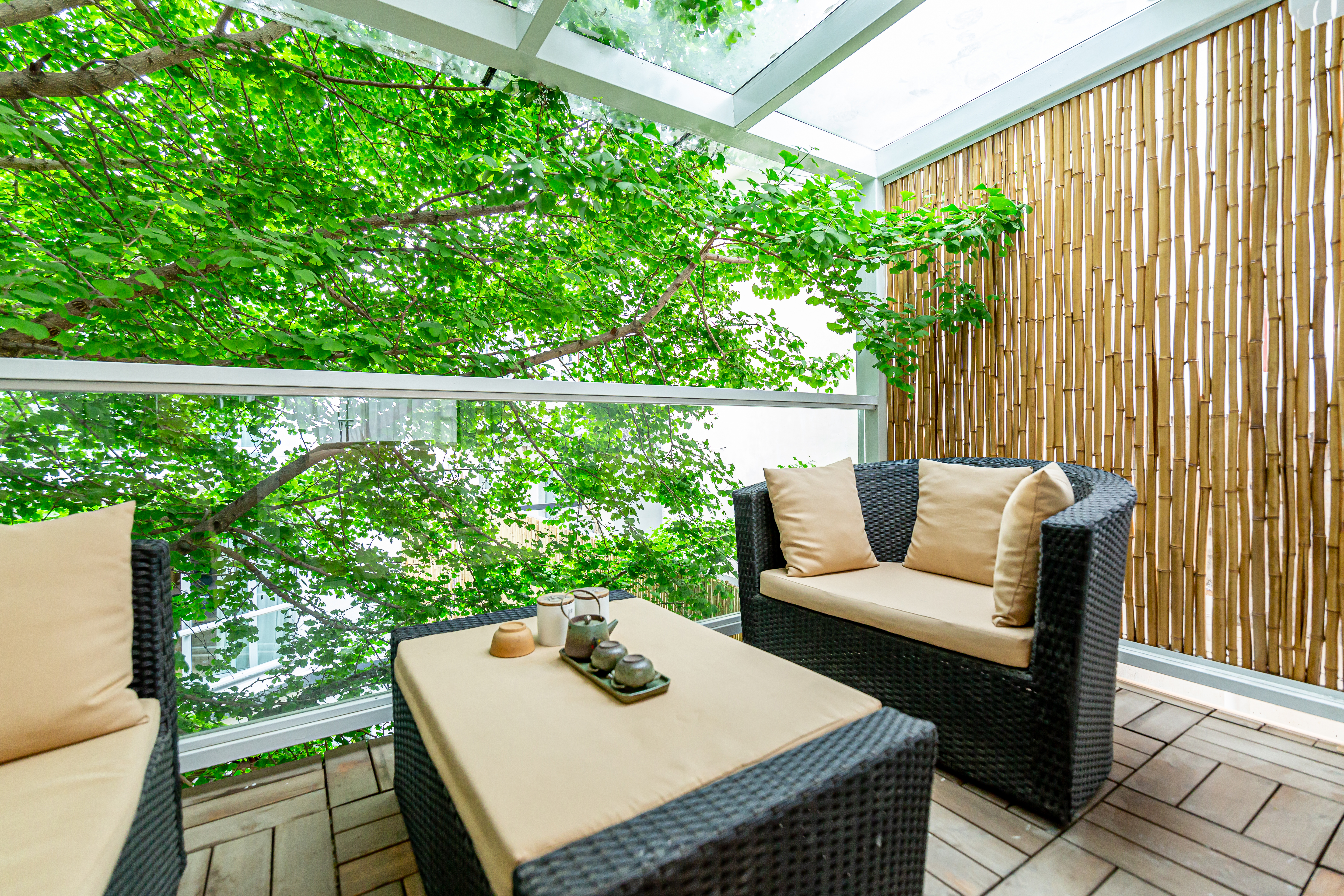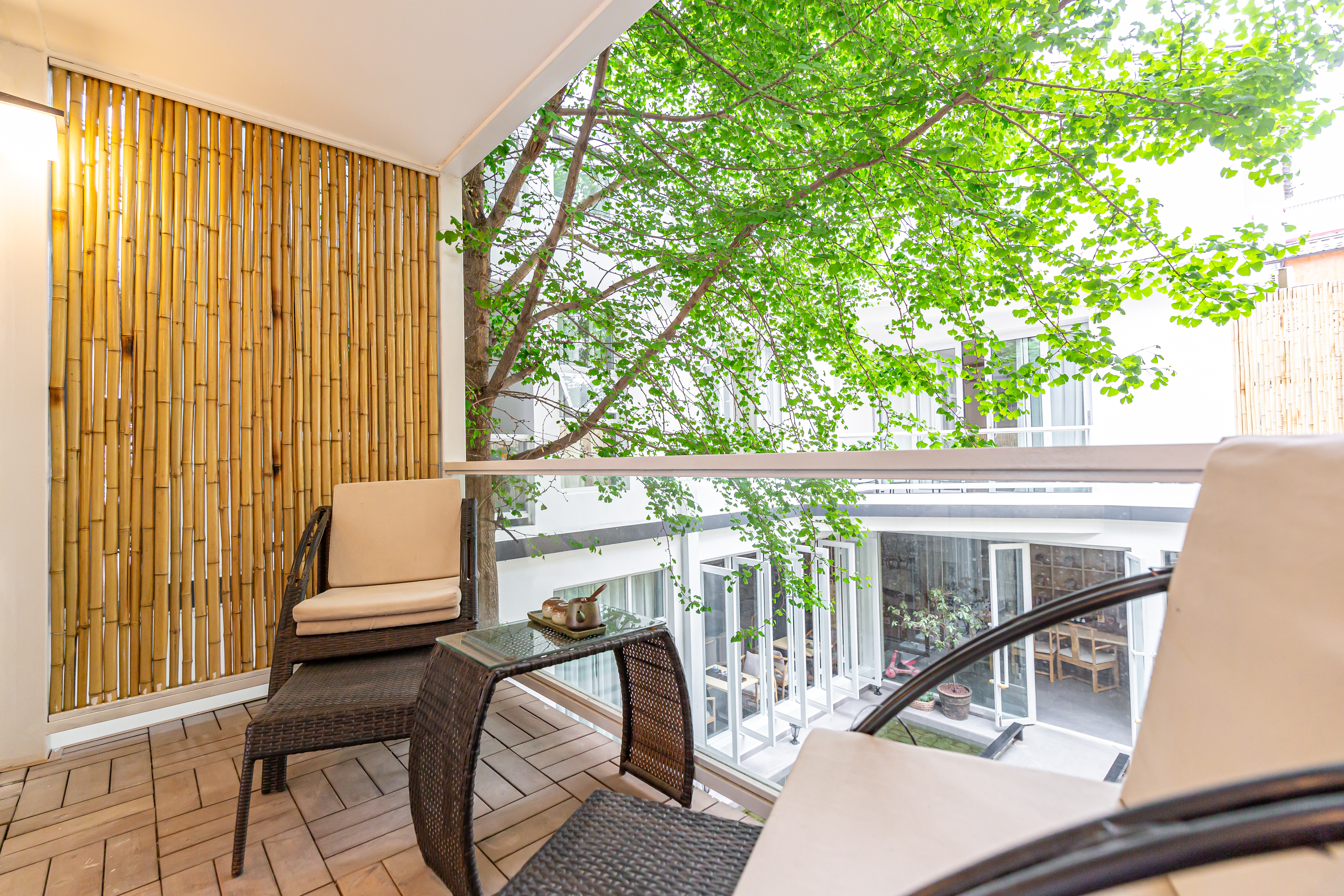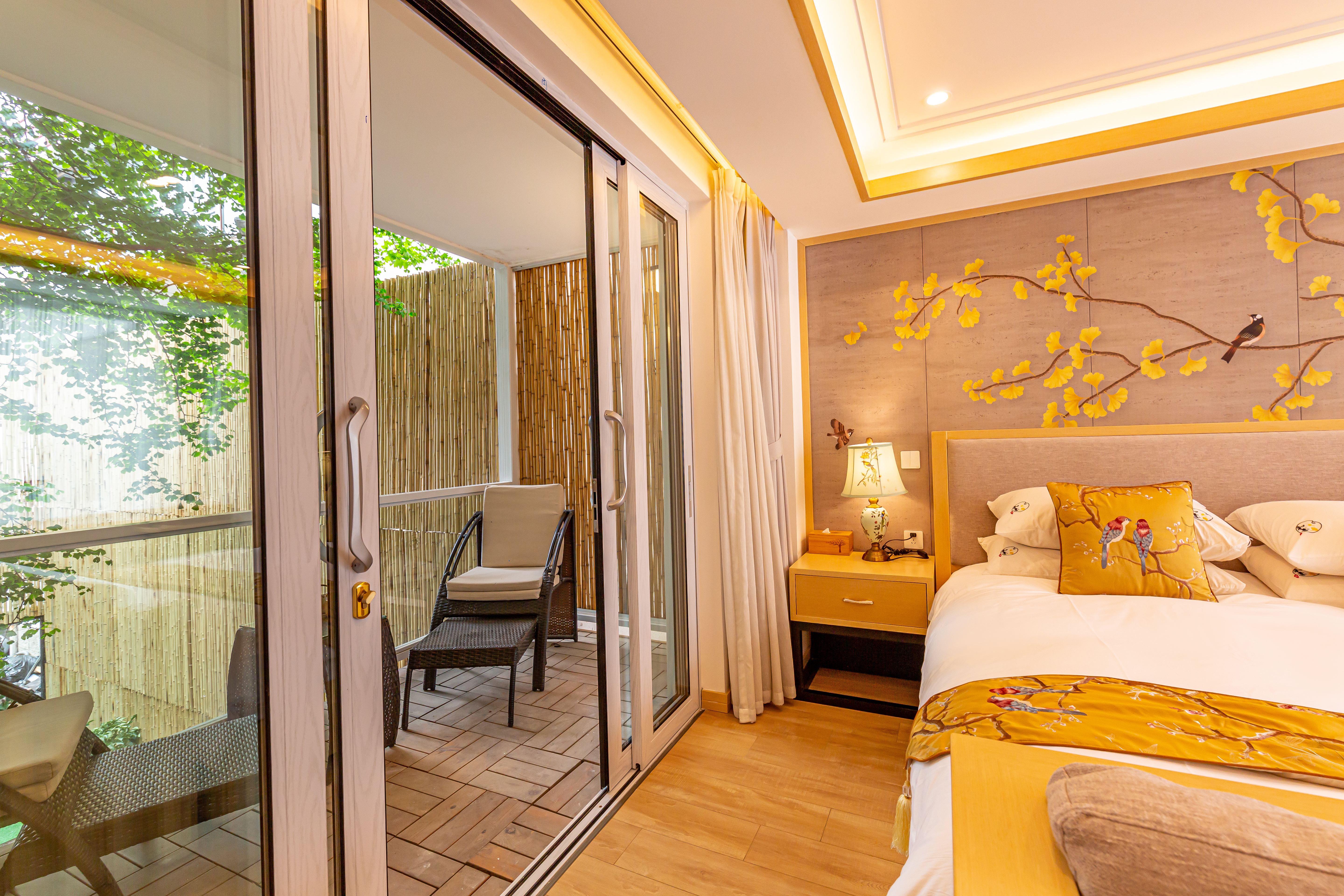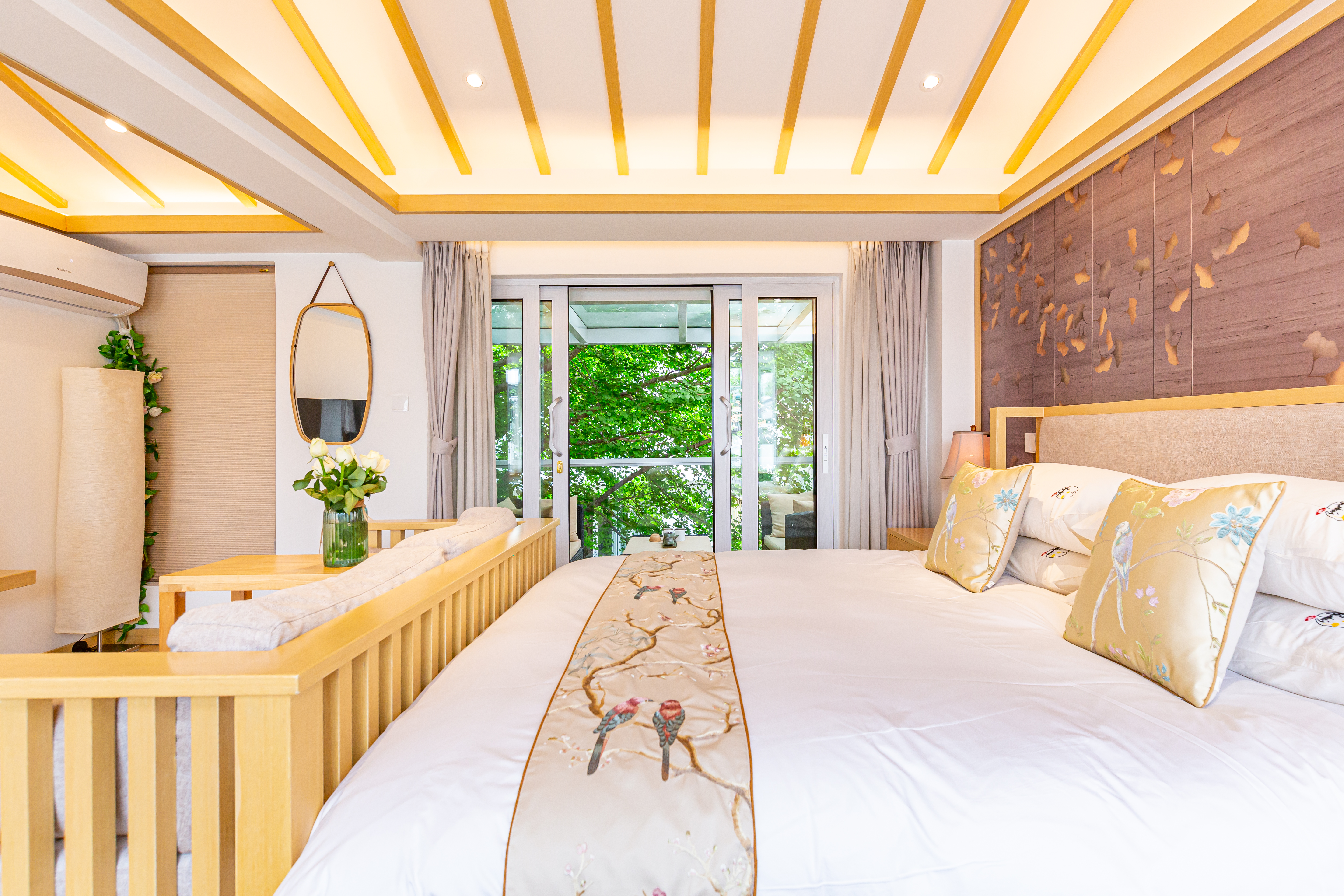 秋月·雙陽台園景大床房【慕思床墊+COCO-MAT床品+Toto智能馬桶衞浴+超大浴缸+180度百年銀杏景】