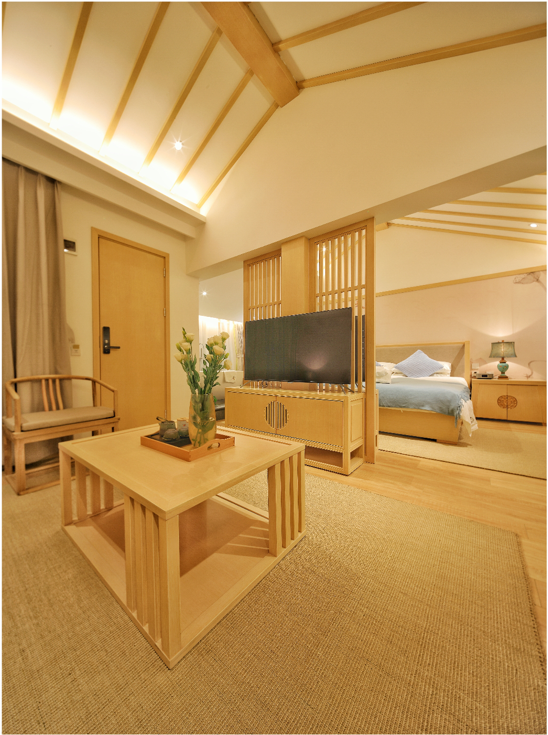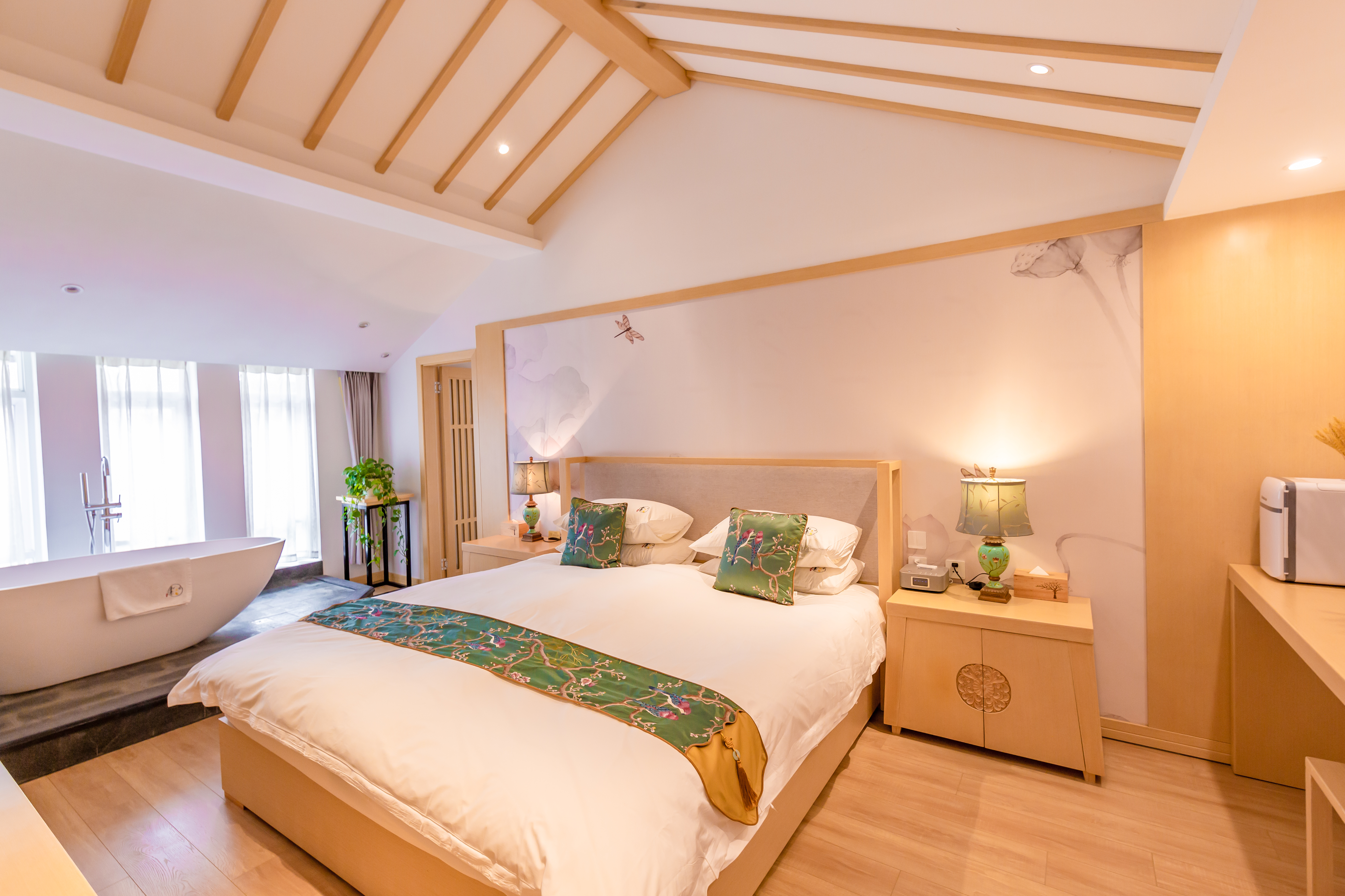 夏花超大床客廳套房【慕思床墊+COCO-MAT床品+Toto智能馬桶衞浴+超大浴缸+輕奢客廳】