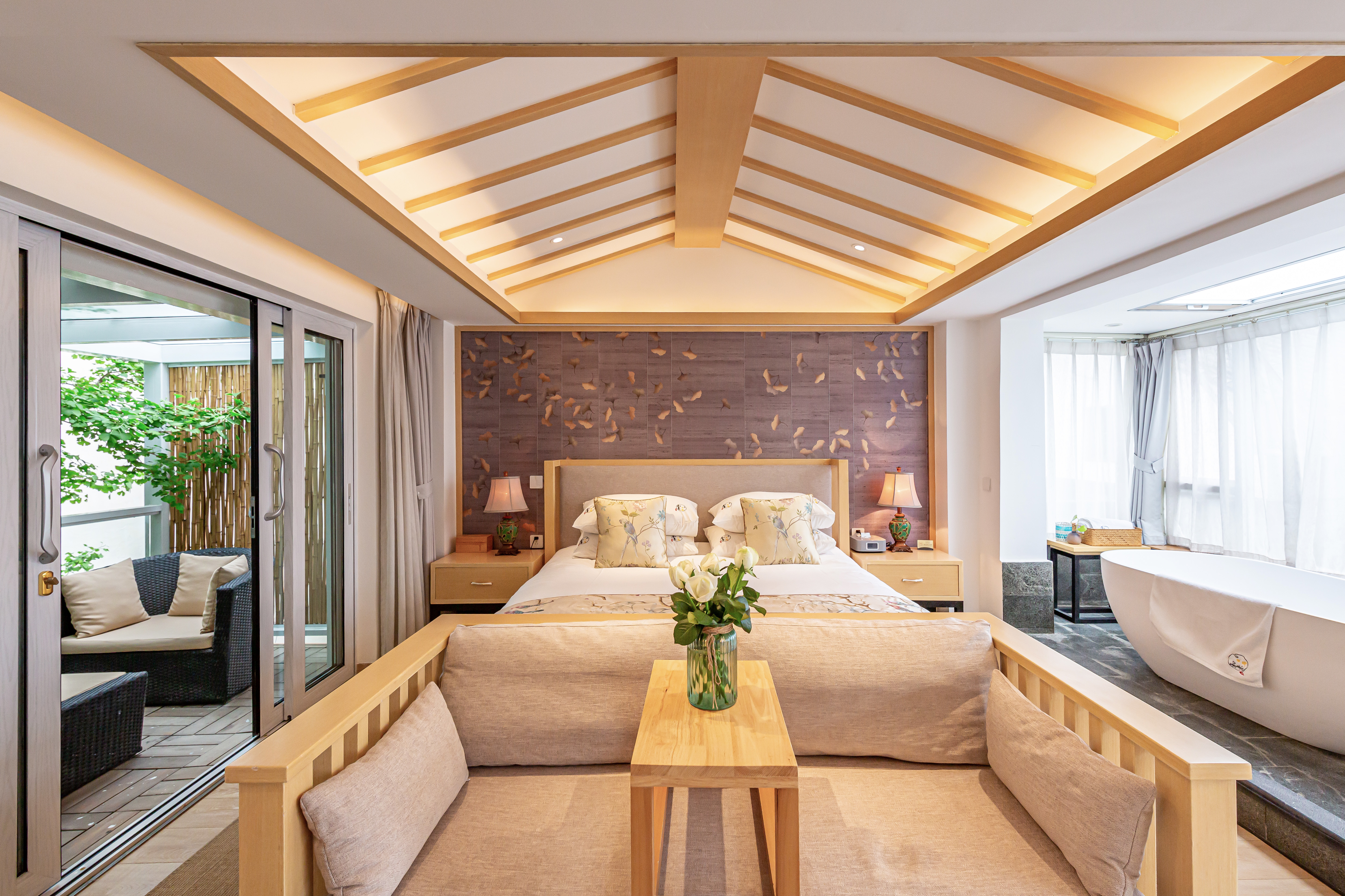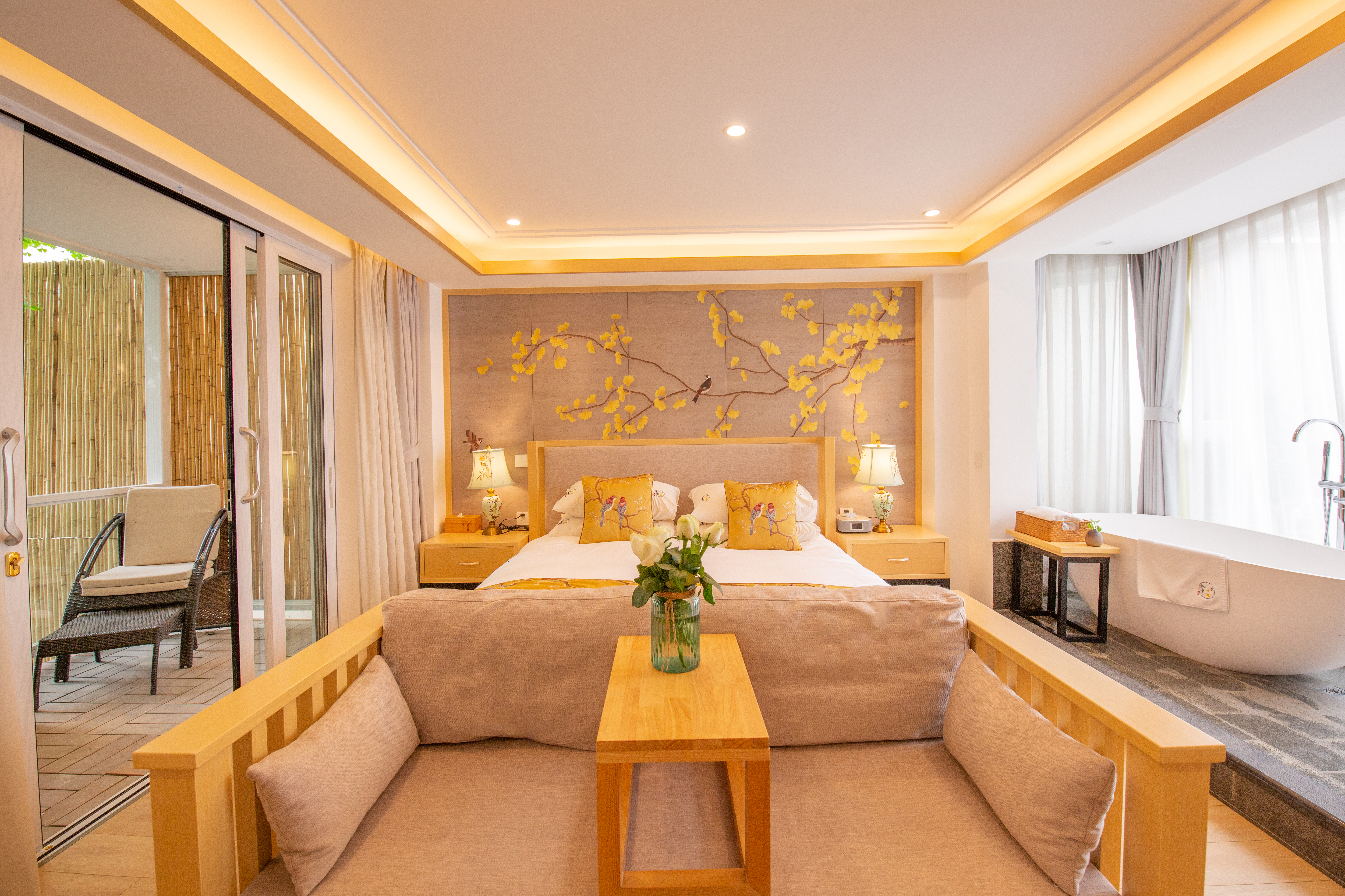 冬雪·陽台園景大床房【慕思床墊+COCO-MAT床品+Toto智能馬桶衞浴+超大浴缸+180度百年銀杏景】