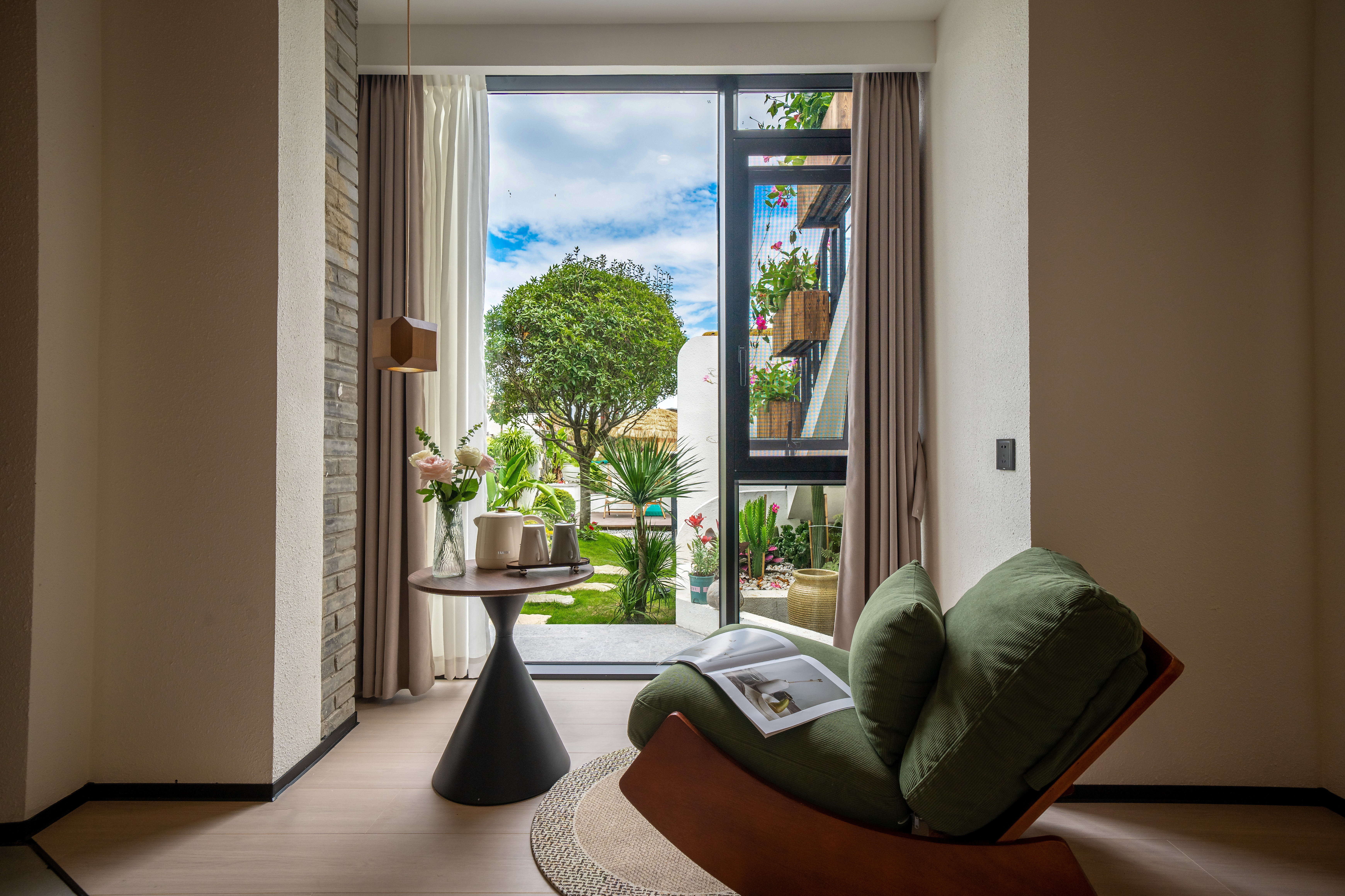 日始·180°花園景觀庭院大床房-舒適懶人沙發-休閑茶座