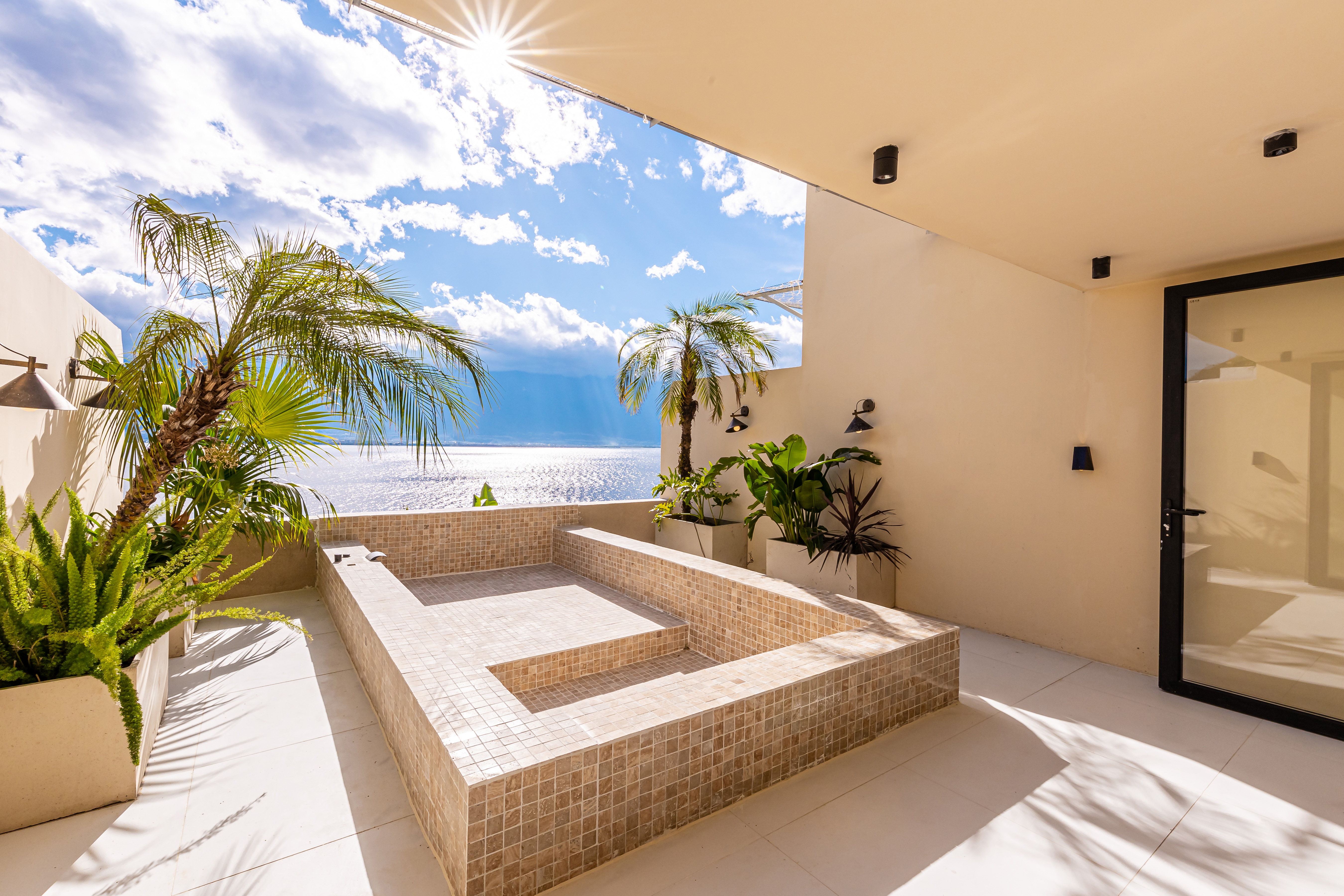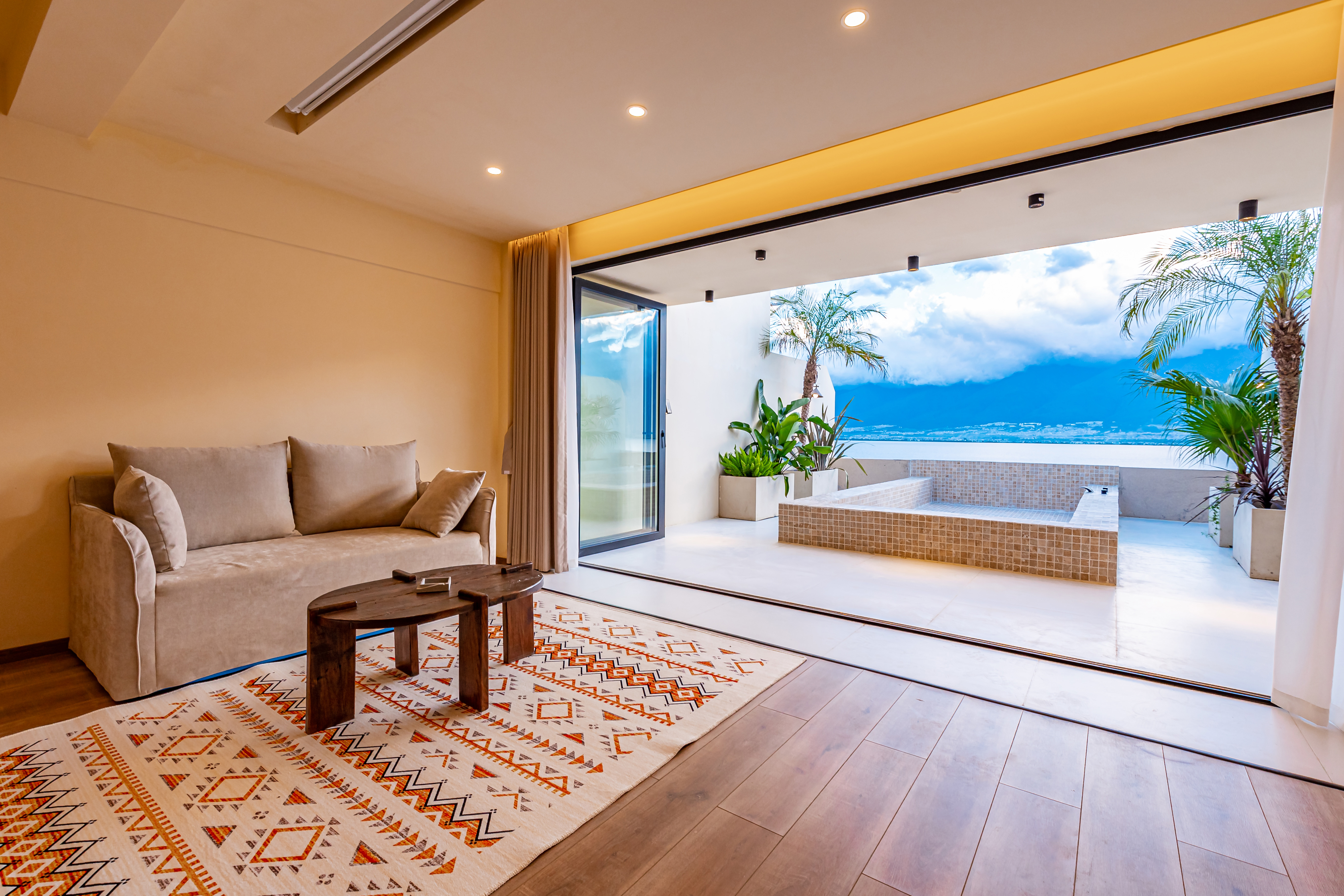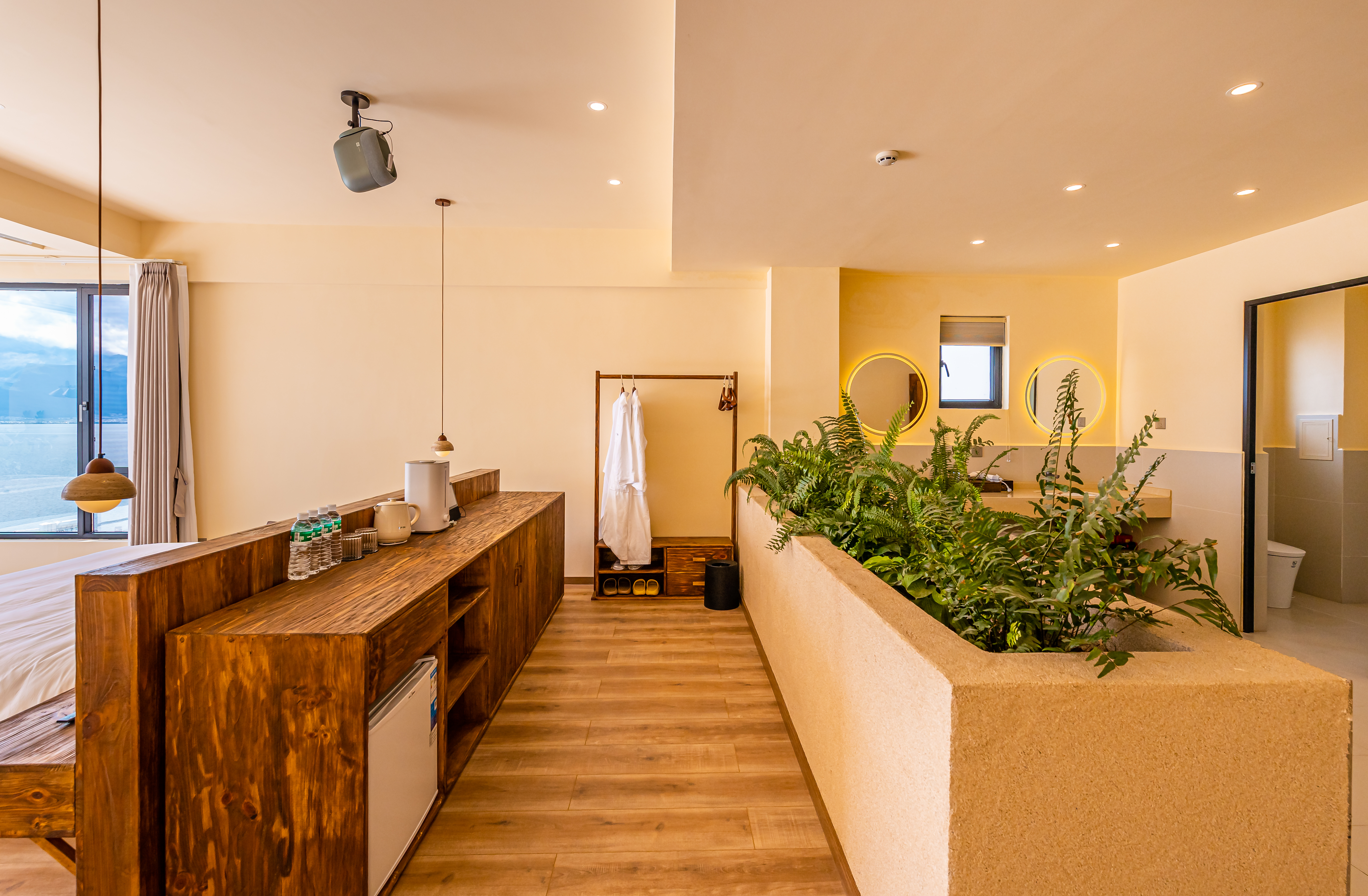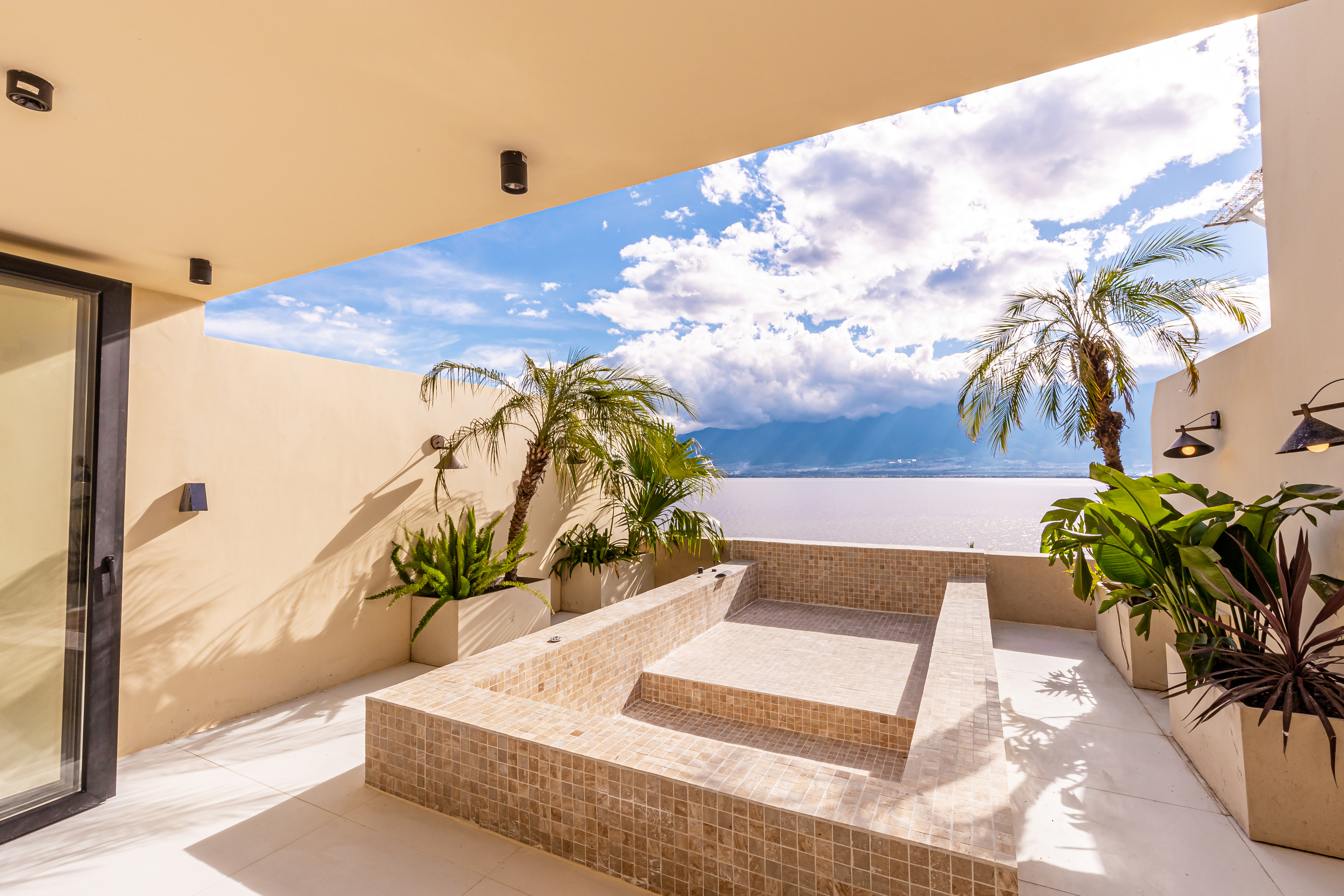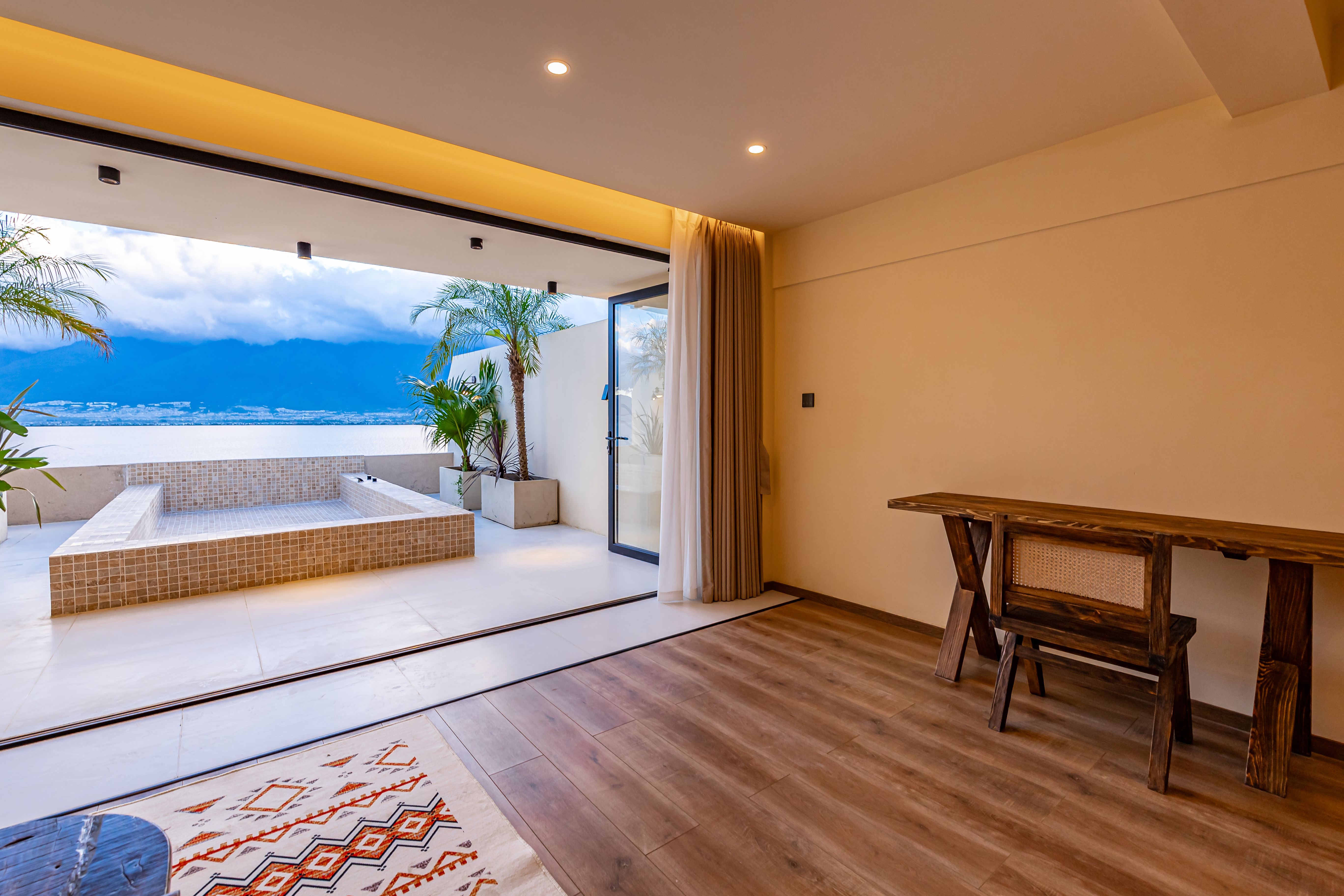 顺遂·海景露台特大床房|海景泳池冷热可调|落地摺叠窗|日落|金可儿床垫|恒温花洒|智能客控|冰箱|投影
