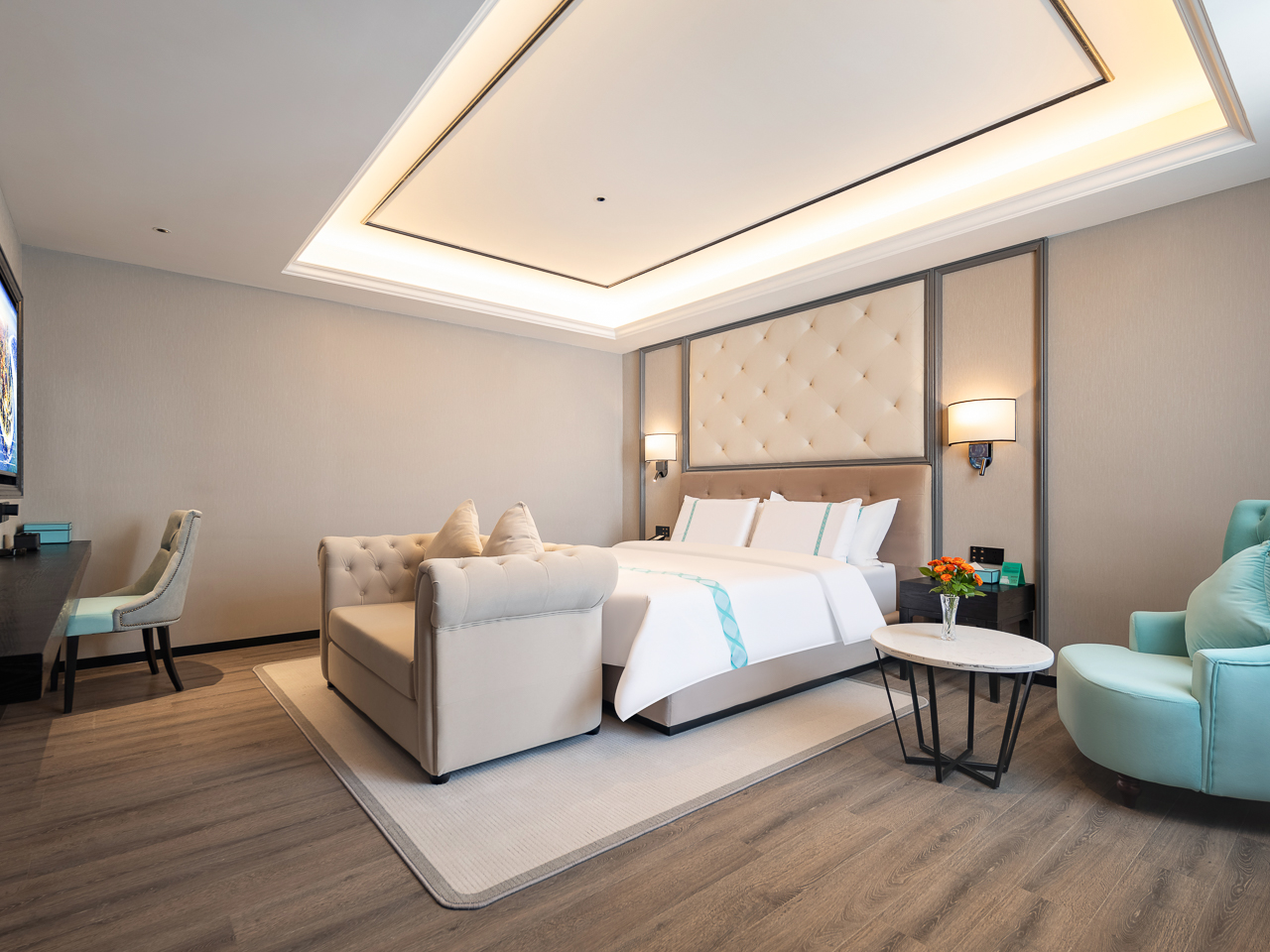 女神浪漫智能大床房(零压床品+智能客控+电视投屏)